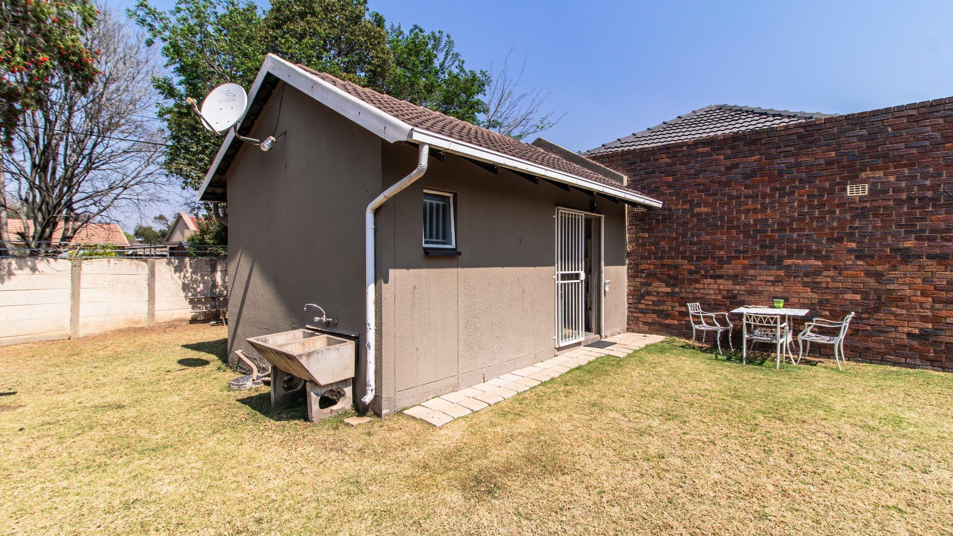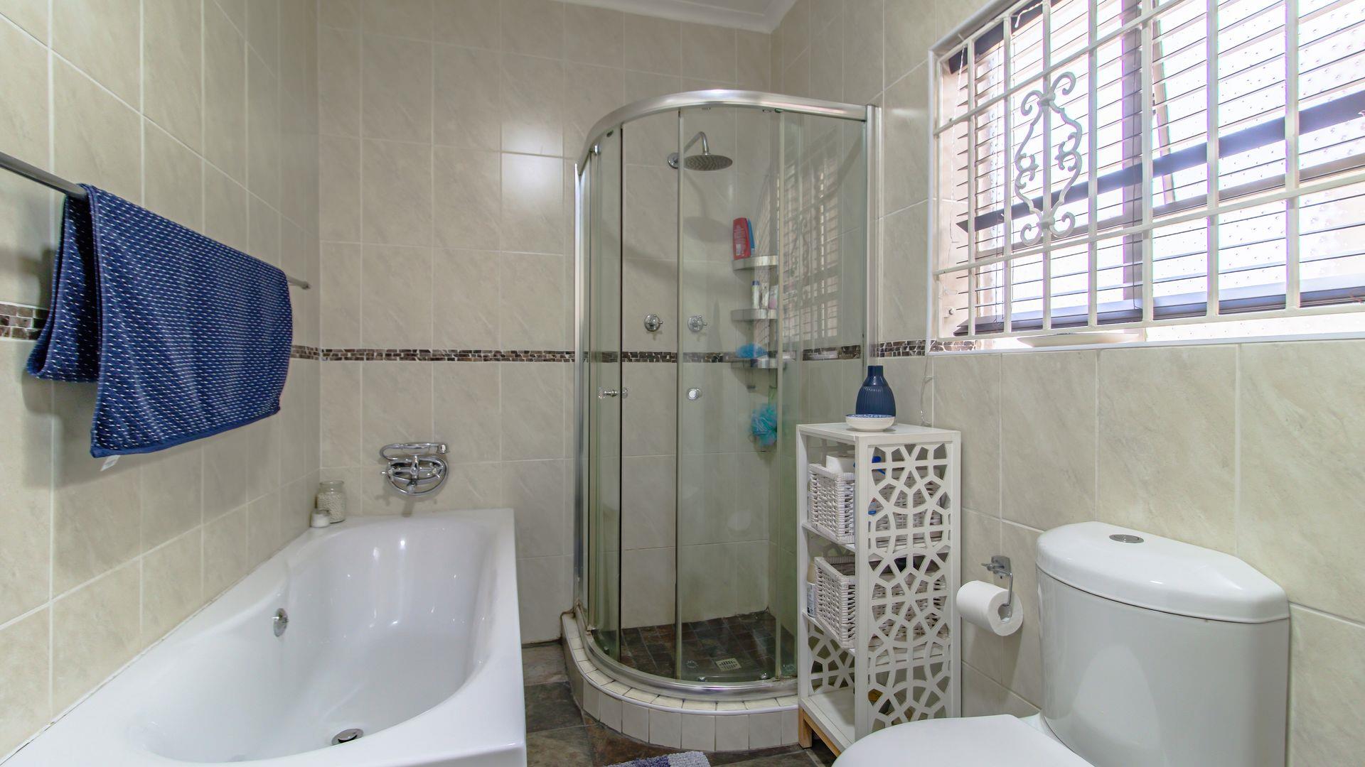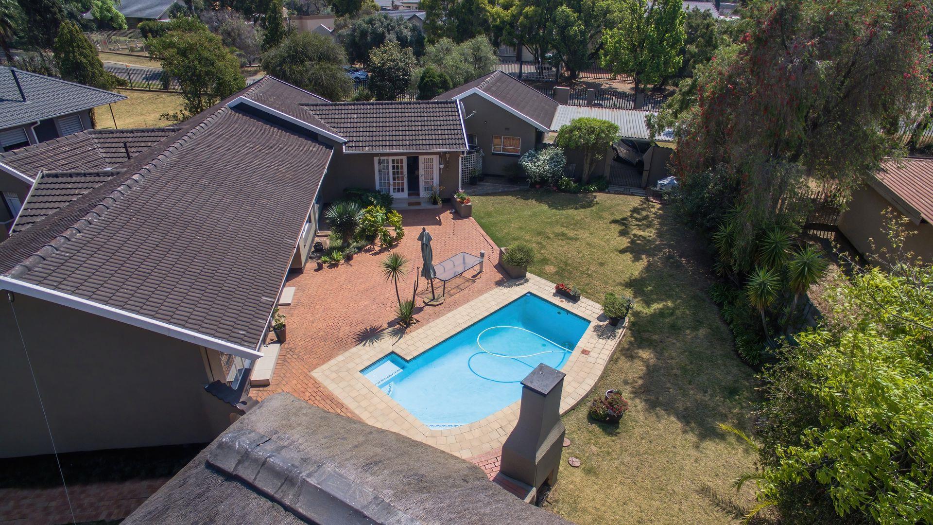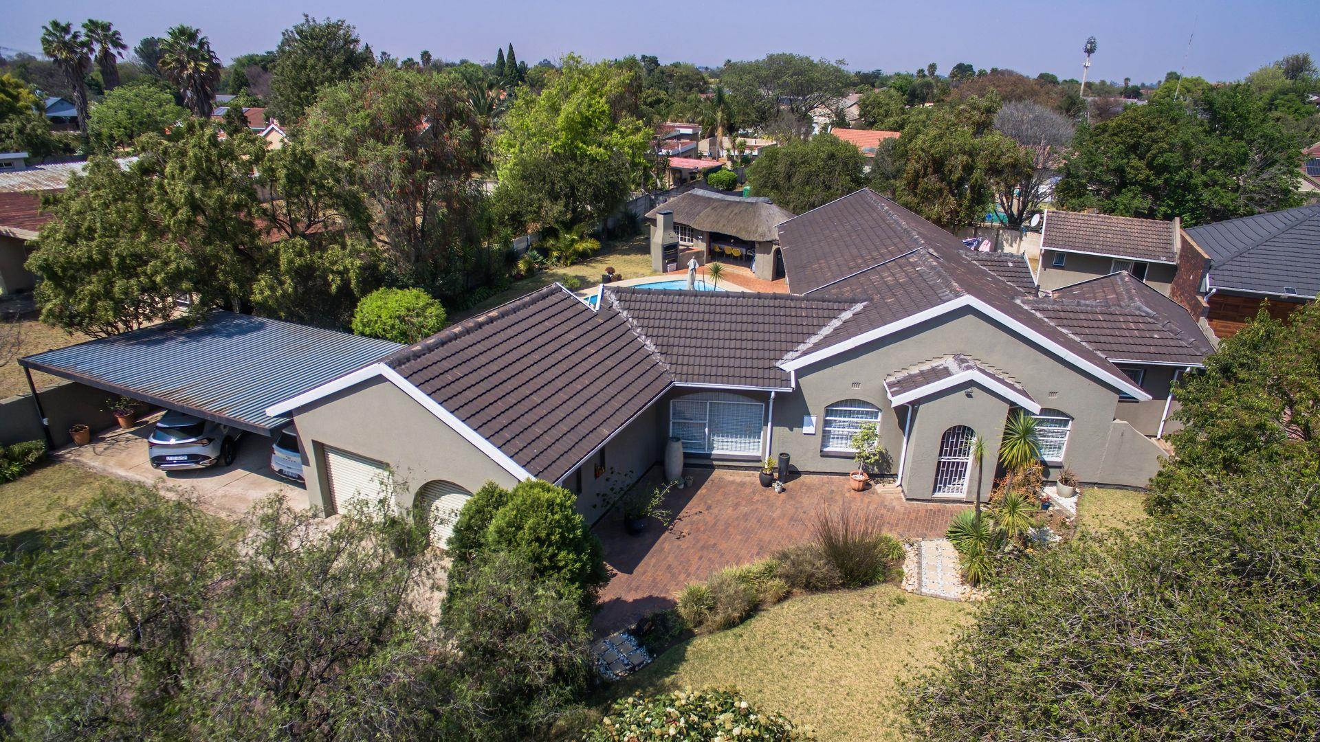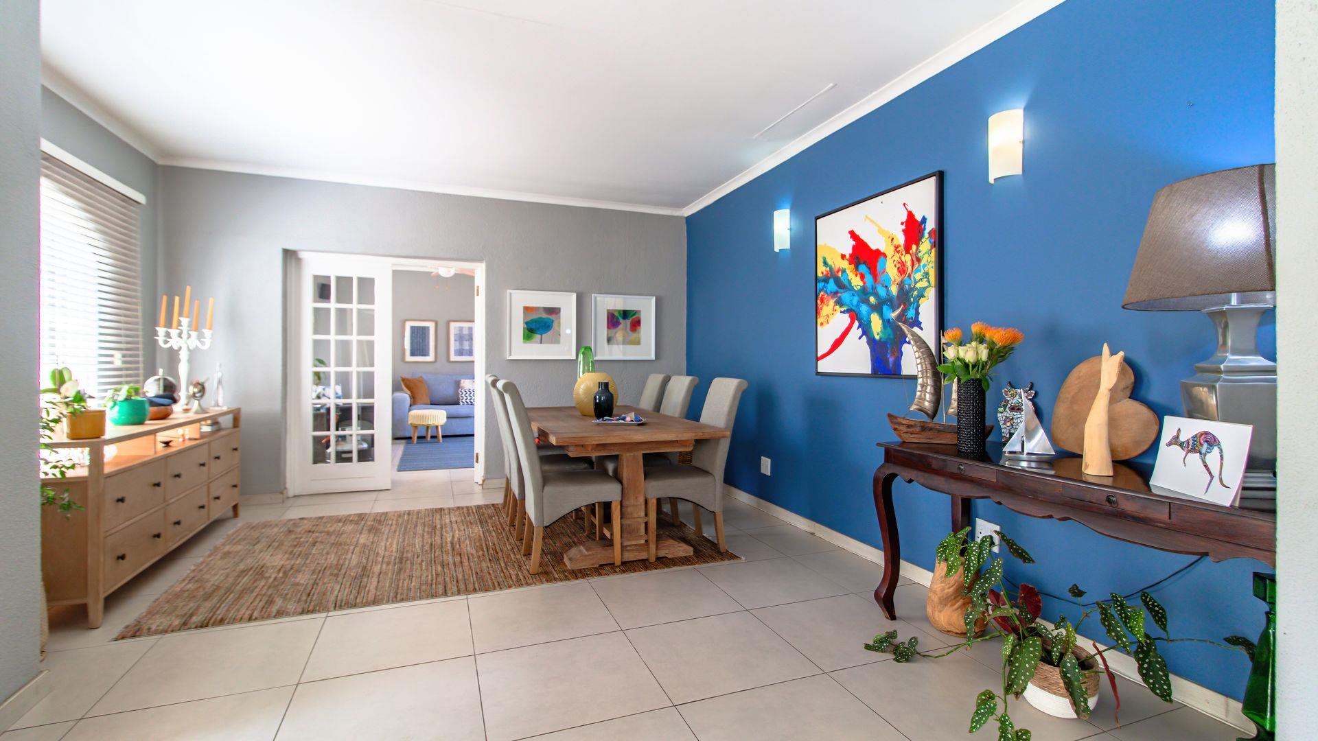 Step outside to explore the beautifully landscaped garden, an ideal setting for family gatherings and outdoor fun. The sparkling pool and thatched area with a built-in braai promise endless enjoyment during warm summer days. Completing this exceptional offering is a double garage and covered parking for at least three vehicles, ensuring ample space for all your transportation needs.