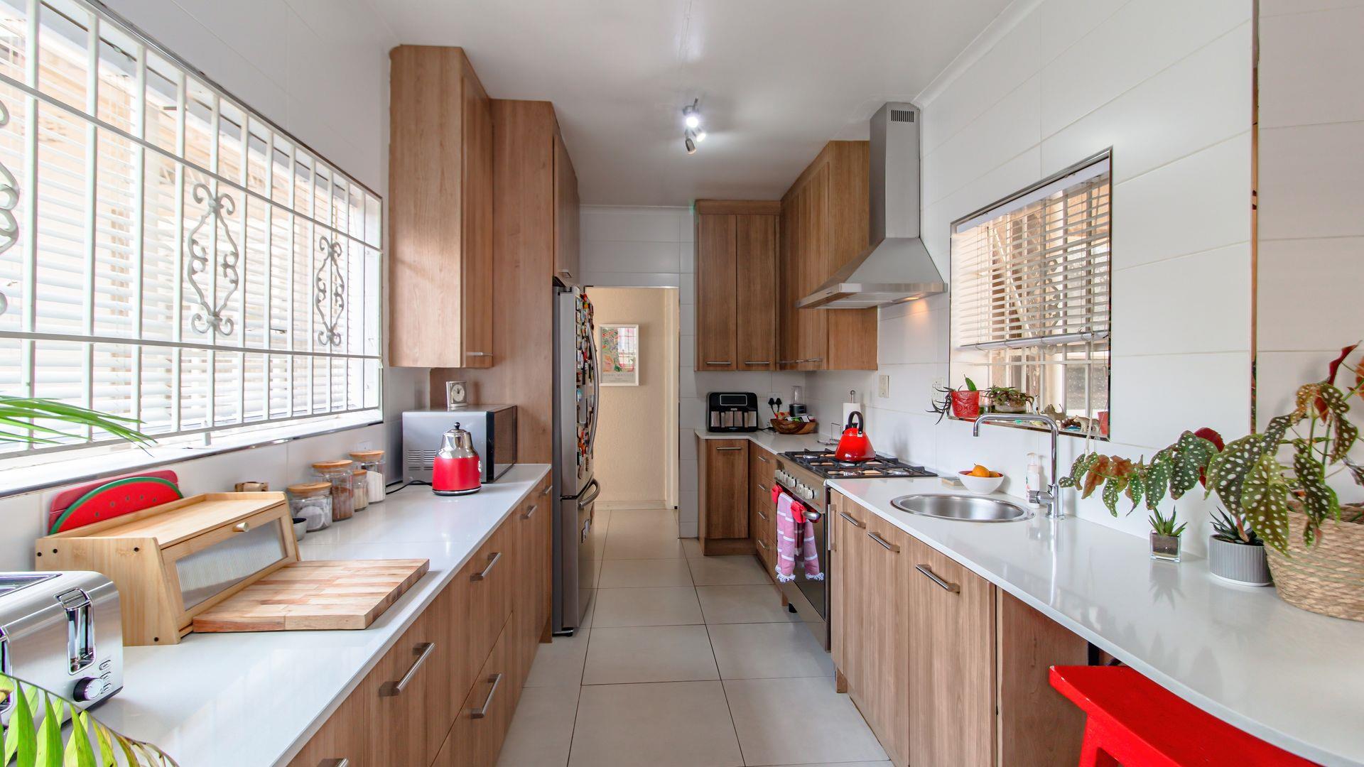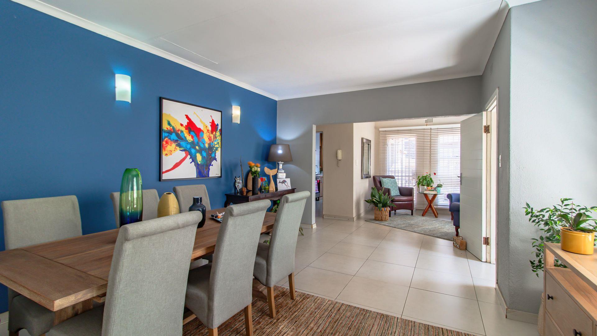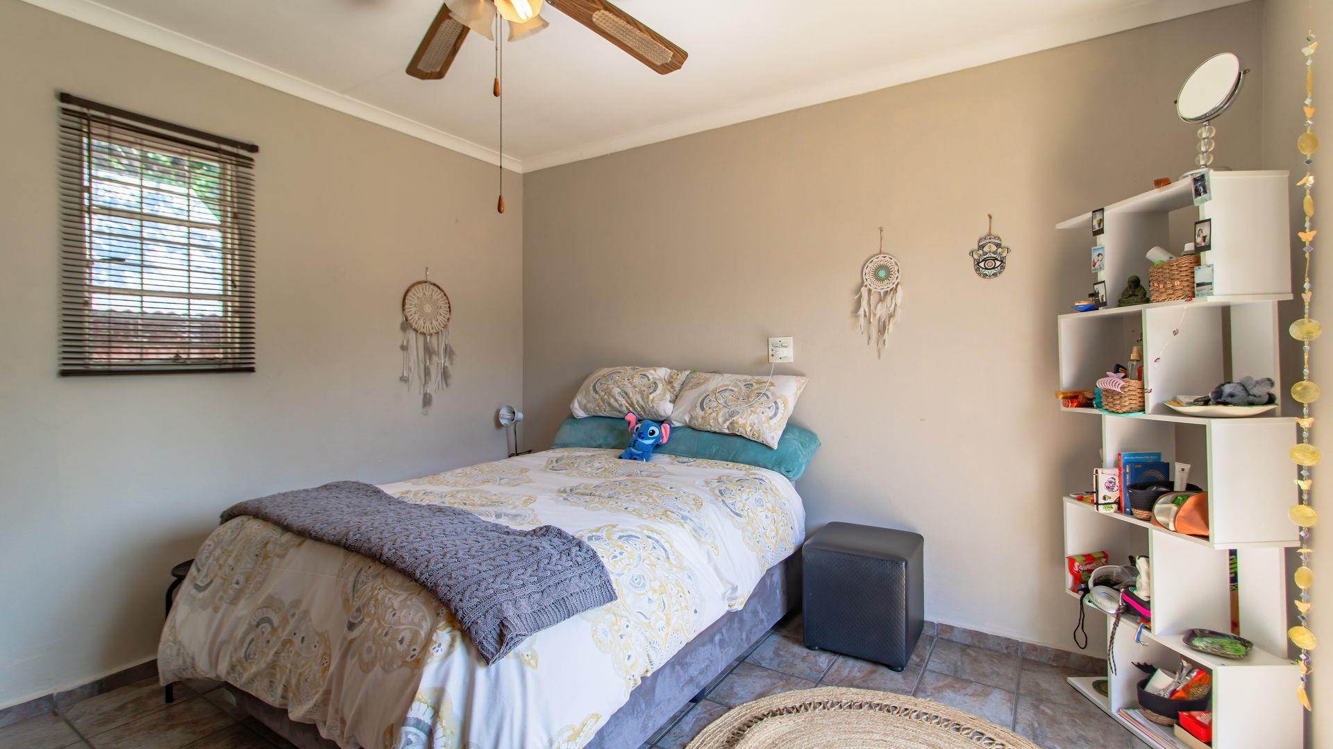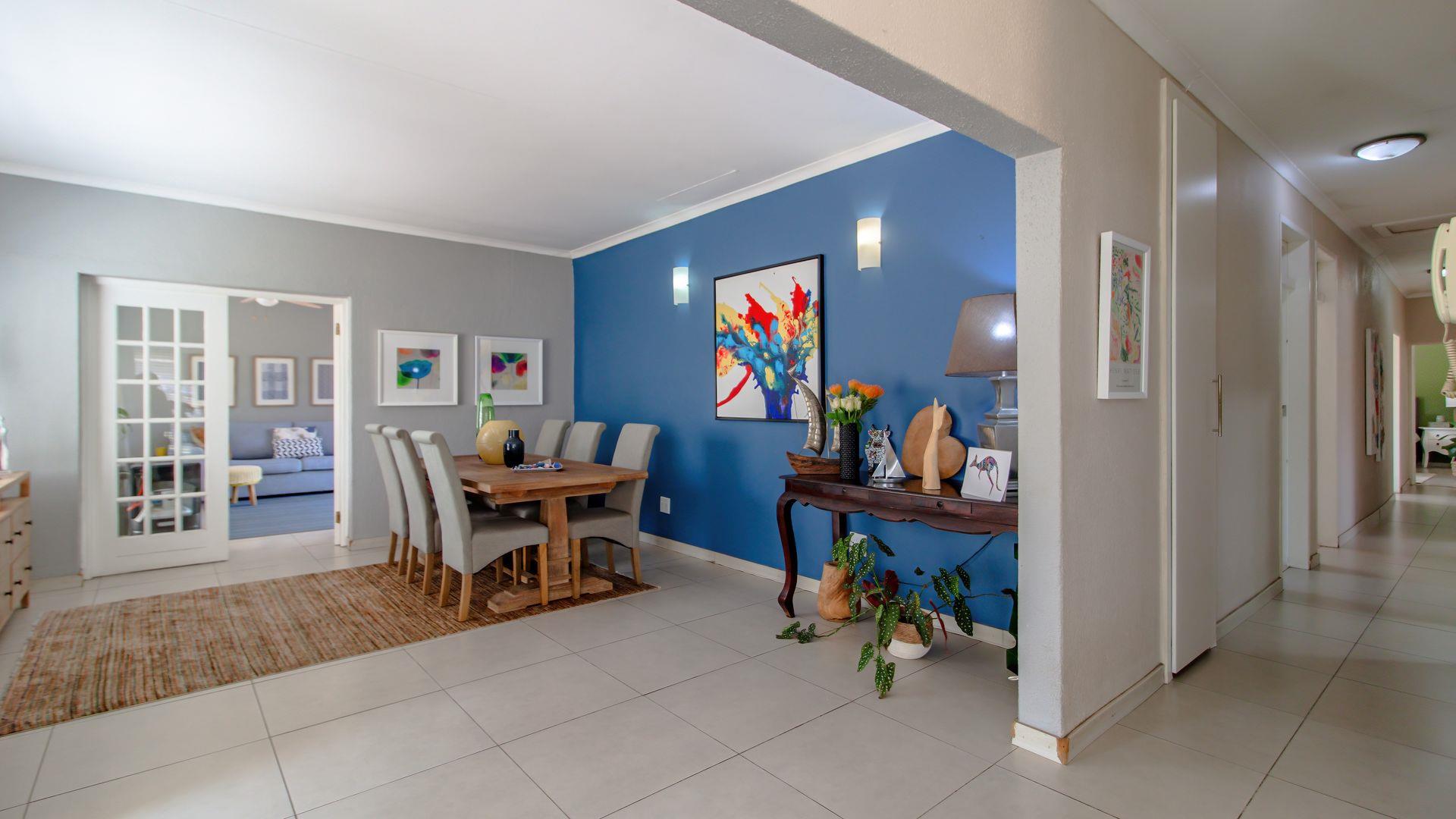 Step outside to explore the beautifully landscaped garden, an ideal setting for family gatherings and outdoor fun. The sparkling pool and thatched area with a built-in braai promise endless enjoyment during warm summer days. Completing this exceptional offering is a double garage and covered parking for at least three vehicles, ensuring ample space for all your transportation needs.