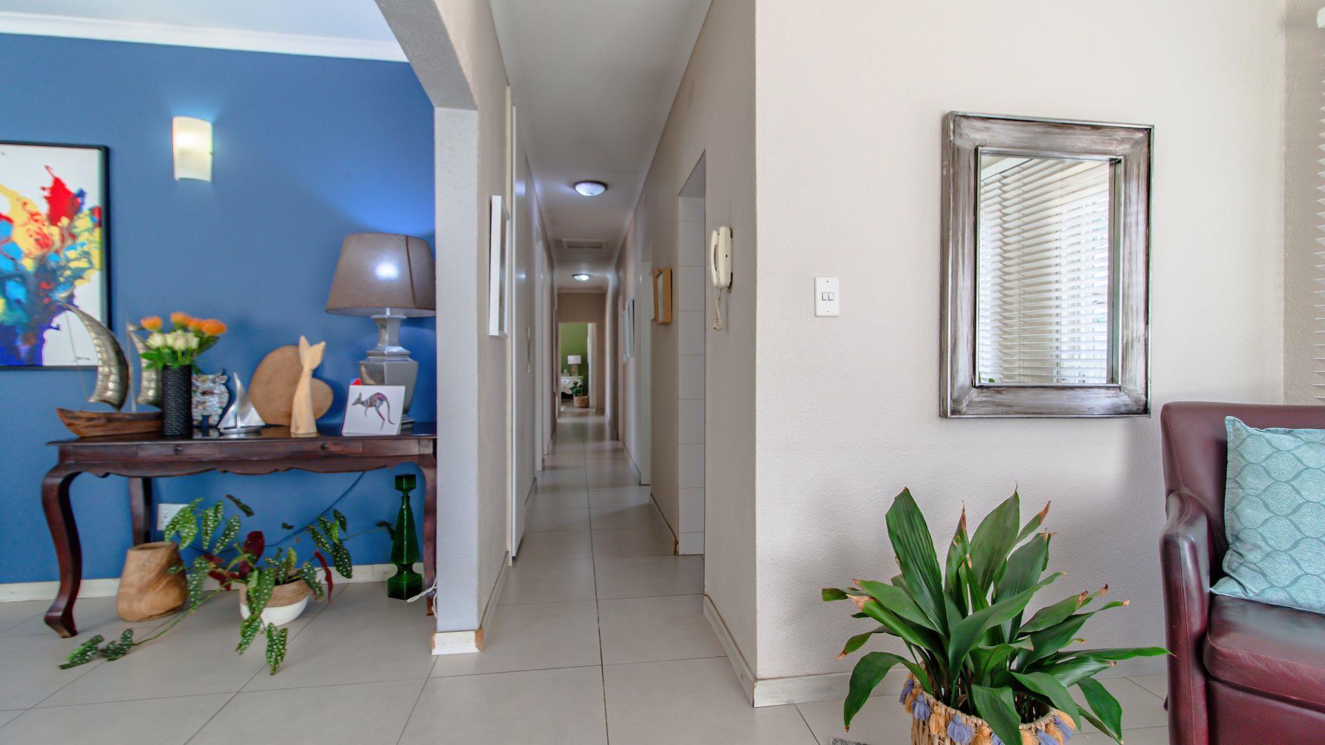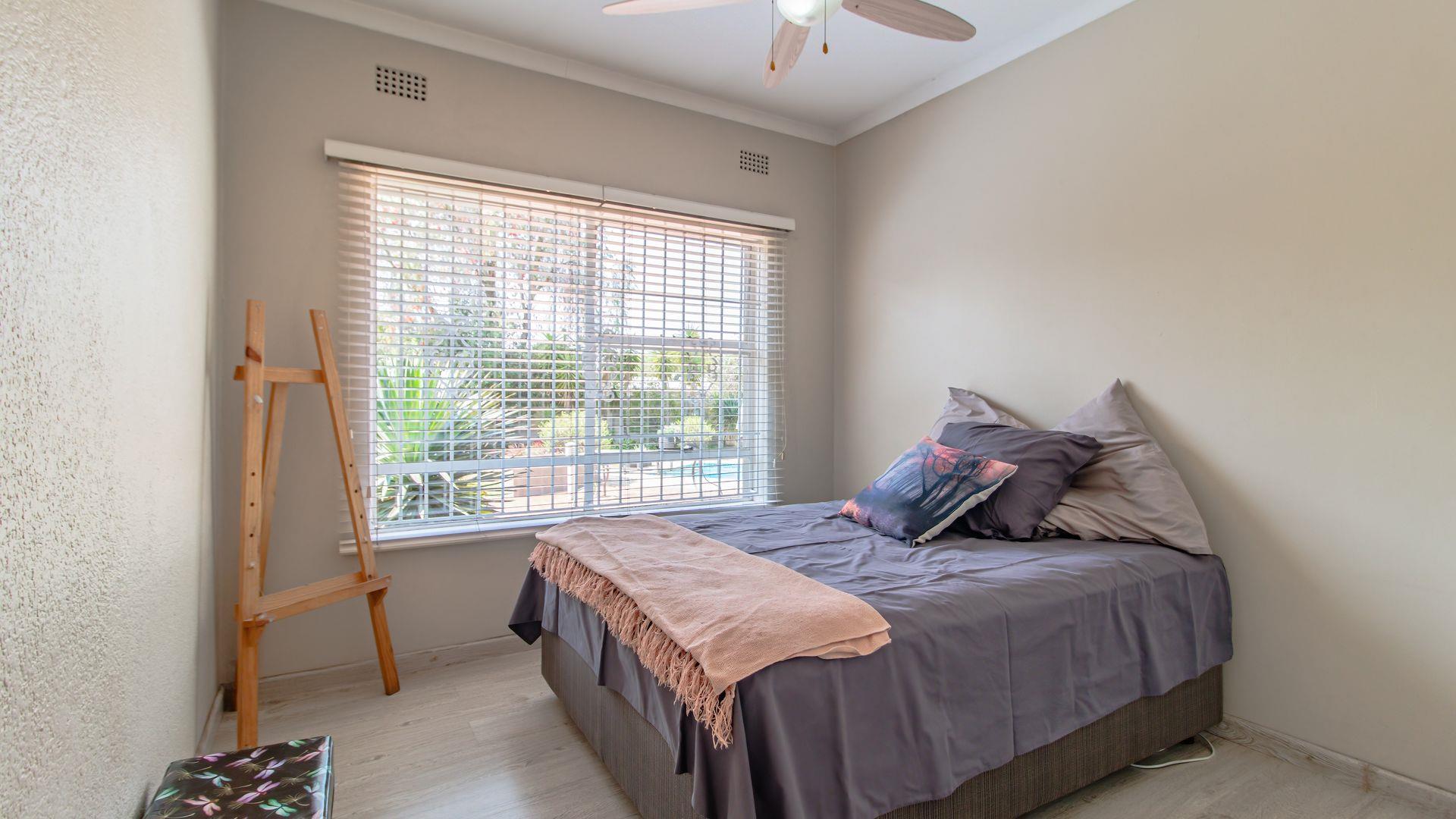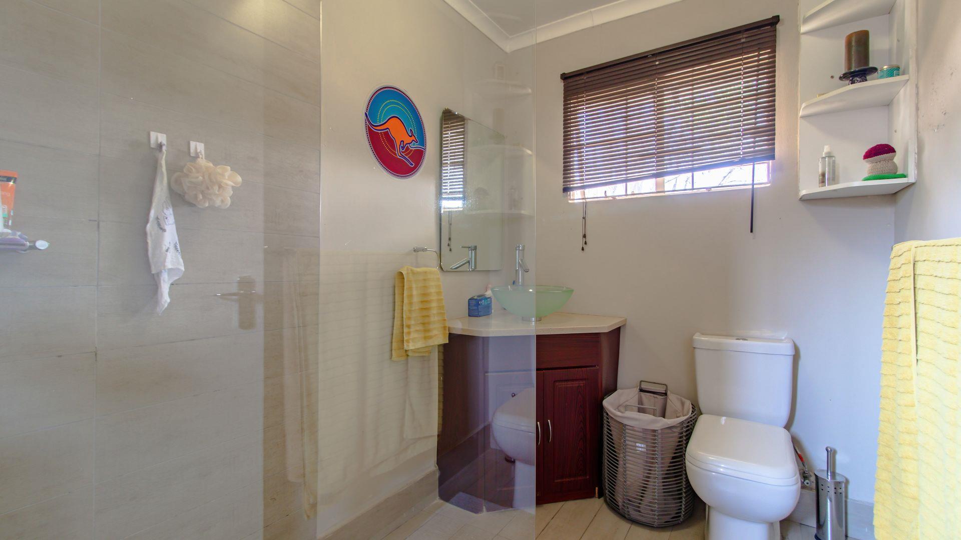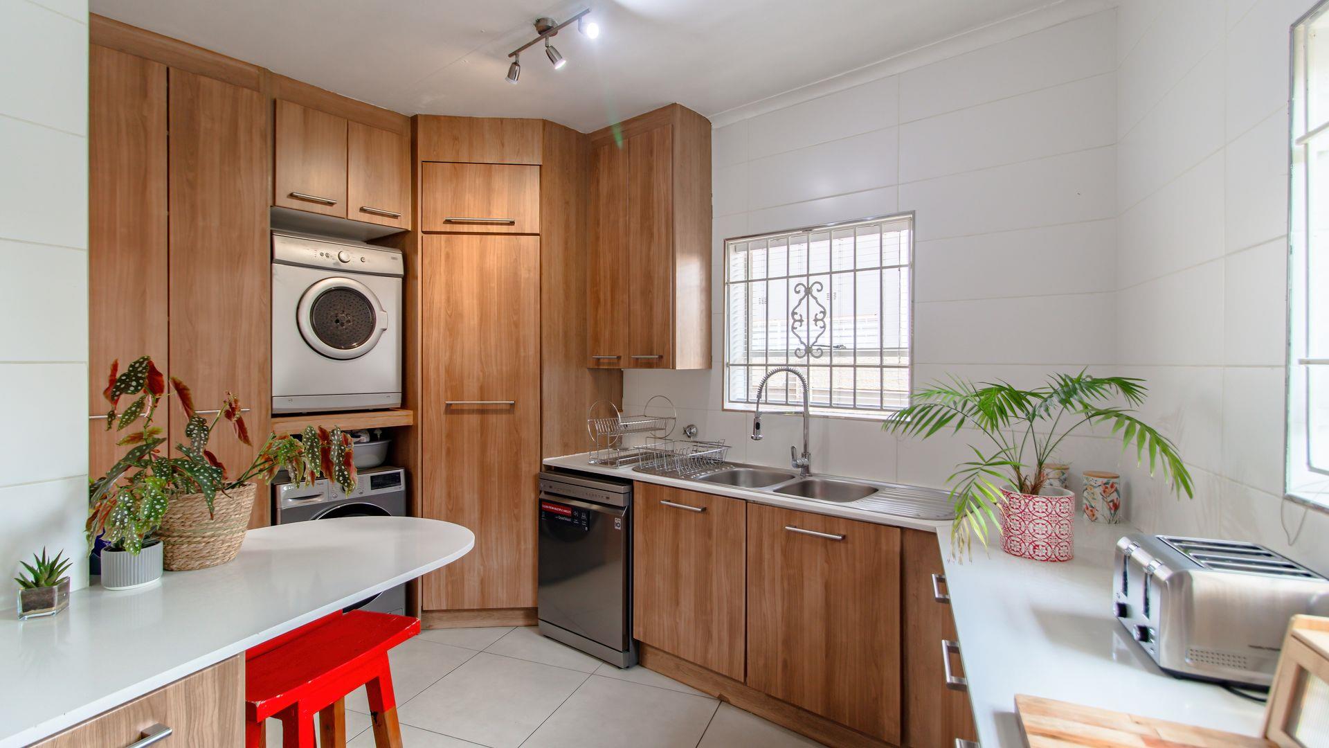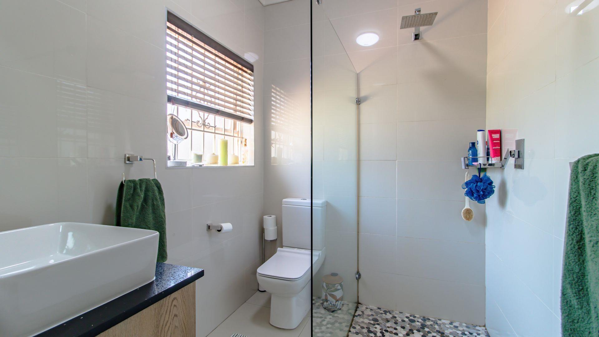 Step outside to explore the beautifully landscaped garden, an ideal setting for family gatherings and outdoor fun. The sparkling pool and thatched area with a built-in braai promise endless enjoyment during warm summer days. Completing this exceptional offering is a double garage and covered parking for at least three vehicles, ensuring ample space for all your transportation needs.