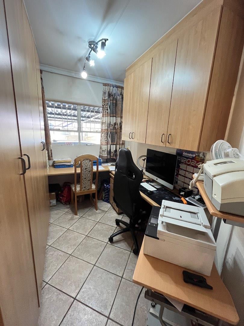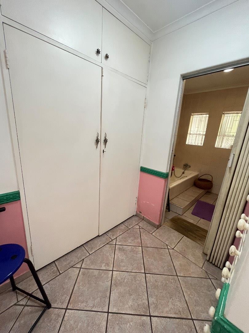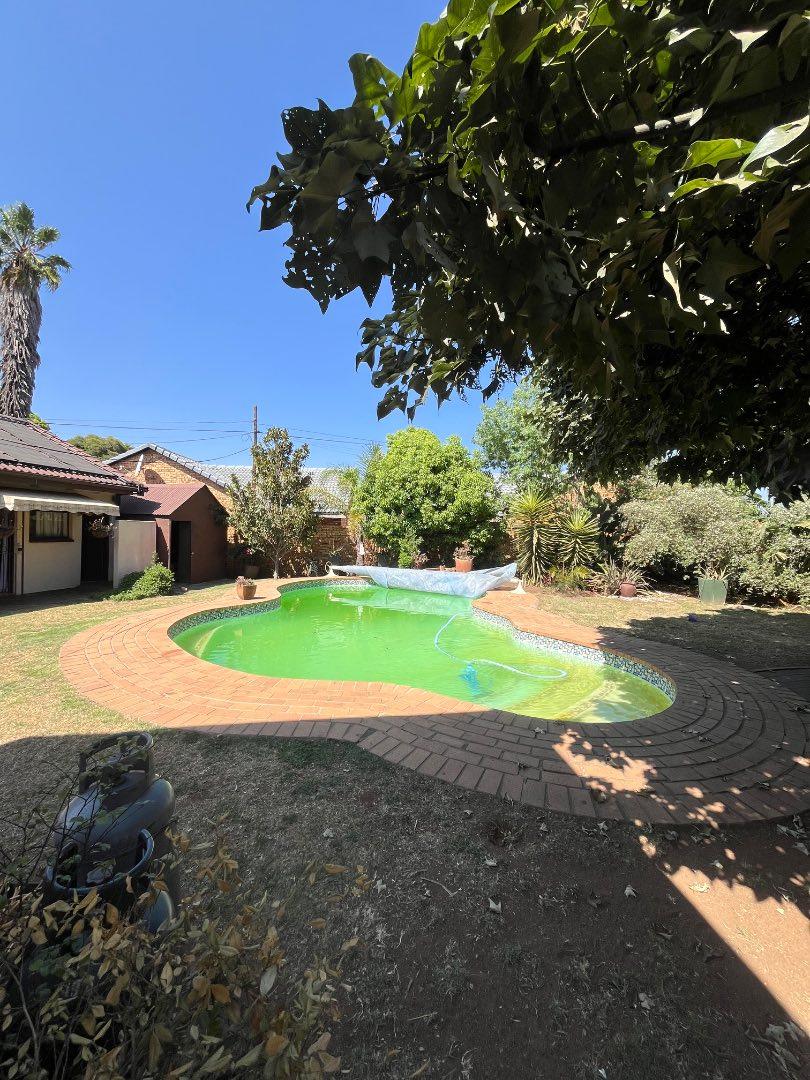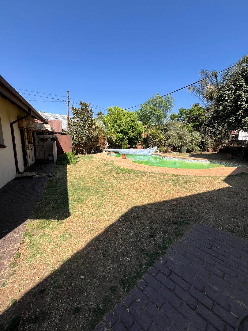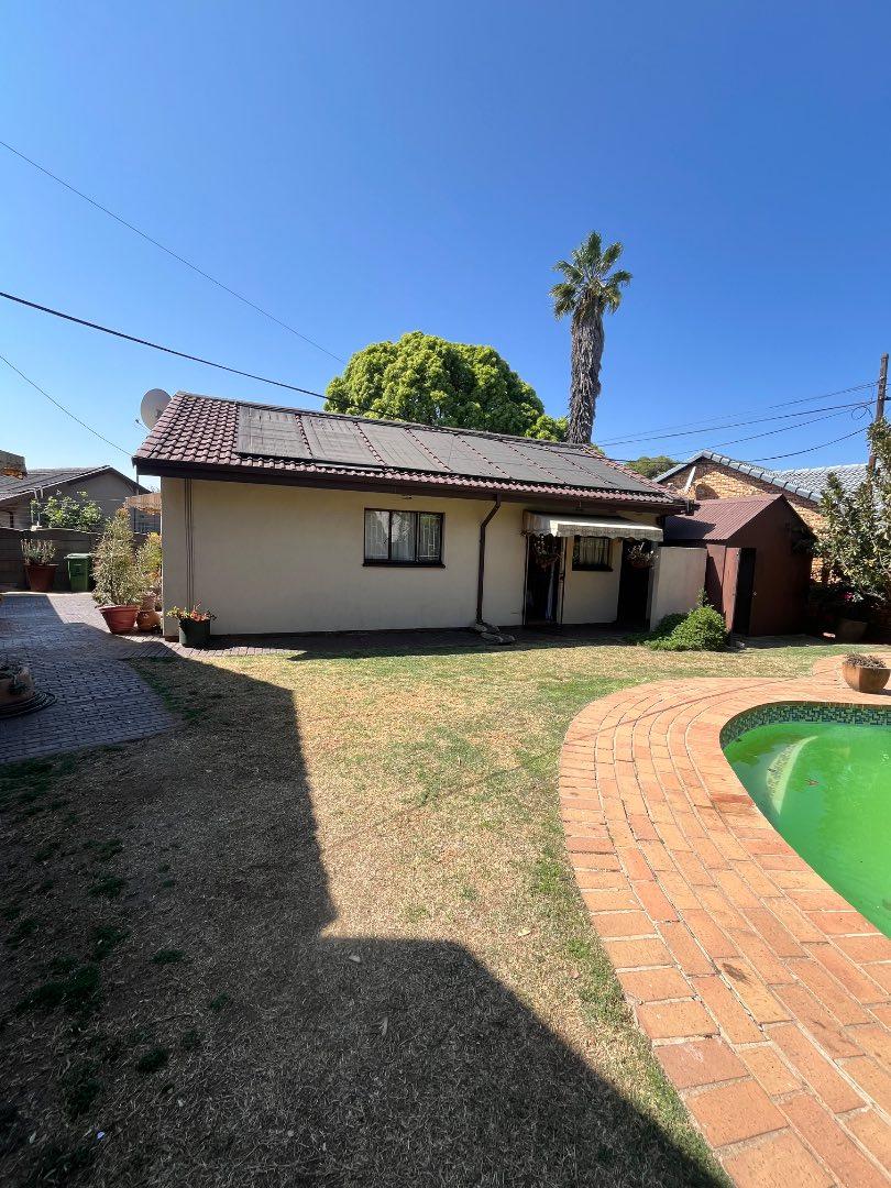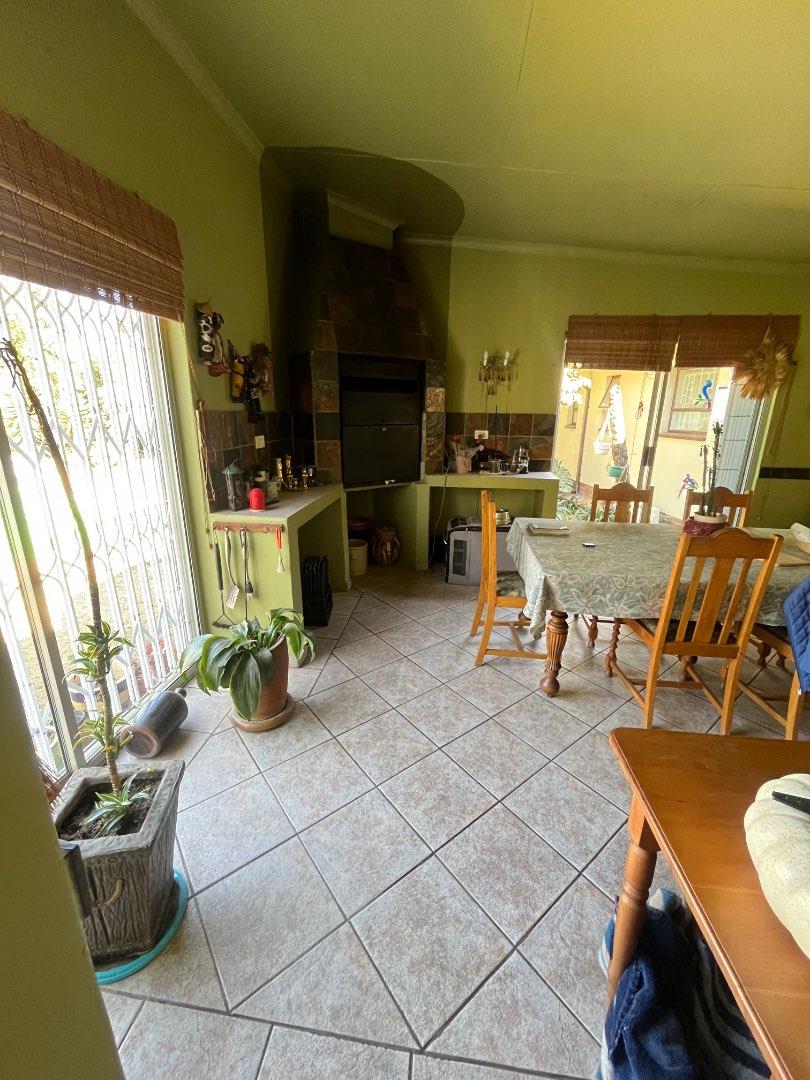 This home features a covered patio with a built-in braai, ideal for entertaining family and friends year-round. The outdoor space is complete with a sparkling swimming pool, a gorgeous green lawn, and a stunning garden.