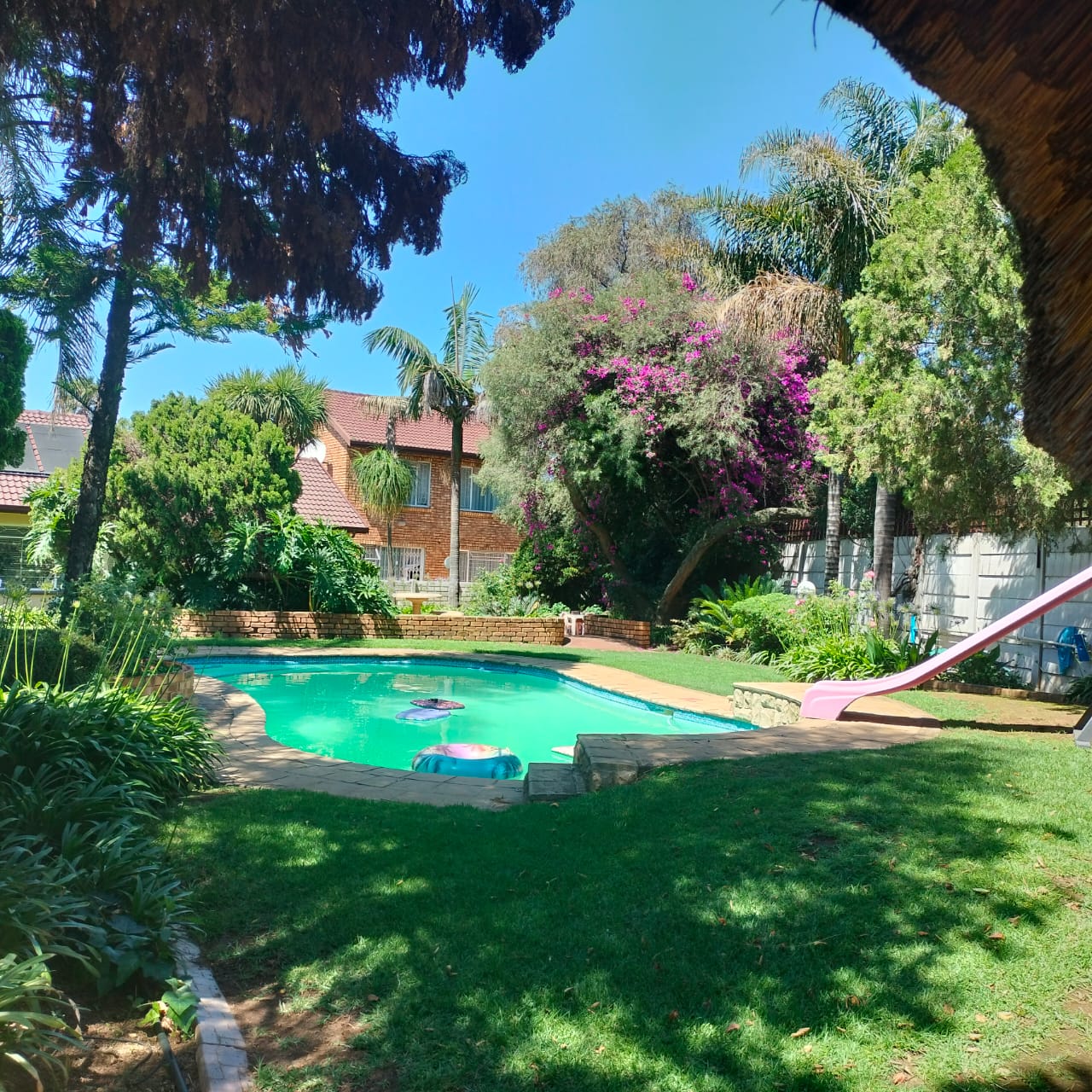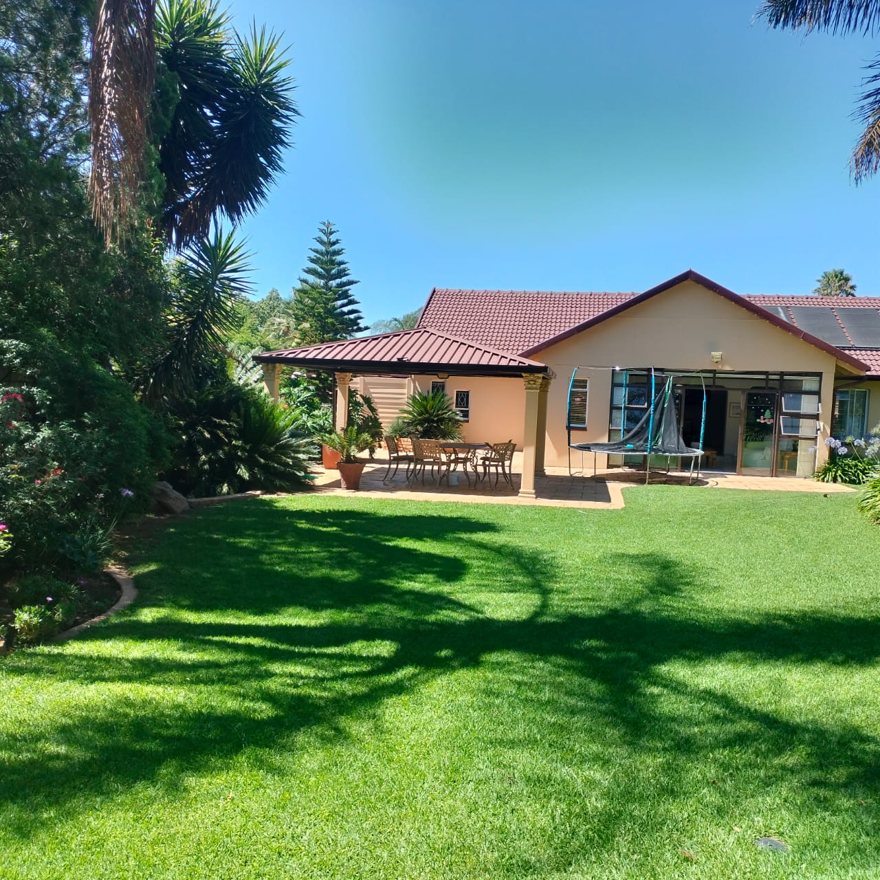 Both the home and flatlet enjoy tranquil views of the pristine garden and sparkling pool, creating the perfect setting for relaxed outdoor living