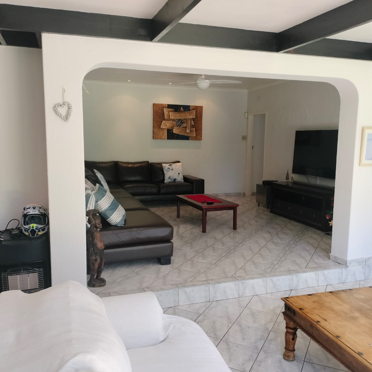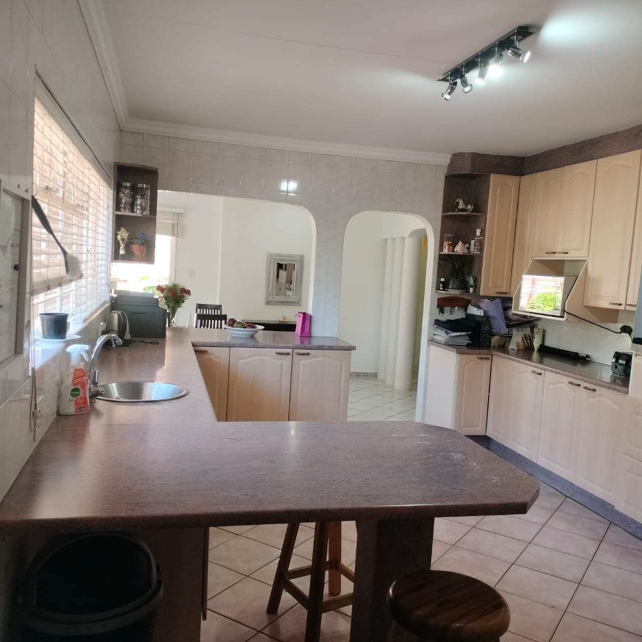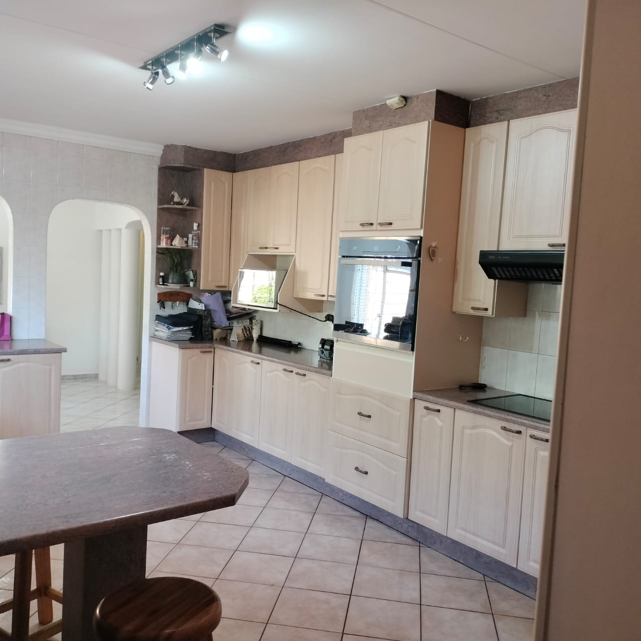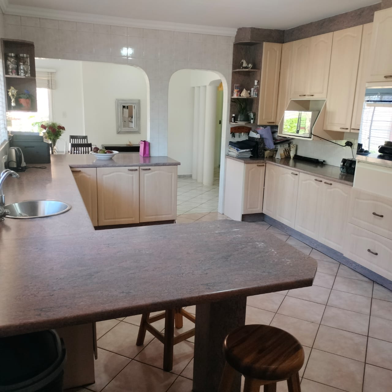 The main house welcomes you with two generous lounges, a warm dining area, and a massive open-plan kitchen perfect for the inspired cook—complete with a breakfast nook, scullery, melamine countertops, eye-level oven and hob