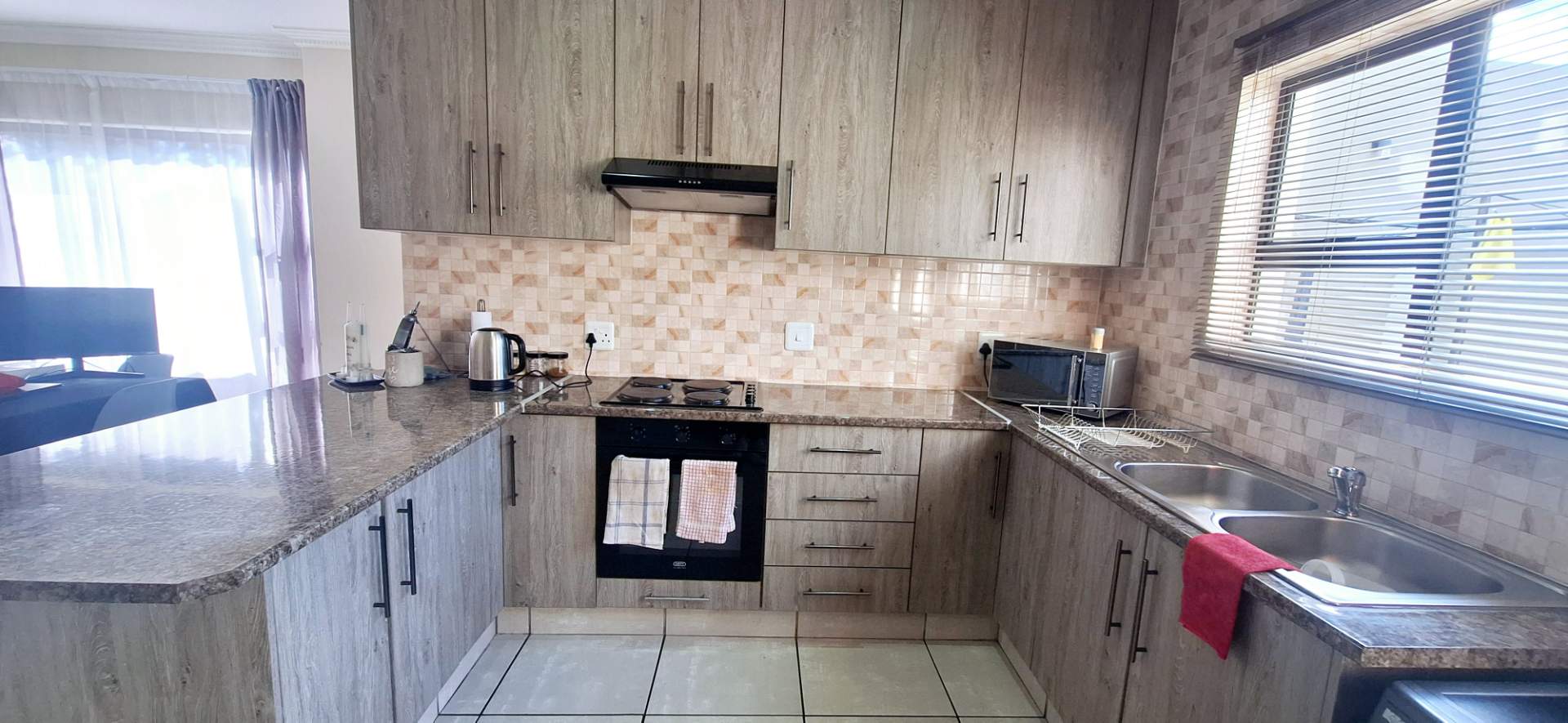 Step inside to a spacious and sunny open-plan lounge and dining area, perfect for entertaining or relaxing with family. The contemporary kitchen boasts ample cupboard space and an electric stove, making meal preparation a joy. Sliding doors from the lounge lead to a delightful garden area, allowing plenty of fresh air and natural light to fill the home.