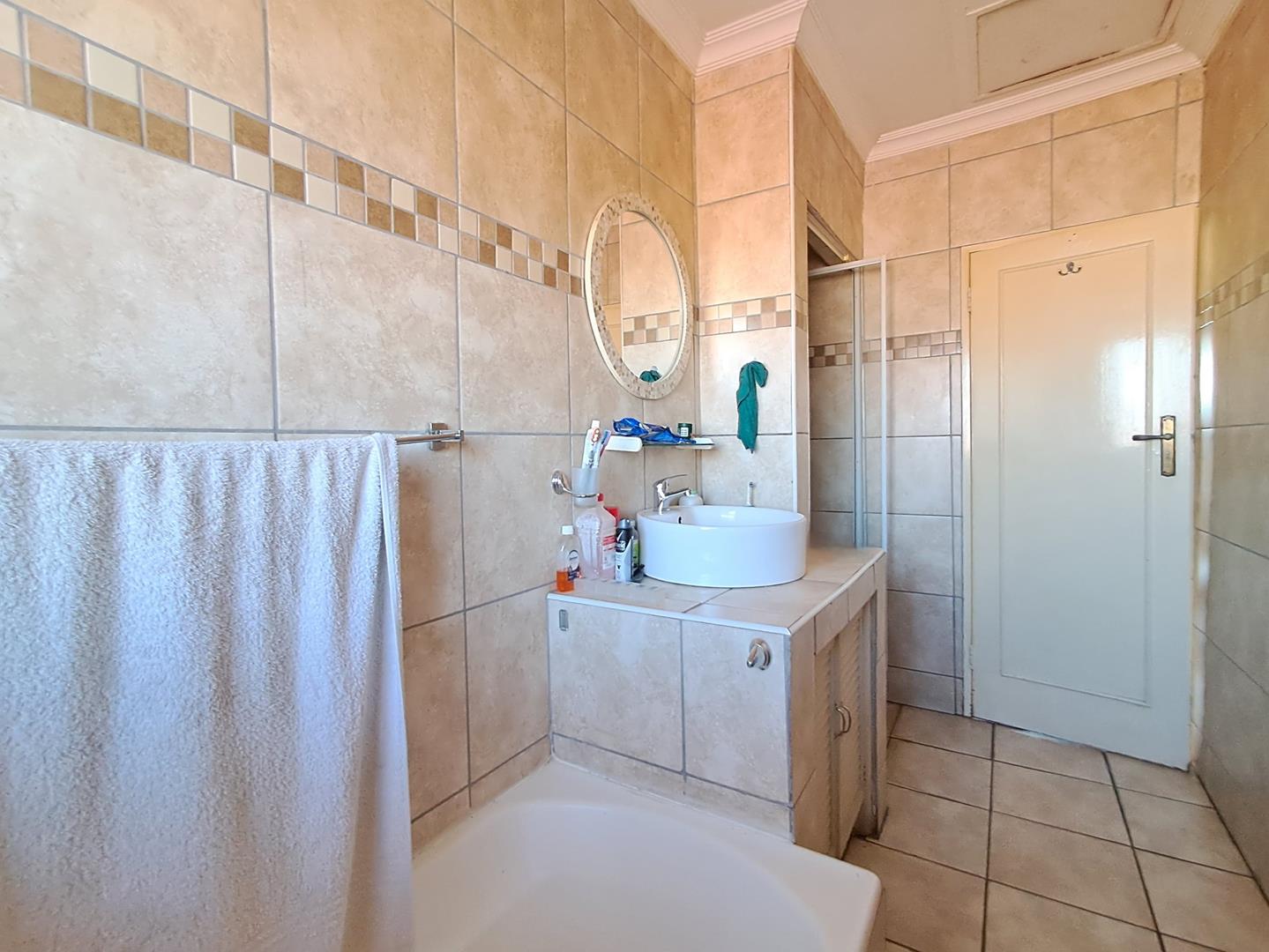 Upstairs, you'll find three beautifully appointed bedrooms, each featuring built-in wardrobes for ample storage. The master bedroom and the second bedroom offer direct access to a shared balcony, perfect for enjoying morning coffee or evening sunsets. Conveniently located in the hallway, additional laundry cupboards provide extra storage space. The floor includes two well-equipped bathrooms: an en-suite in the master bedroom with a bath, shower, basin, and toilet, while the second bathroom includes a bath, basin, and toilet.