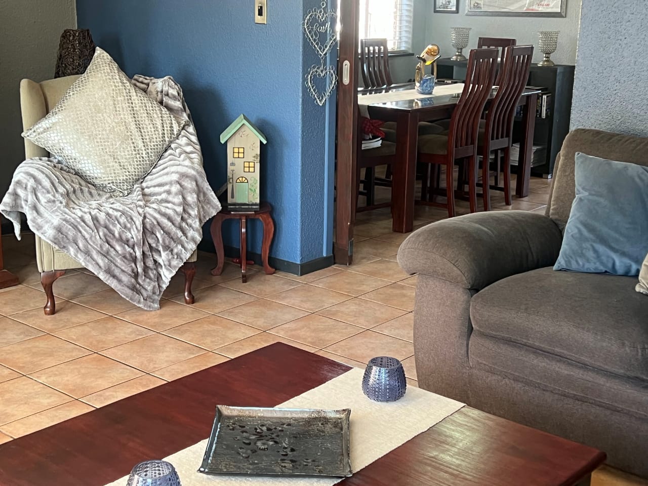 Lovely private outside patio leading up to the front door. The lounge and dining room are an awesome size and has lots of natural light. The kitchen just calls you in to start those family dinners, gas stove and marble tops, and ample white cupboards, with place for your appliances. Downstairs guest loo, 3 well-sized bedrooms and 2 bathrooms (MES). Back enclosed and paved outside area. Double garage.