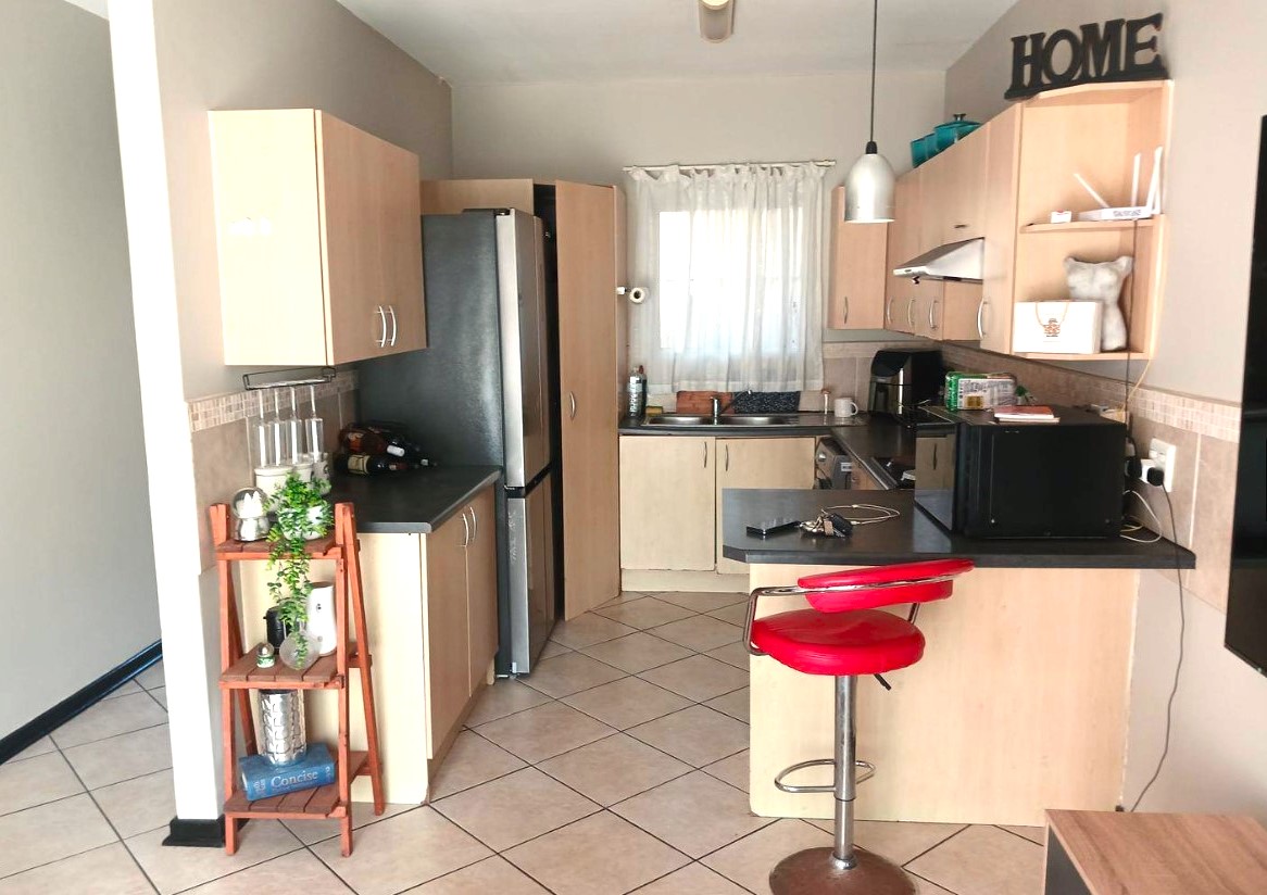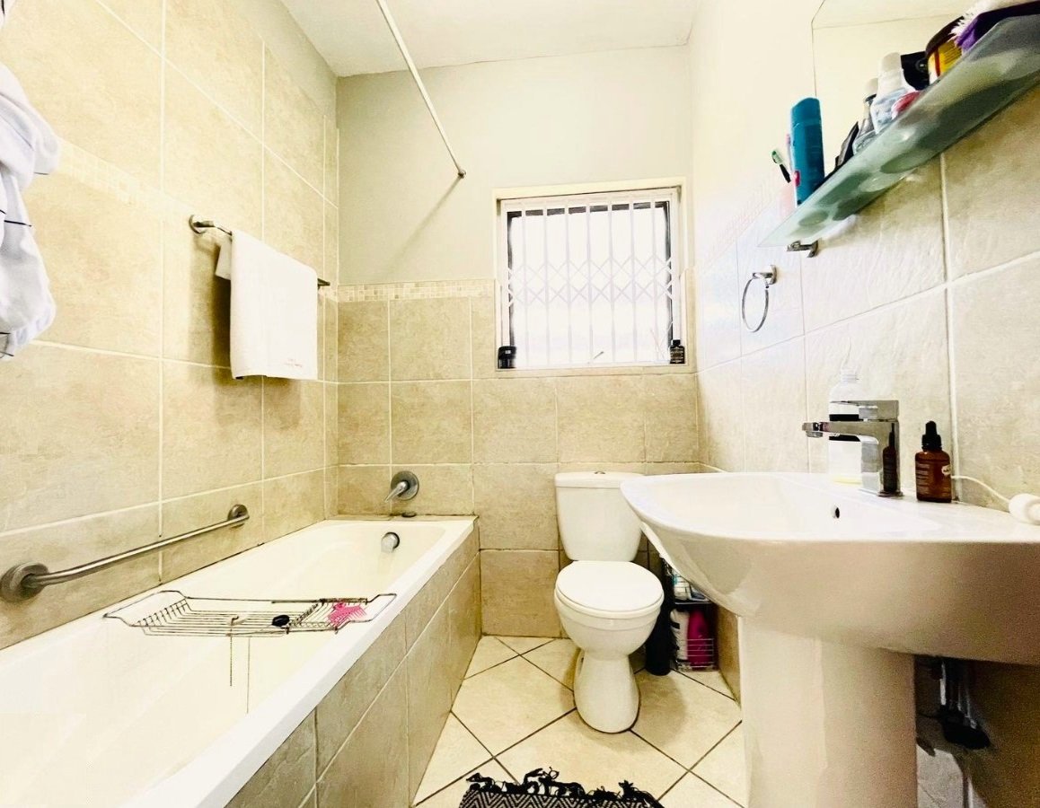 This property has an open plan kitchen and lounge, two bedrooms with build in wardrobes. The apartment consists of two beautiful, tiled bathrooms, main bedroom with ensuite bathroom. Ceiling fans, burglar bars on all opening windows and doors and one parking bay.