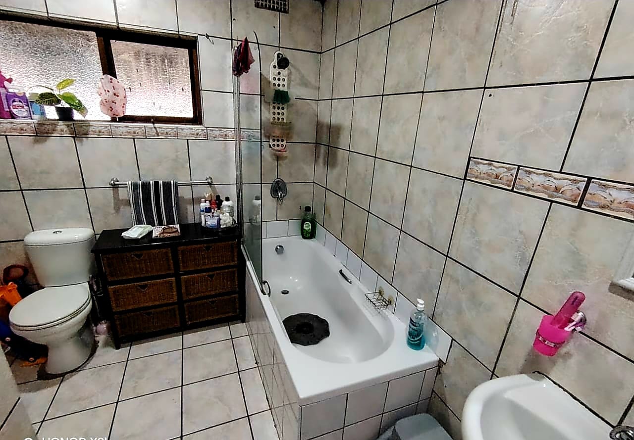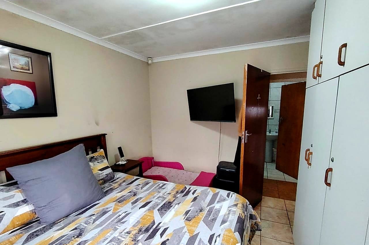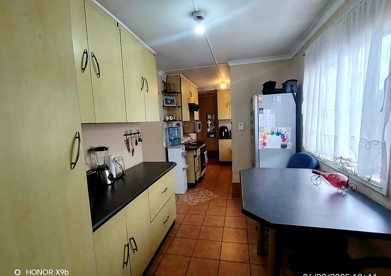 There’s a full bathroom, a double electric garage, and extra secure parking for guests. The property is fully walled and fitted with security gates and burglar bars for your peace of mind.
