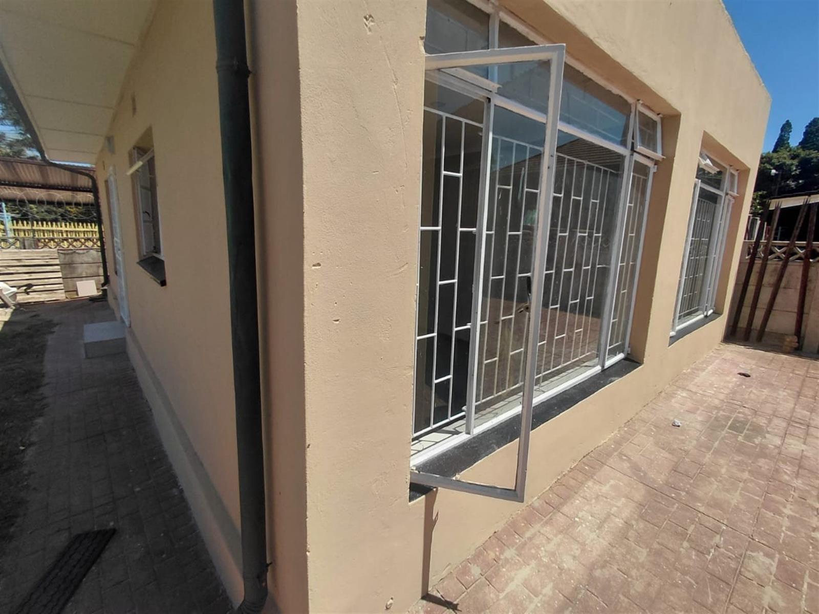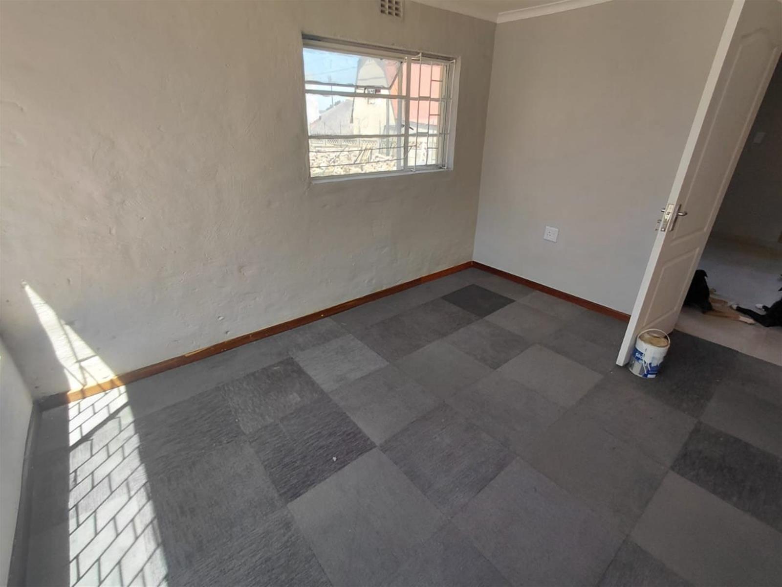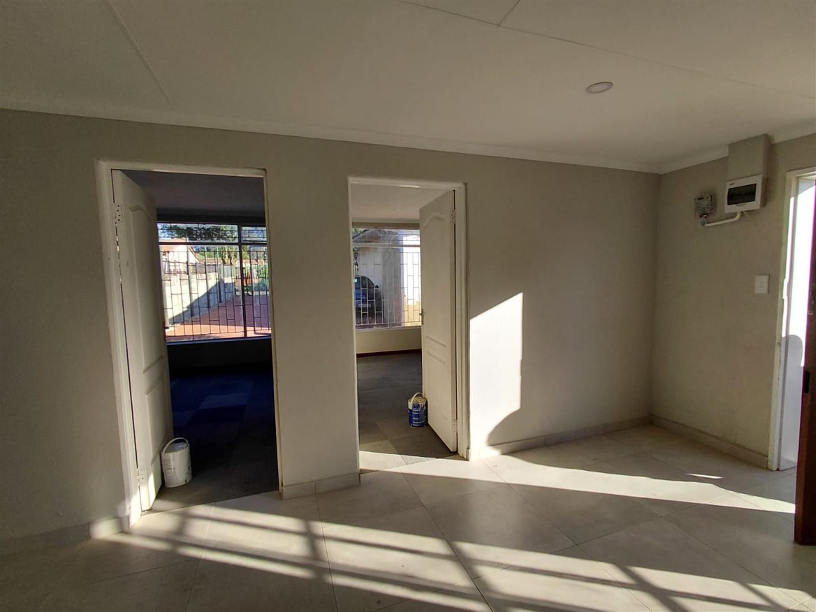 The kitchen features tiled countertops, a stainless-steel sink, ample workspace, and a convenient under-counter area for appliances. A large window allows for plenty of natural light, creating a bright and welcoming cooking space and light in the lounge as its conveniently open plan. A fitted geyser ensures reliable hot water throughout the unit.