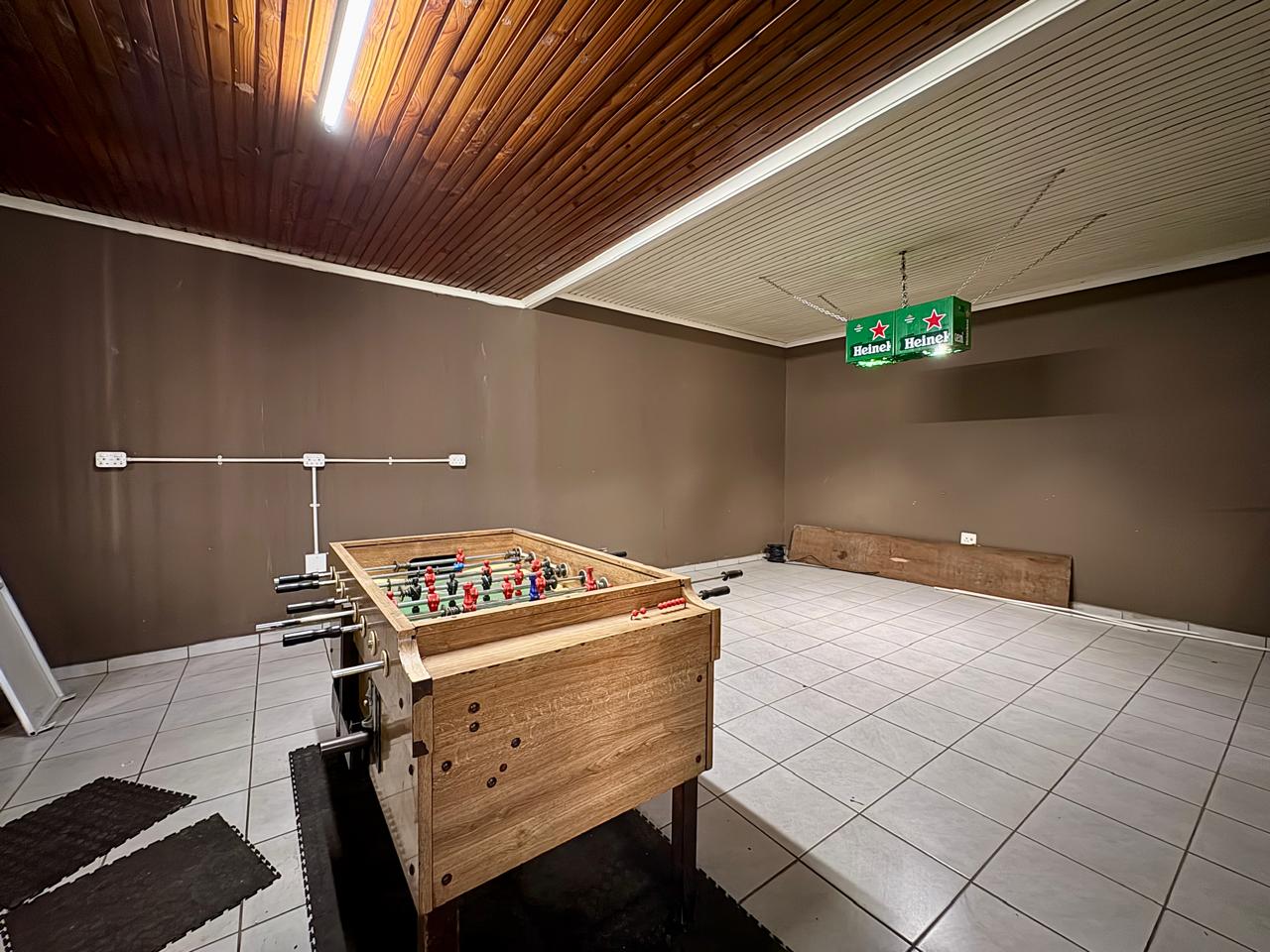 There is a large area in the back which will be great for a gambling area or private lounge and another large open space to add more pool tables.
