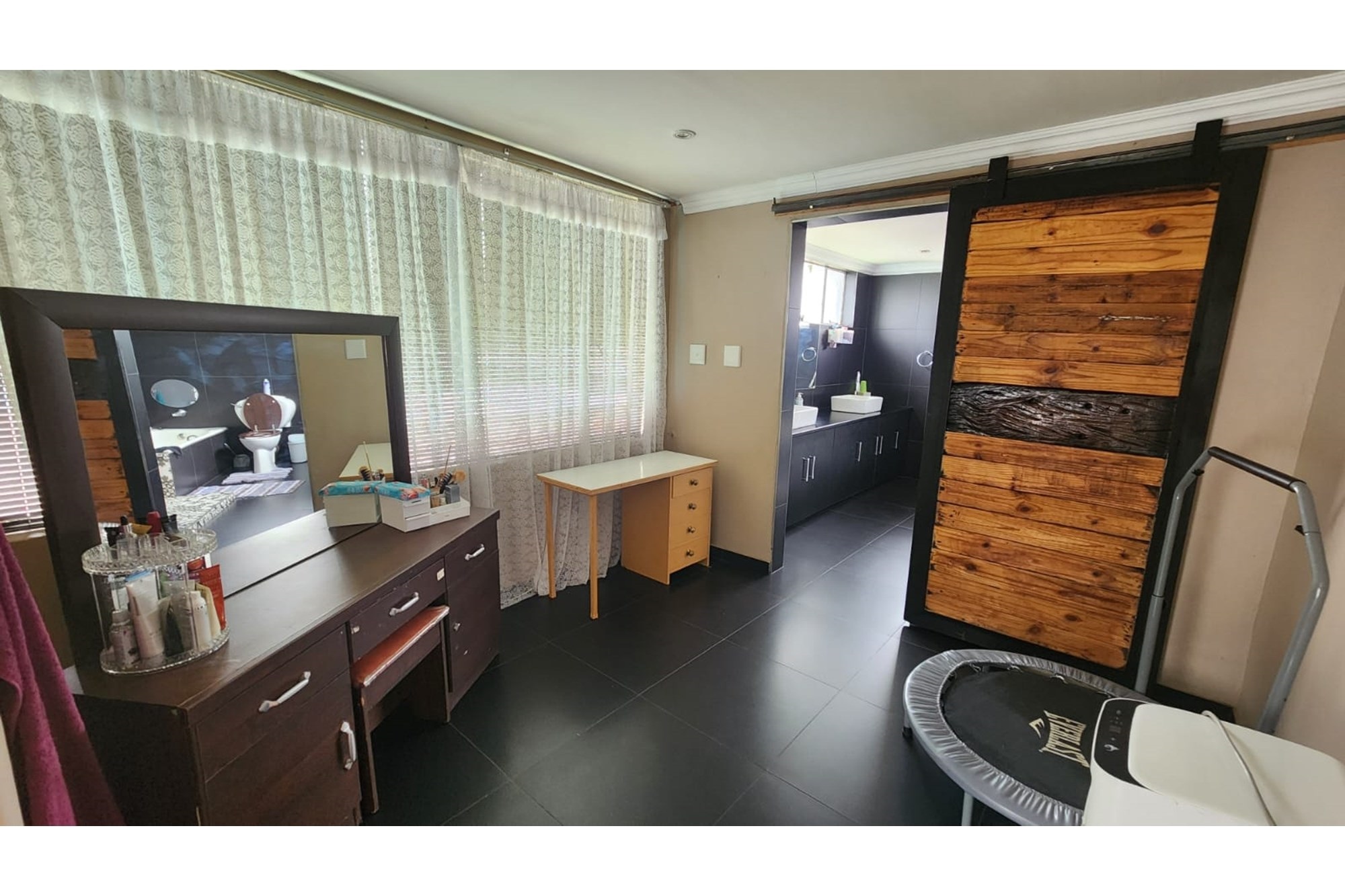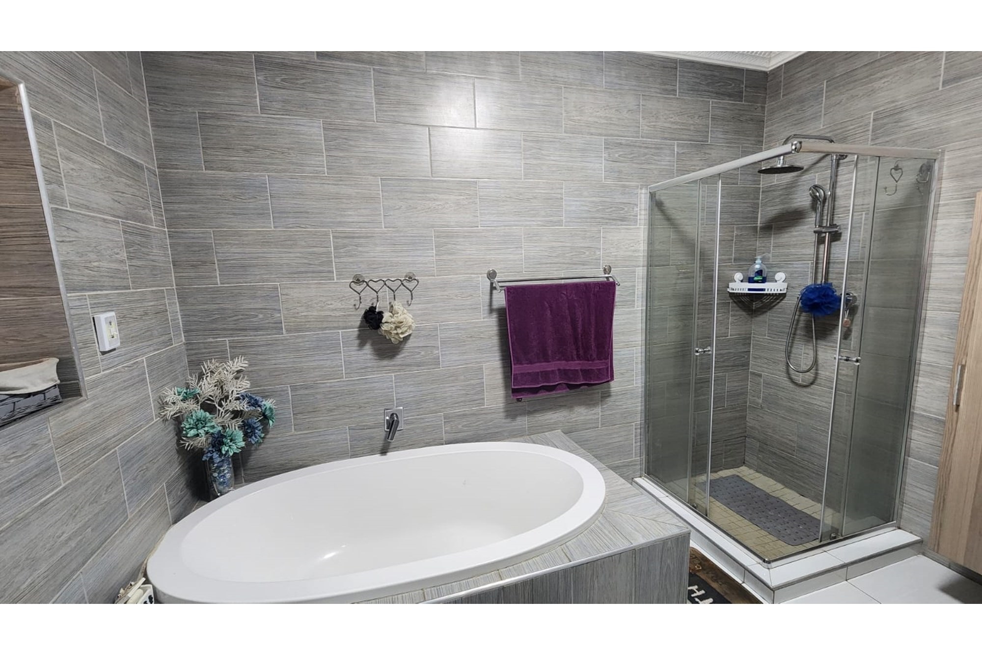 Outdoor living is a true highlight. The expansive entertainment area features a sparkling swimming pool, built-in braai, and a Jacuzzi, all set within a generously sized, well-maintained yard—ideal for hosting family and friends year-round.