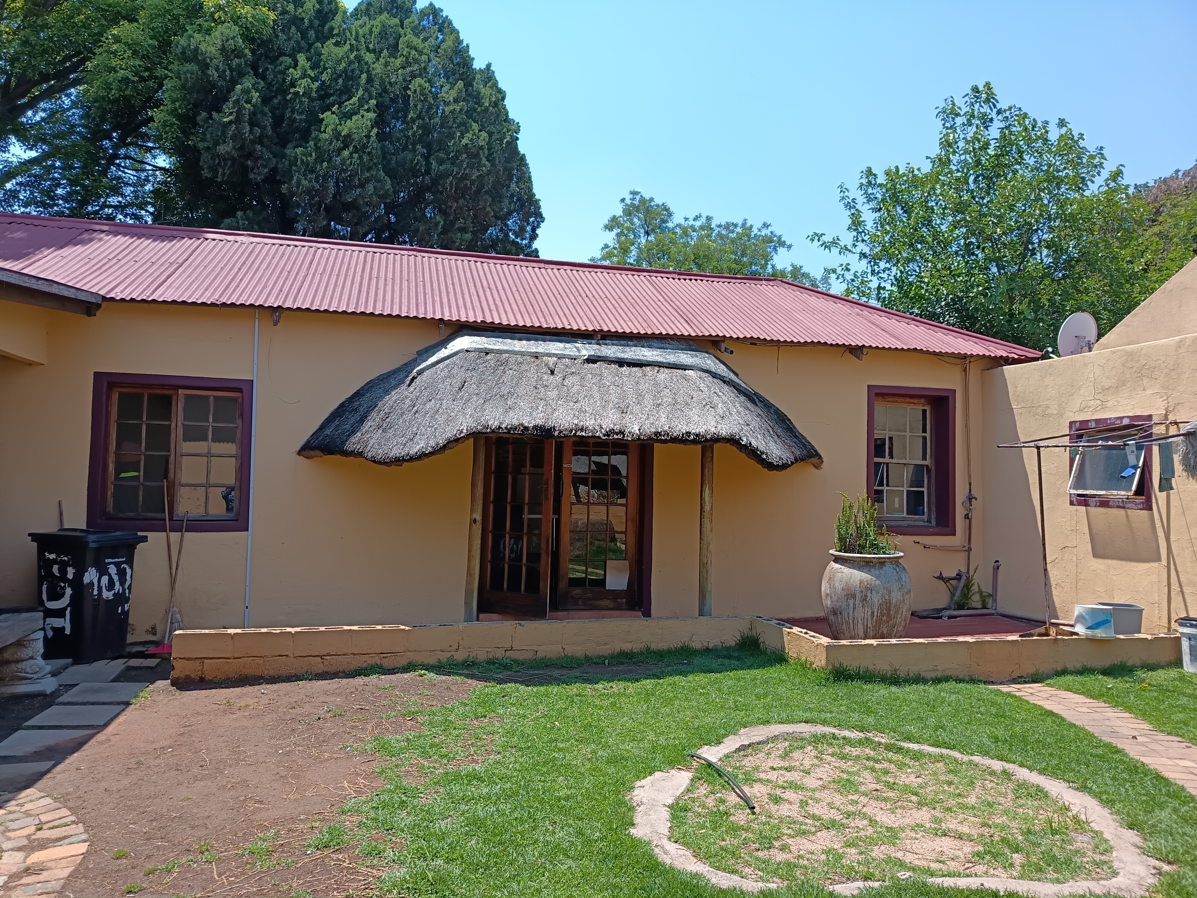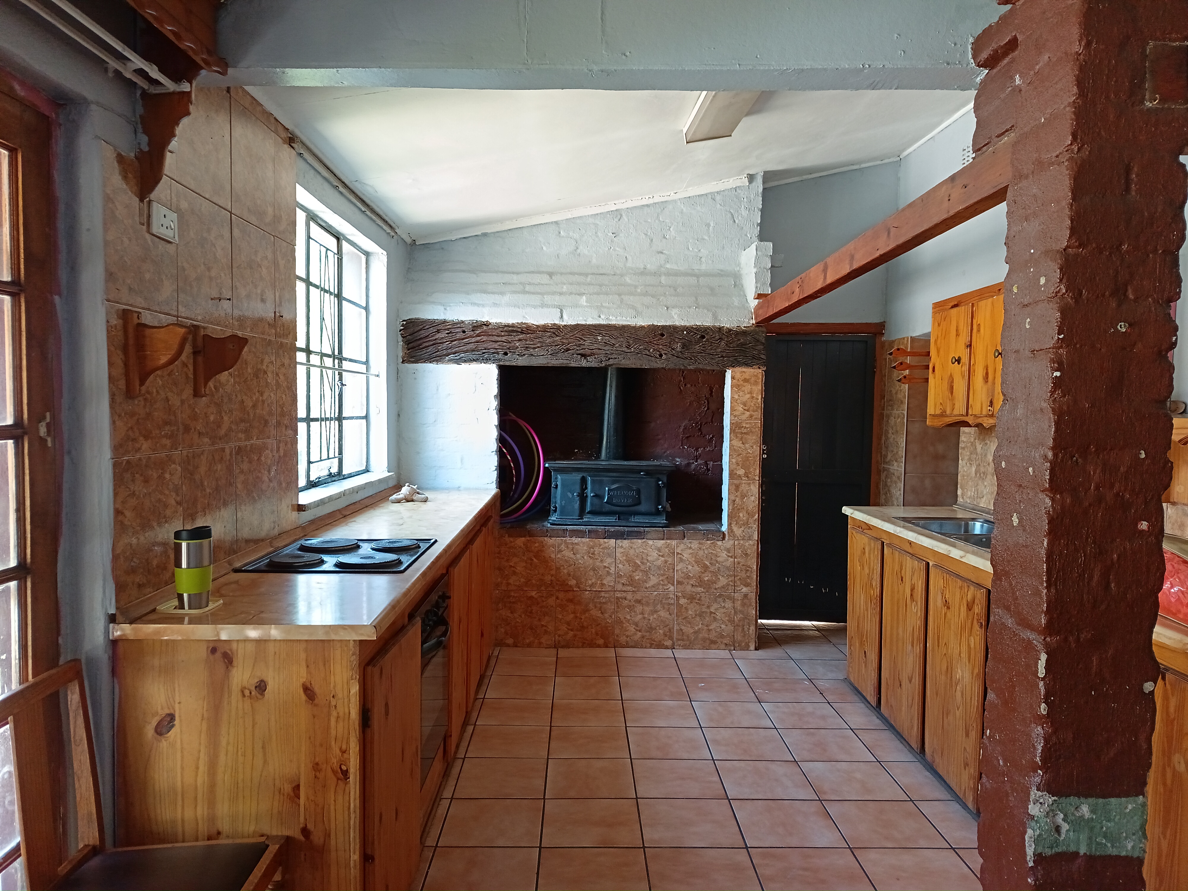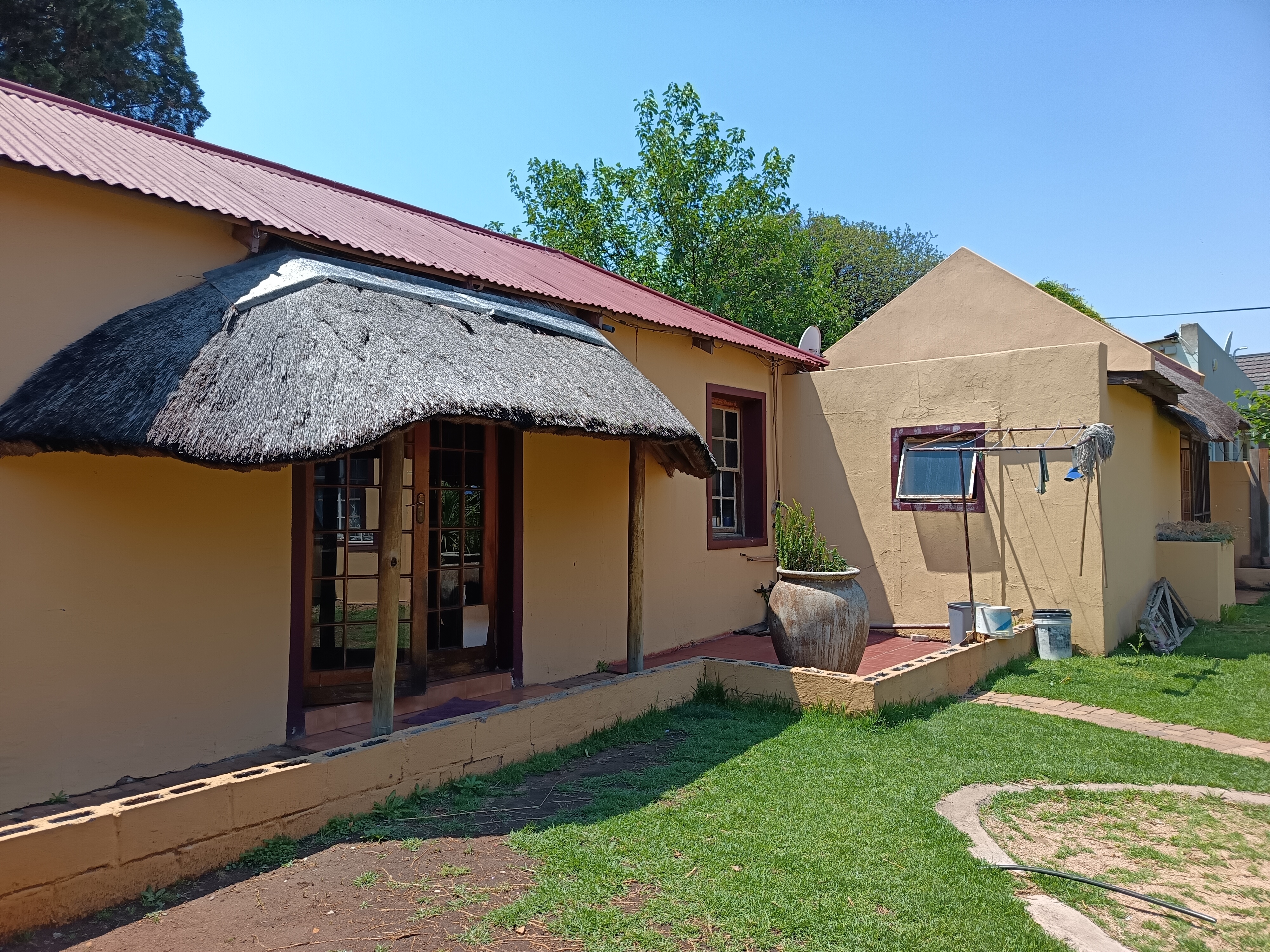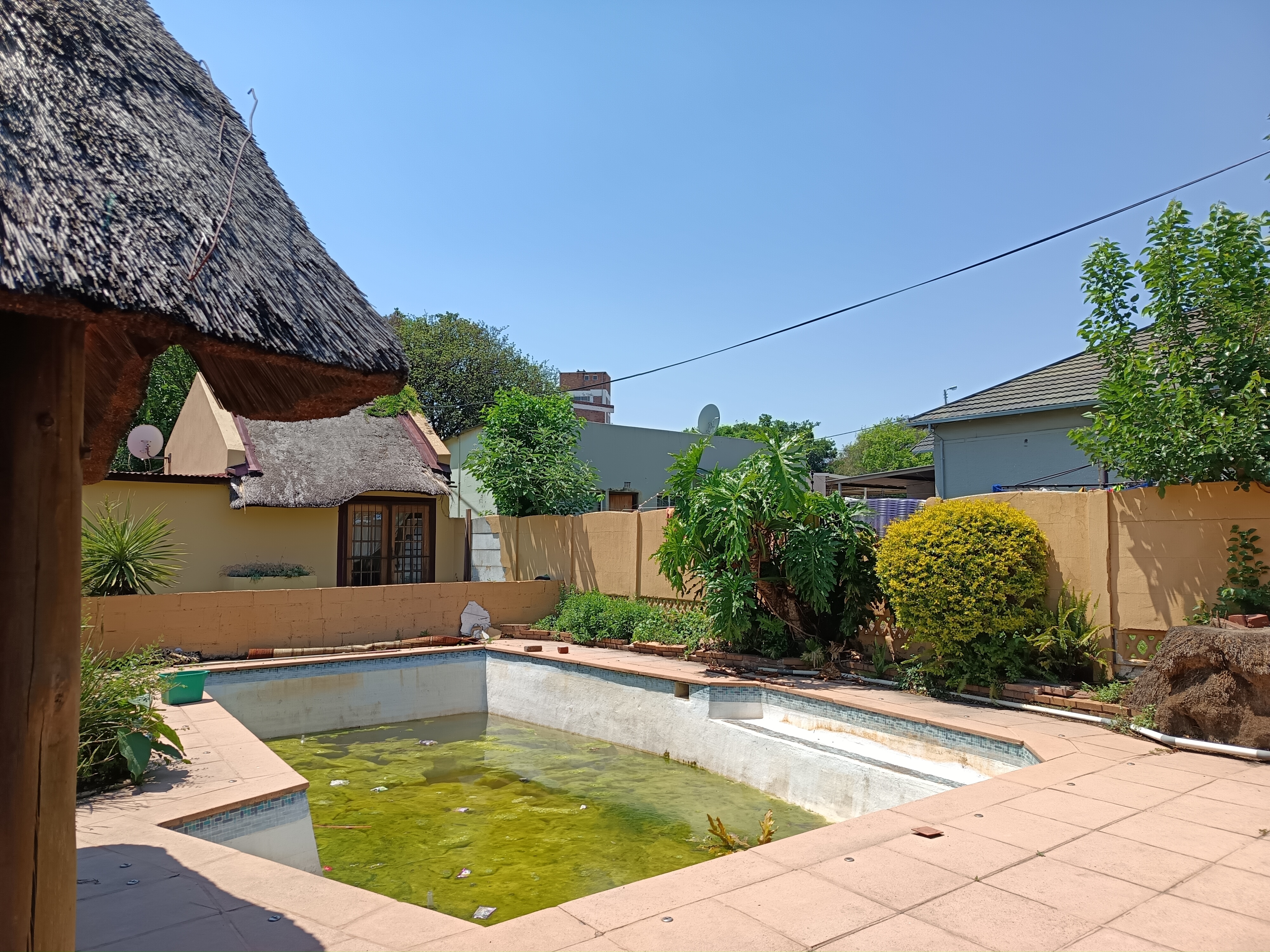 Additional extras include an outside room suitable for storage or domestic use, a swimming pool (requiring some attention and a motor), a built-in braai, and a thatched lapa, making it the perfect setting for entertaining family and friends.