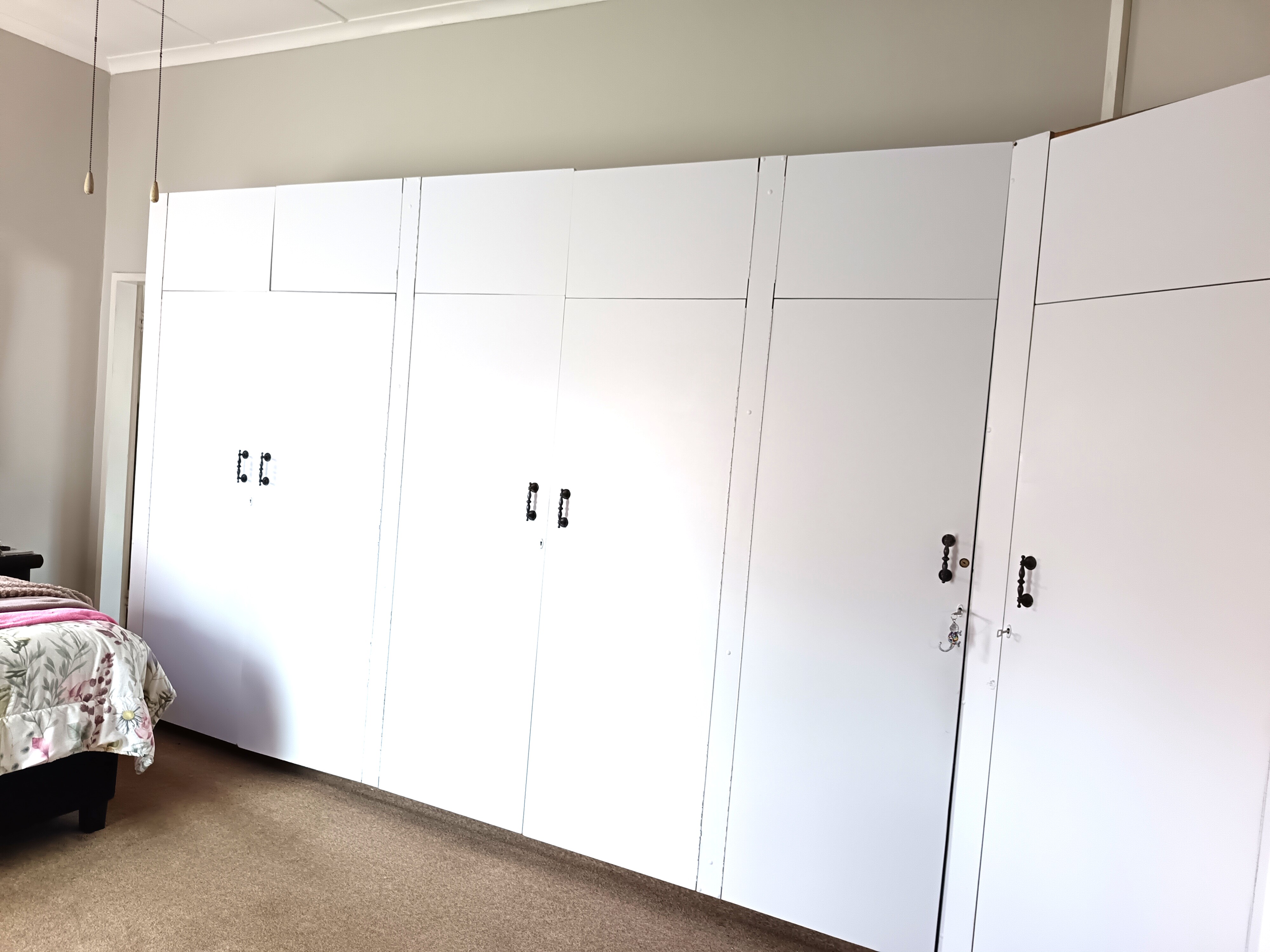 The main bedroom is exceptionally large, featuring ample built-in cupboards, a ceiling fan, and an en-suite bathroom with a bath. The second bedroom is comfortable and bright, while the third bedroom also includes a ceiling fan for added comfort.