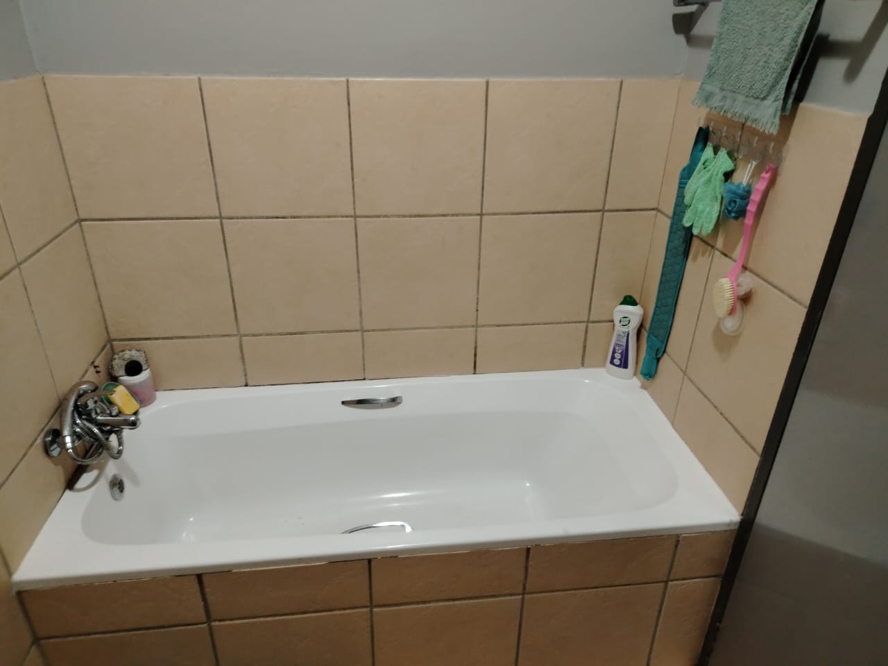 2 Spacious double bedrooms with large windows allowing for lots of natural light and an abundance of cupboard space. The master bedroom has its own private balcony and own en-suite bathroom with bath, hand shower, toilet and basin. The second bathroom offers a shower basin and toilet.