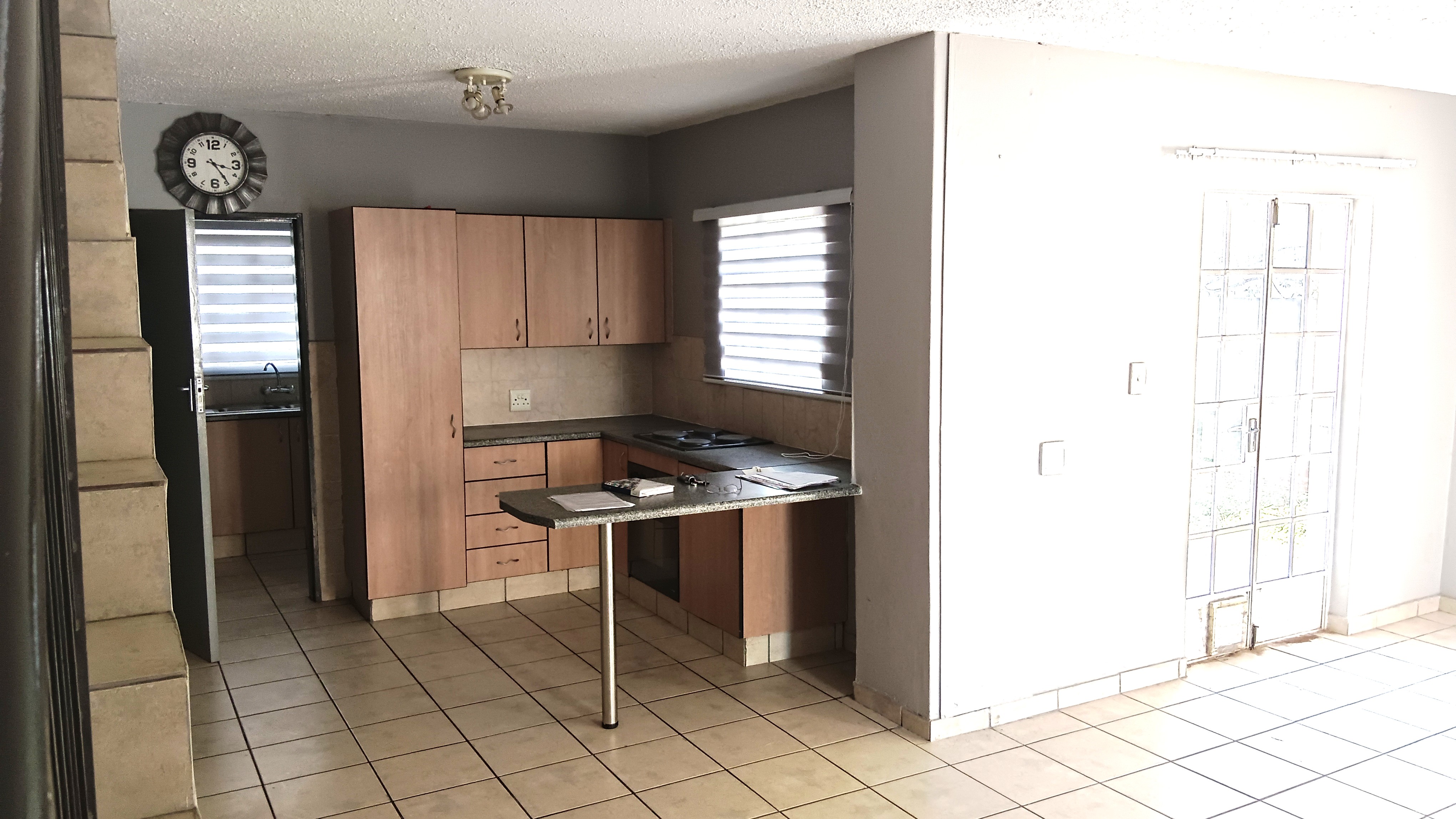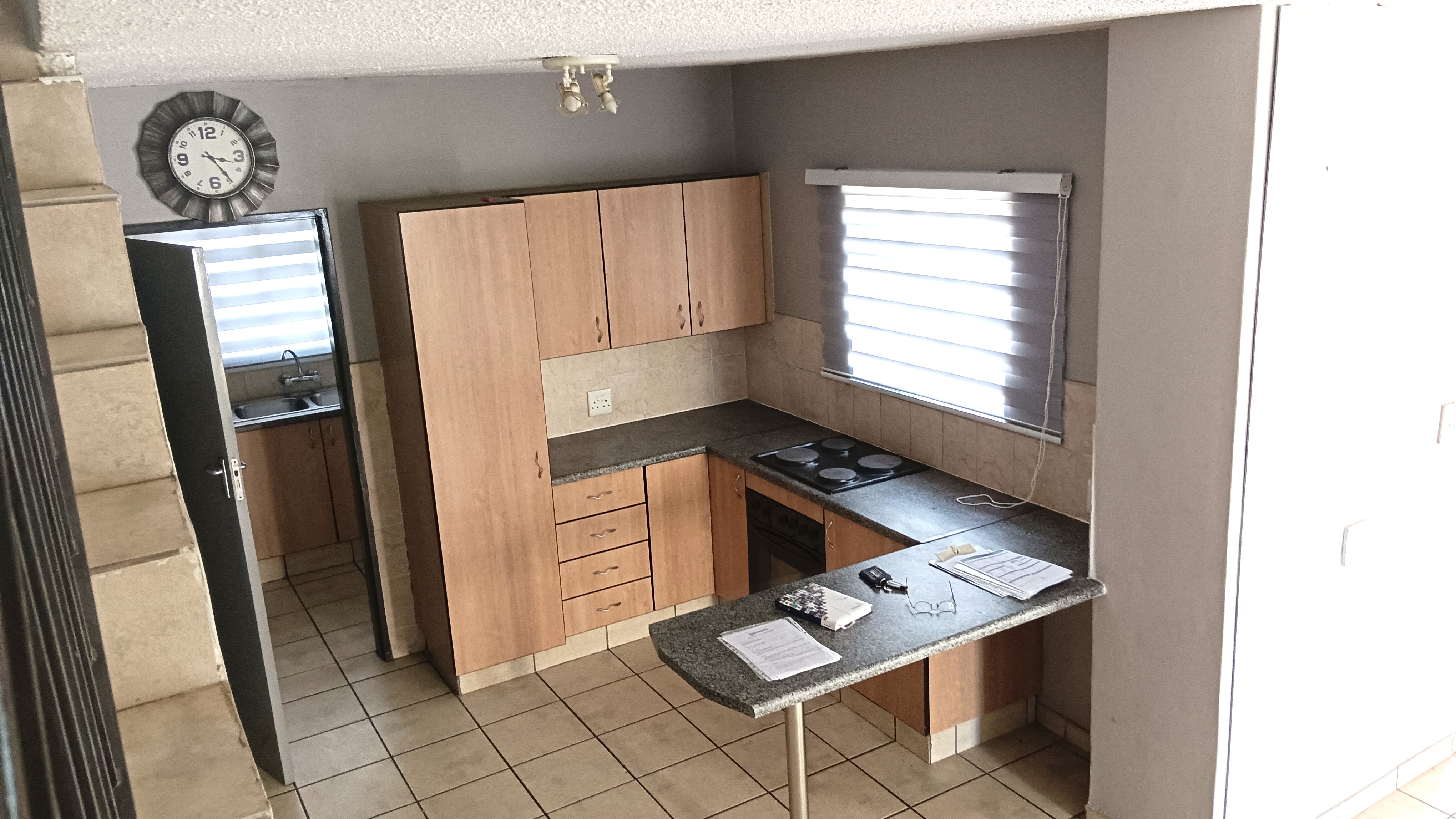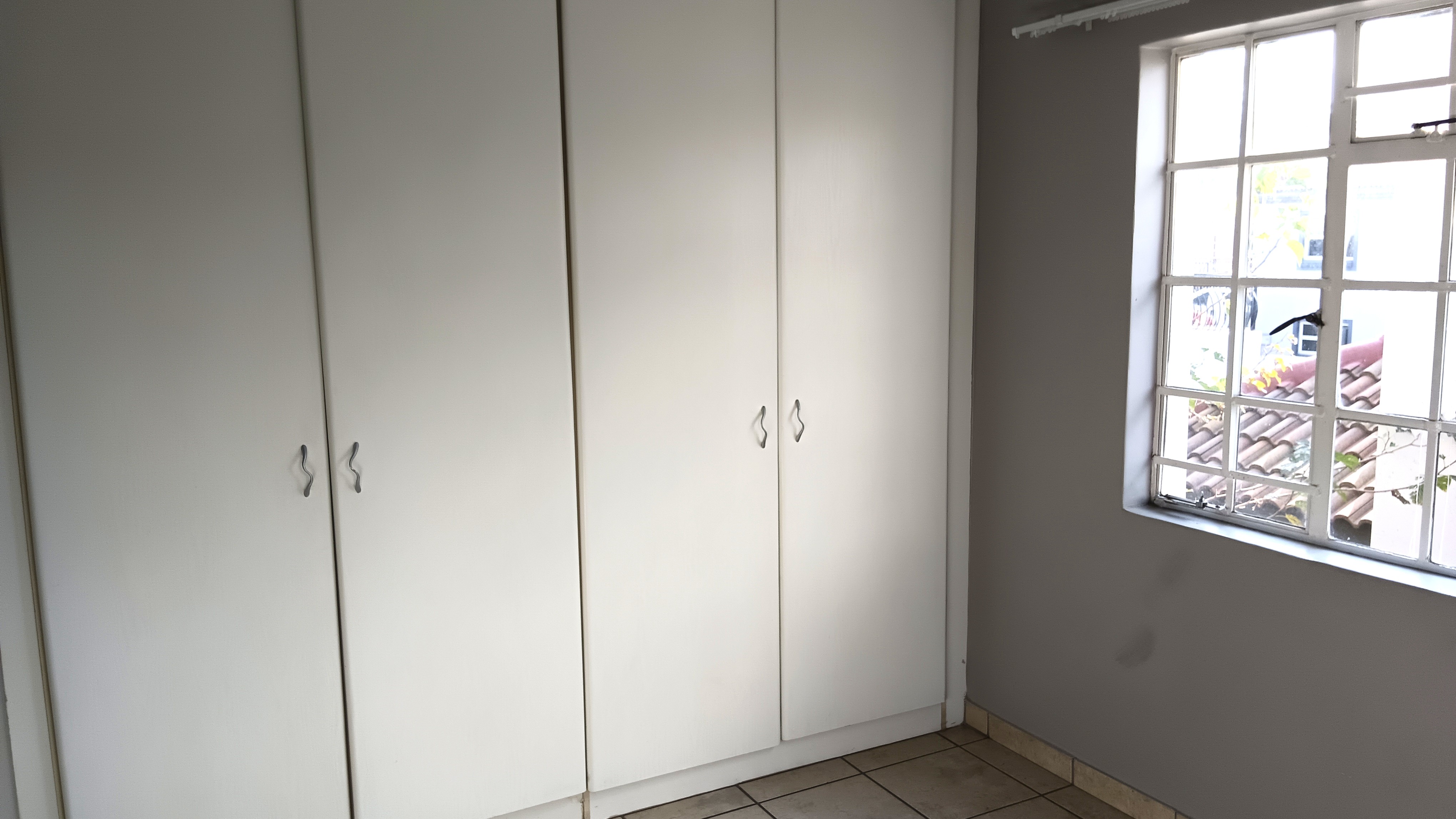 This cozy and well-maintained two-bedroom duet offers the perfect blend of comfort, security, and convenience. The upper level features a spacious main bedroom with a private balcony, a second bedroom, and a full bathroom complete with a bath and hand-held shower. Downstairs, enjoy open-plan living with a modern kitchen equipped with an electric hob, under-counter oven, and breakfast bar. A guest bathroom, generous lounge and dining areas, and a scullery with laundry space enhance everyday functionality. The living area opens onto a private backyard through a patio door, creating an ideal indoor-outdoor flow.