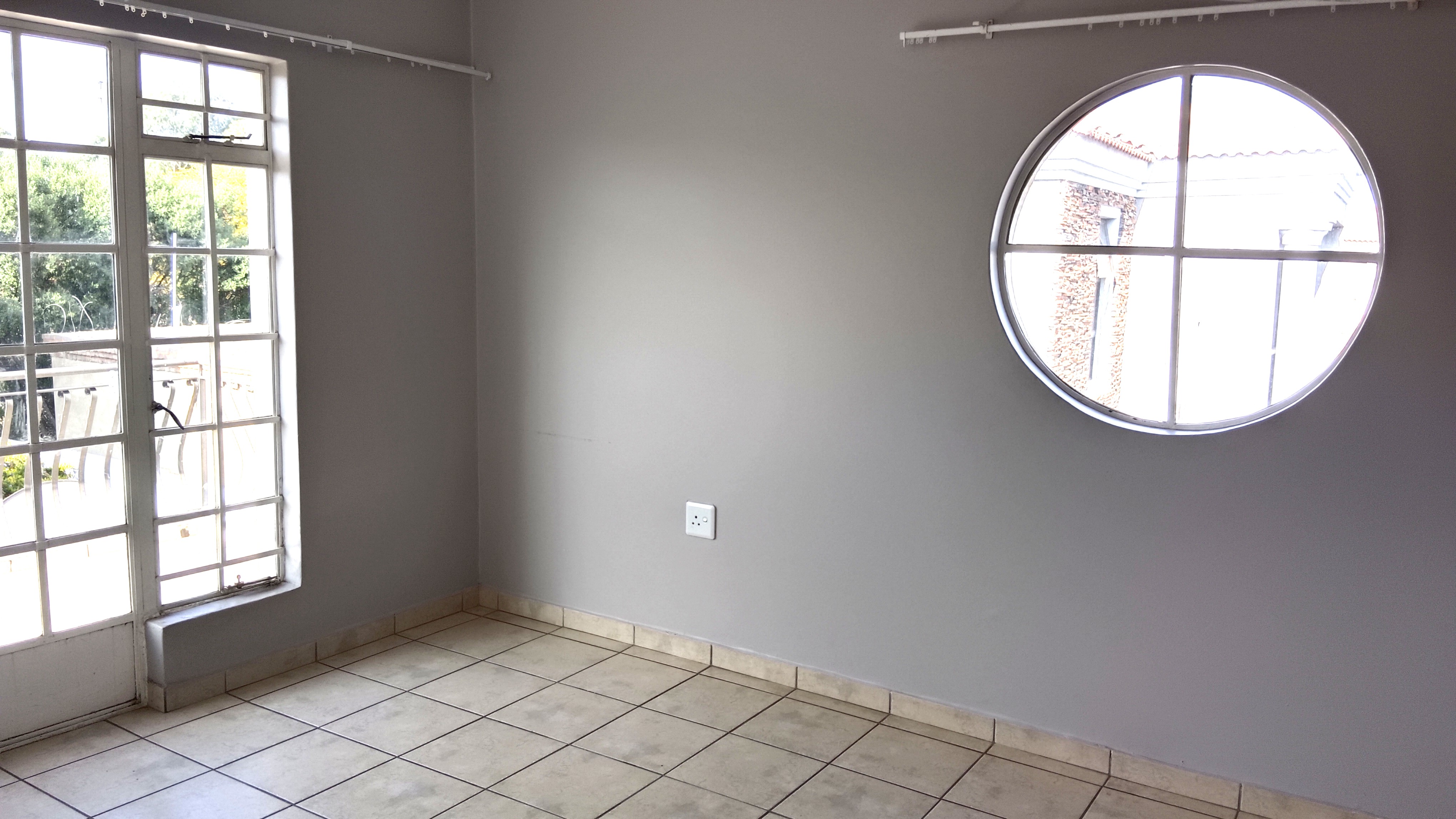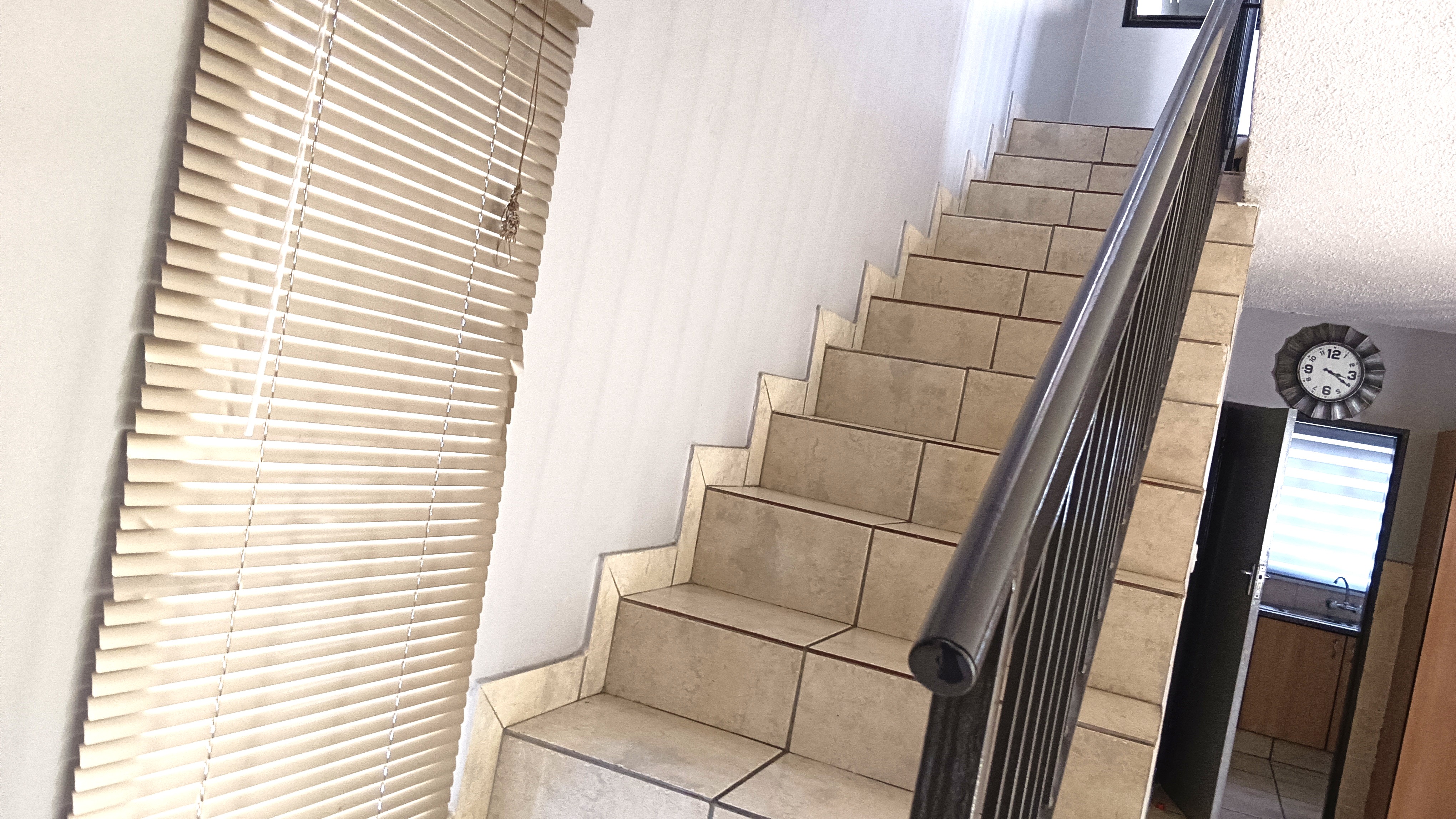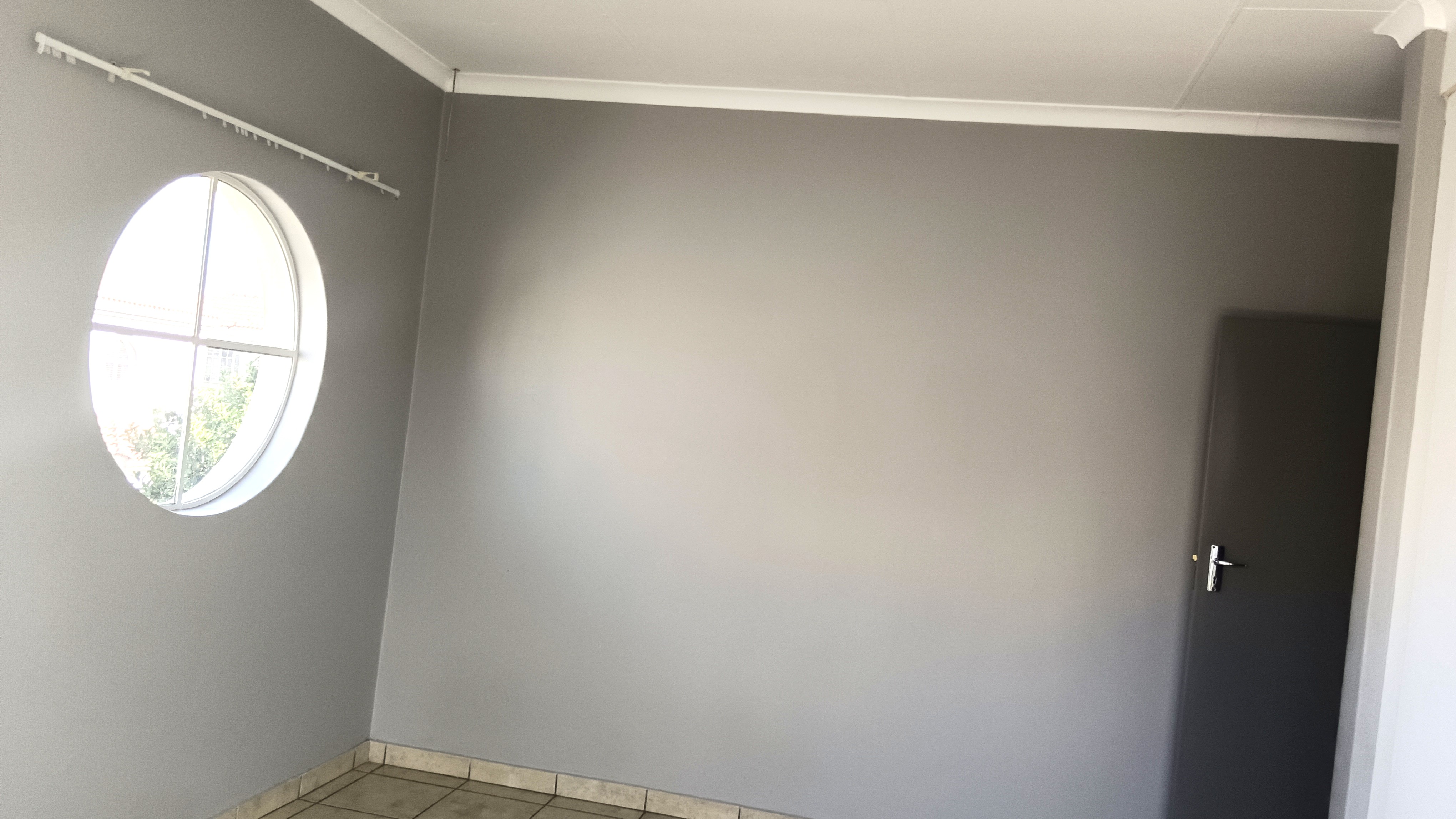 This cozy and well-maintained two-bedroom duet offers the perfect blend of comfort, security, and convenience. The upper level features a spacious main bedroom with a private balcony, a second bedroom, and a full bathroom complete with a bath and hand-held shower. Downstairs, enjoy open-plan living with a modern kitchen equipped with an electric hob, under-counter oven, and breakfast bar. A guest bathroom, generous lounge and dining areas, and a scullery with laundry space enhance everyday functionality. The living area opens onto a private backyard through a patio door, creating an ideal indoor-outdoor flow.