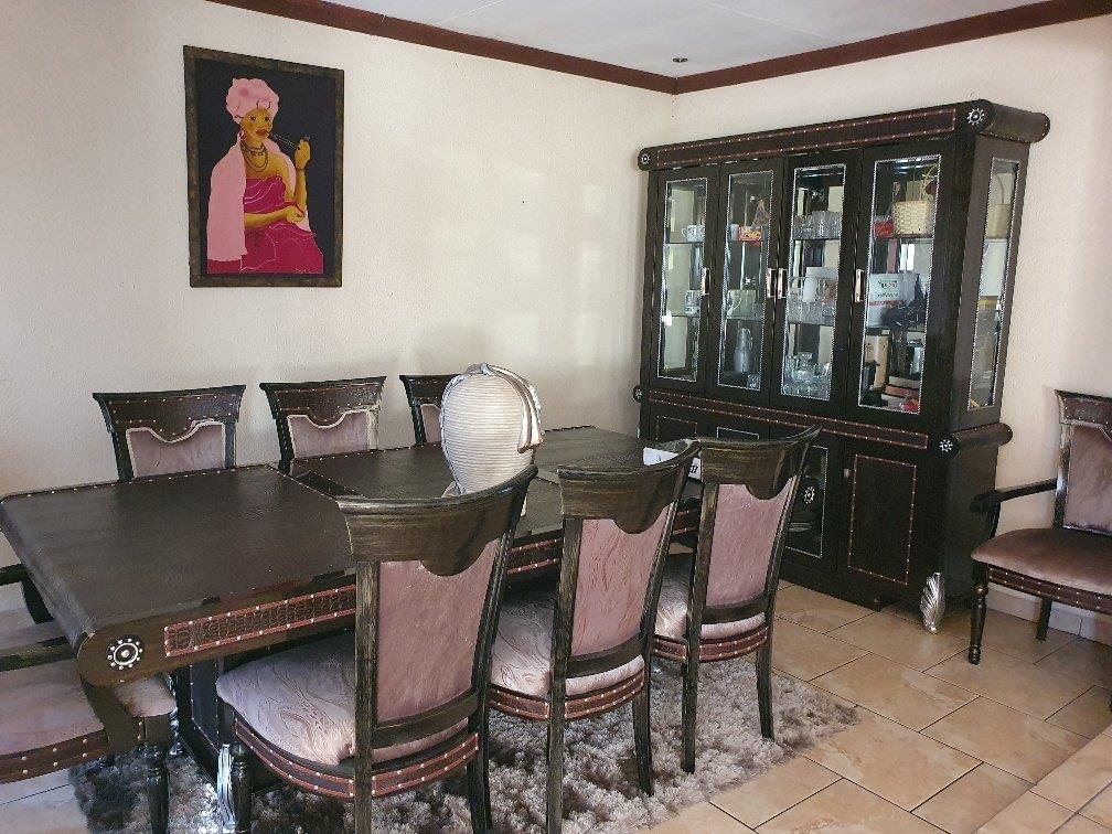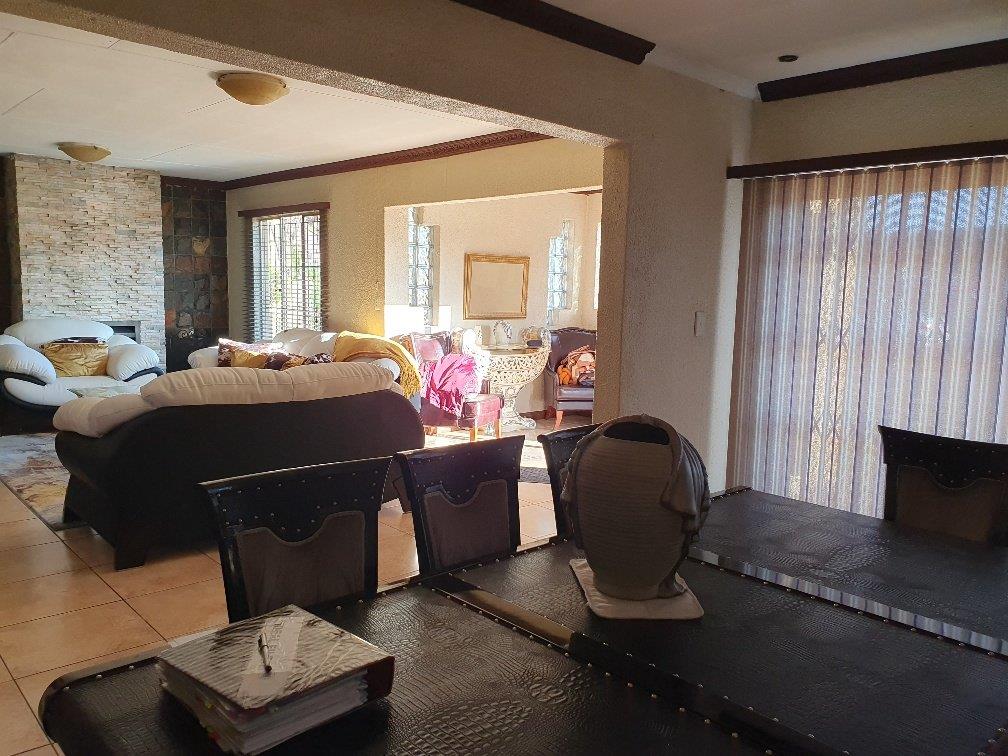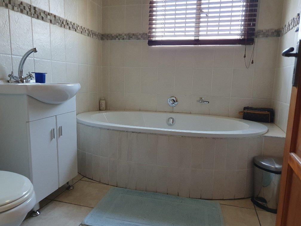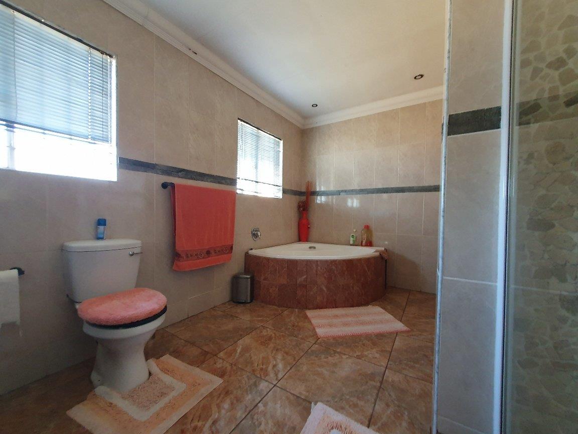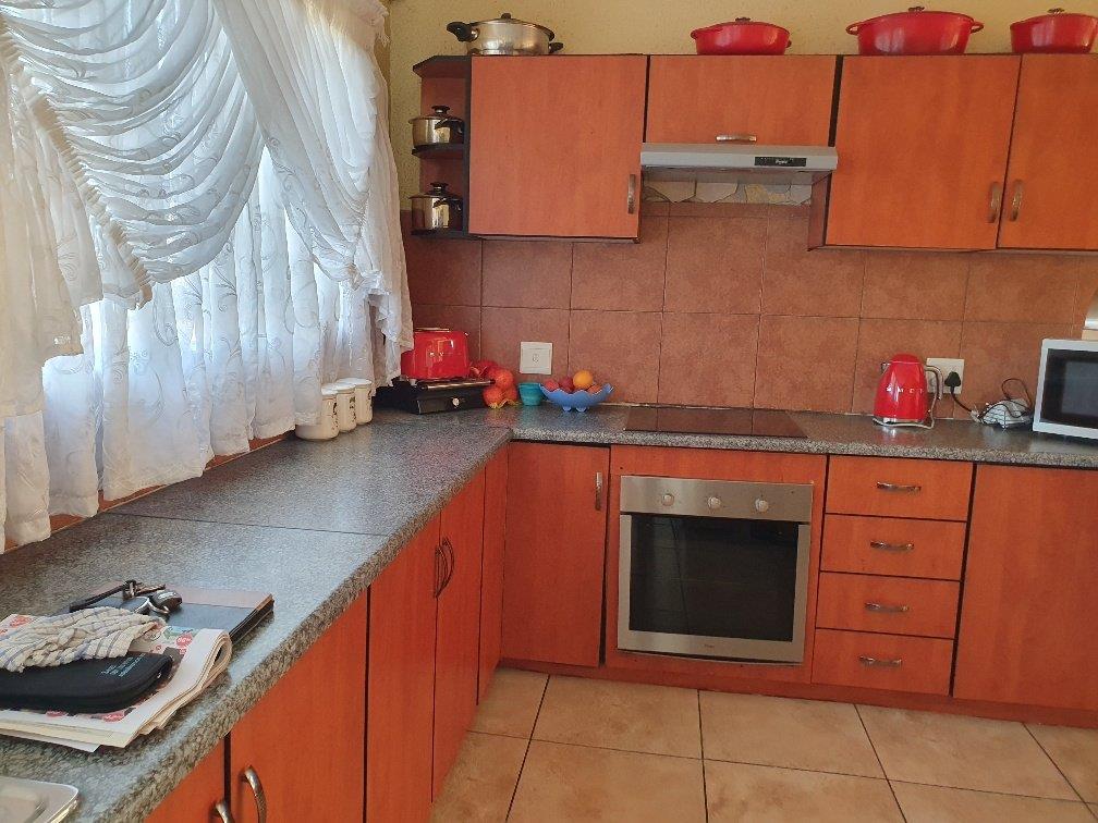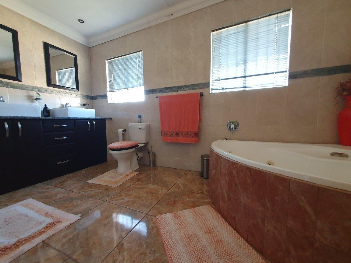 Large modern family home with four bedrooms, two bathrooms, one en-suite to the main bedroom. The property boasts a large lounge with fireplace that is open-plan to the dining room and kitchen which are also spacious. The kitchen is fitted with ample built-in units in a cherrywood finish. The living areas are all tiled with sensible tiles and the bedrooms are carpeted. The house has a gorgeous street appeal with palisade fencing in front and precast walls at the back and side. There is a double garage with brick paved driveway. All of this on a 973 square meter stand. This is well worth viewing.