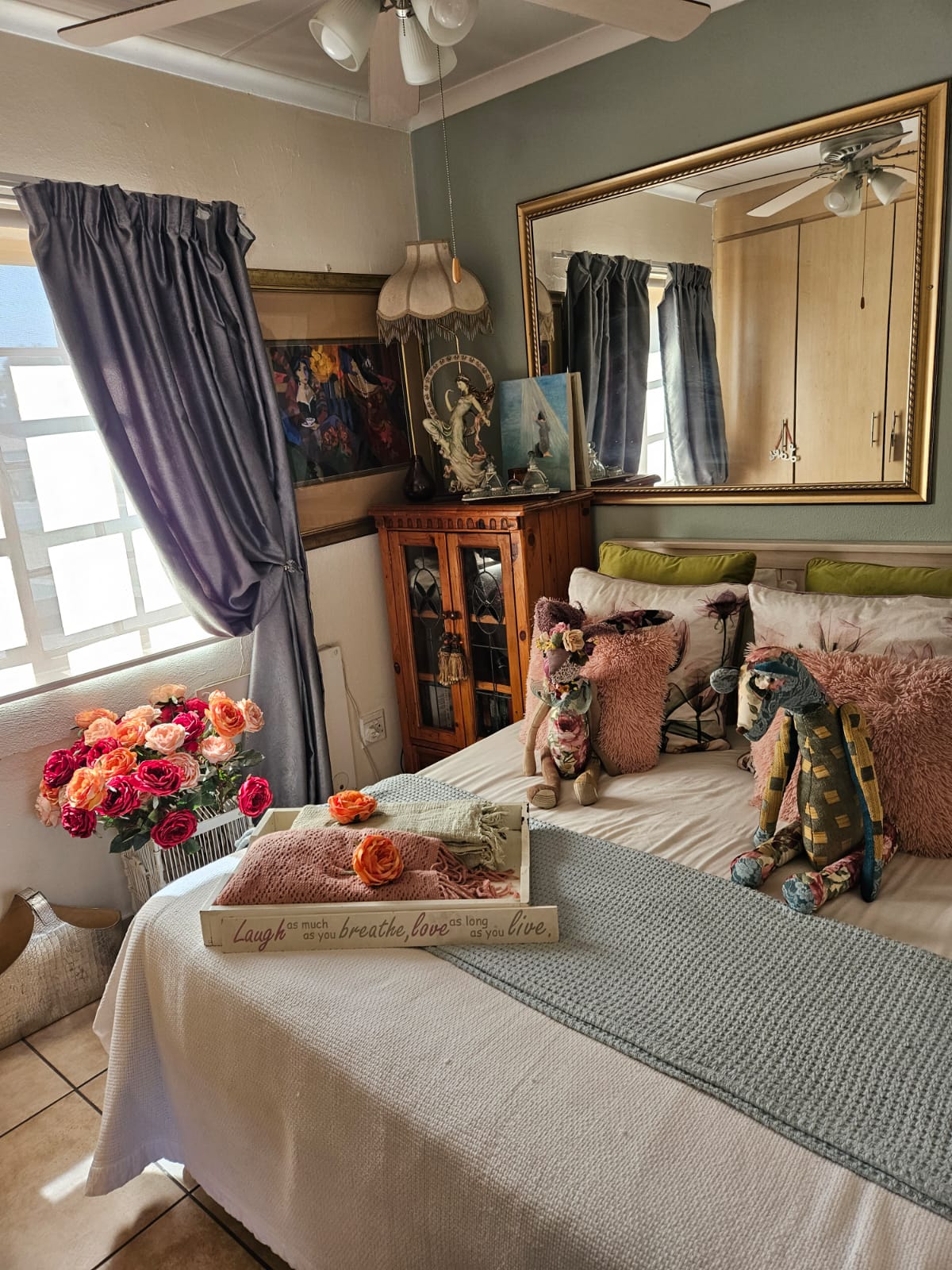 Outside, the property includes shade-net parking for two vehicles and a beautifully maintained, fully enclosed garden.