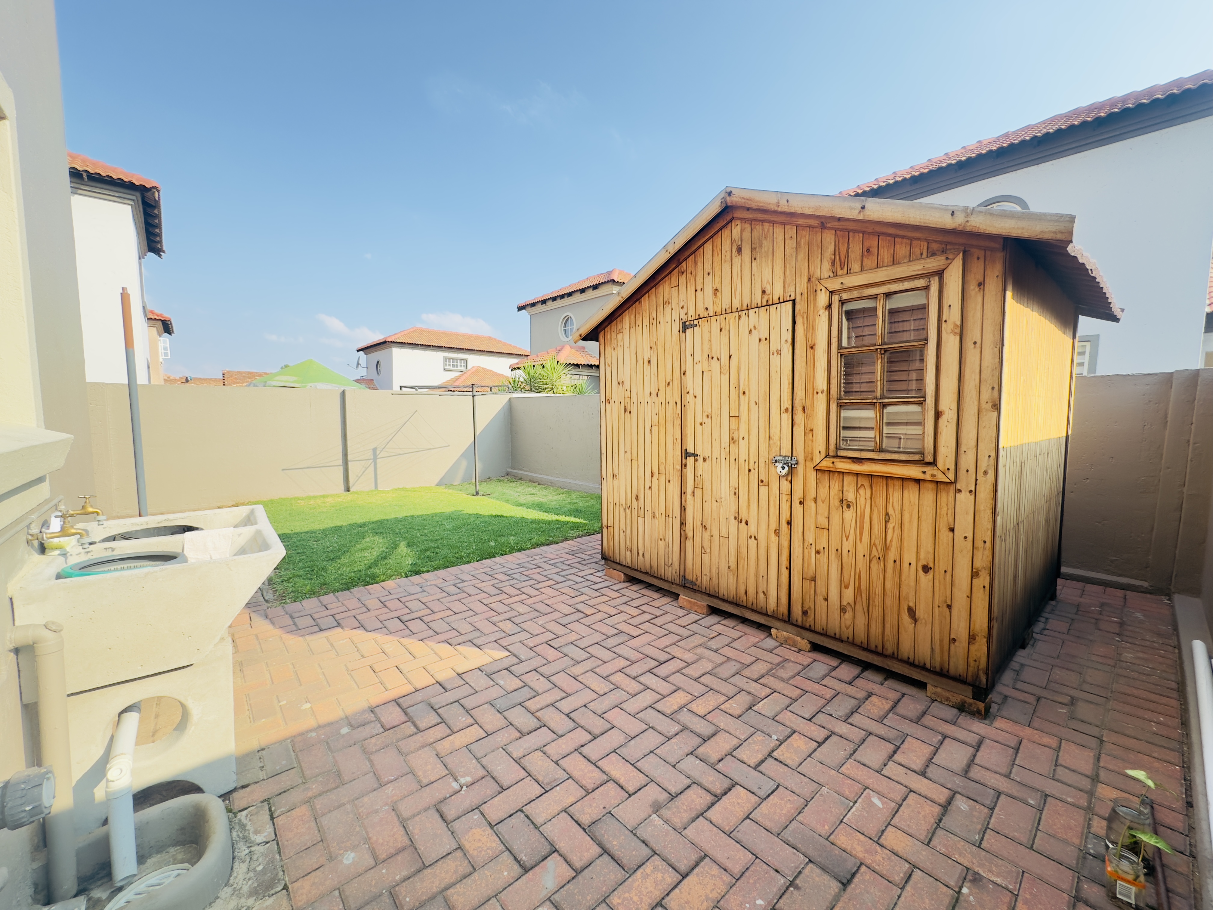 Outdoor Extras: A charming patio area and a Wendy house for additional storage