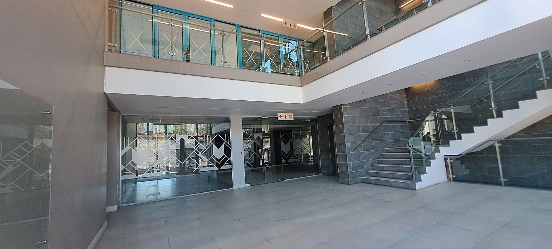 Surrounded by beautifully landscaped gardens, the contemporary architecture of this building creates a professional and inviting work environment that exudes a strong corporate image. The striking facade, featuring frameless full-length windows and clean plastered structural elements, not only adds to the modern aesthetic but also allows for an abundance of natural light to flow throughout the building. With three levels of top-quality office space, this property presents a fantastic opportunity for businesses seeking a flagship office in a well-connected and highly visible location.