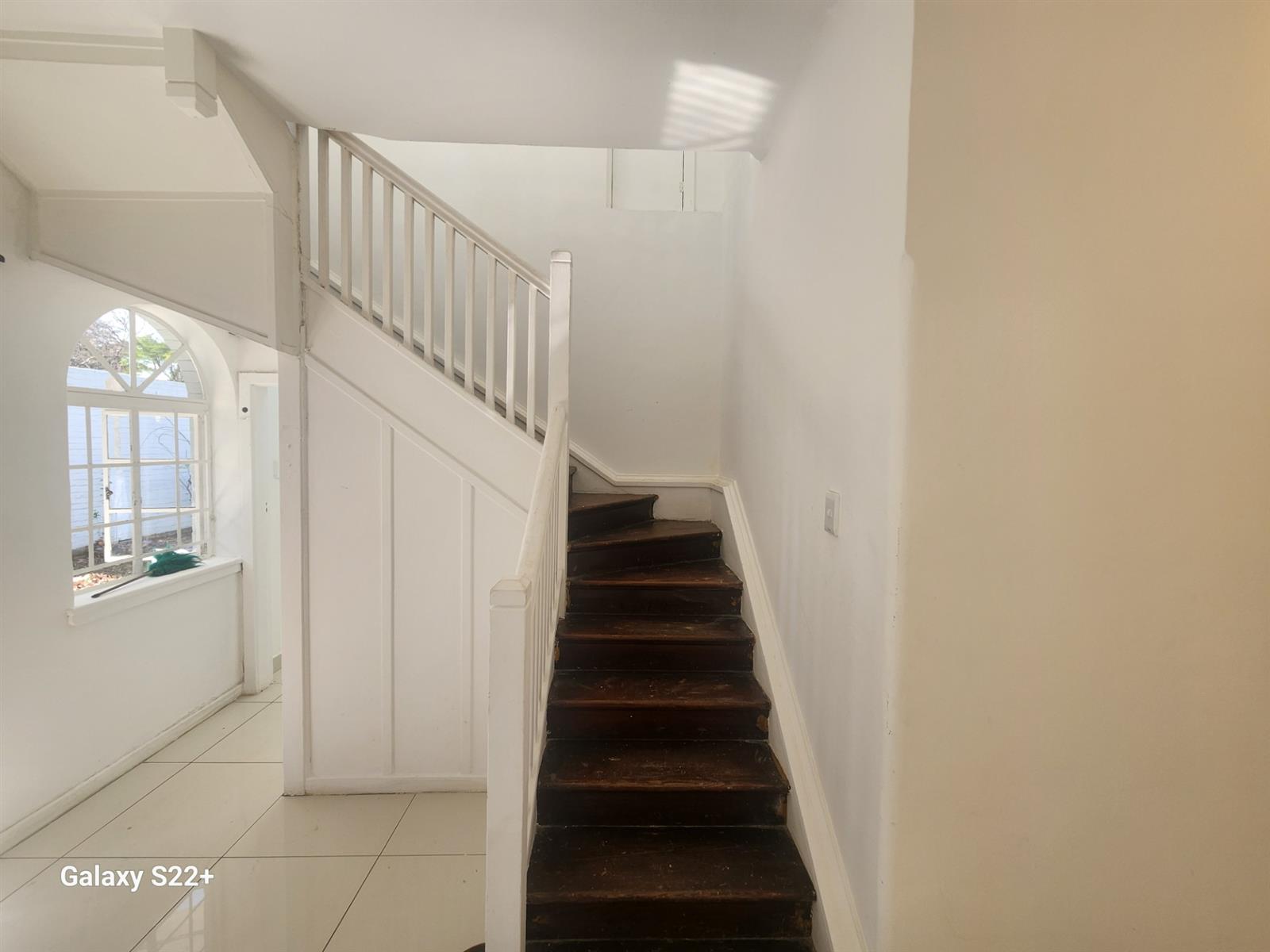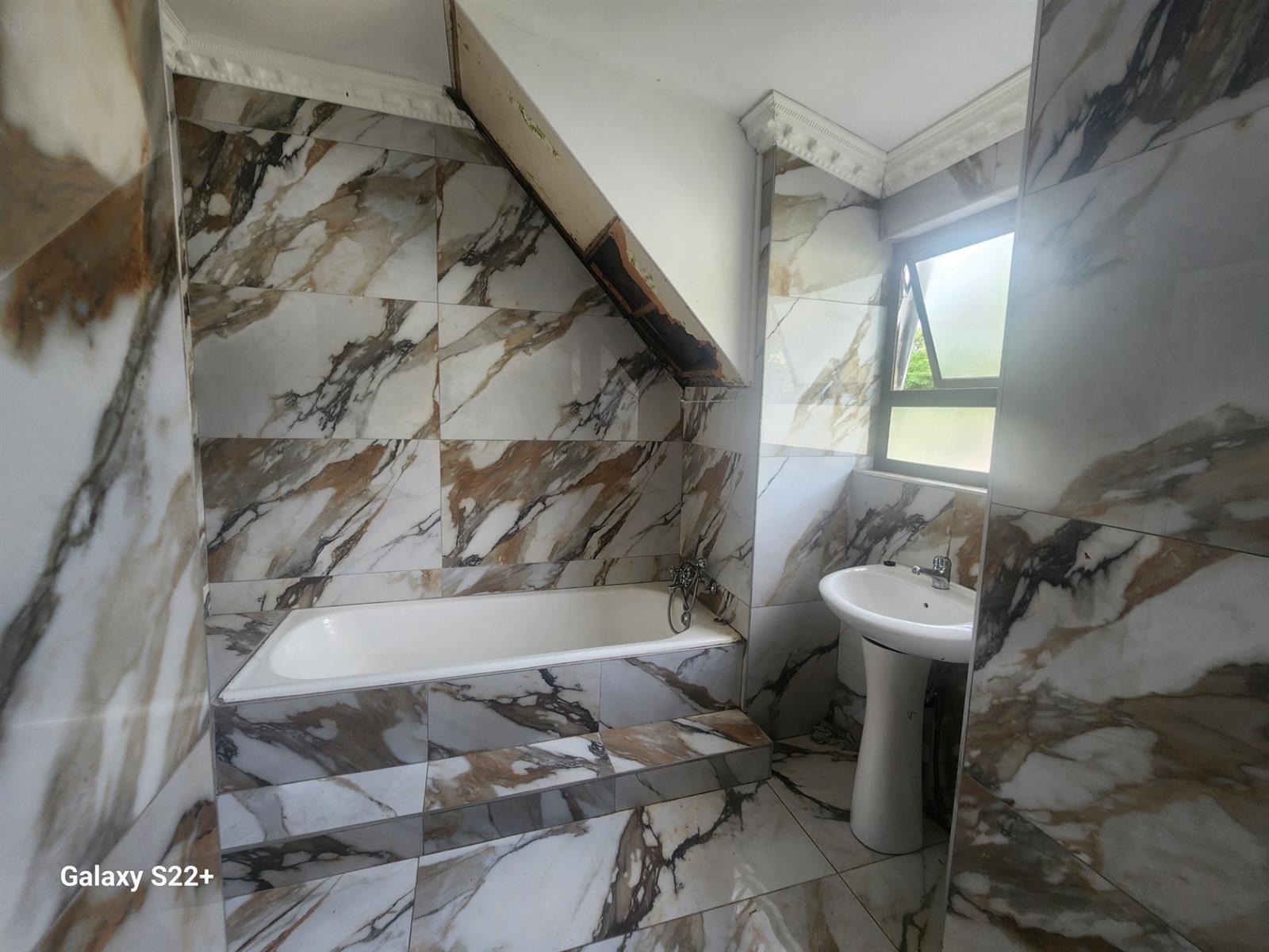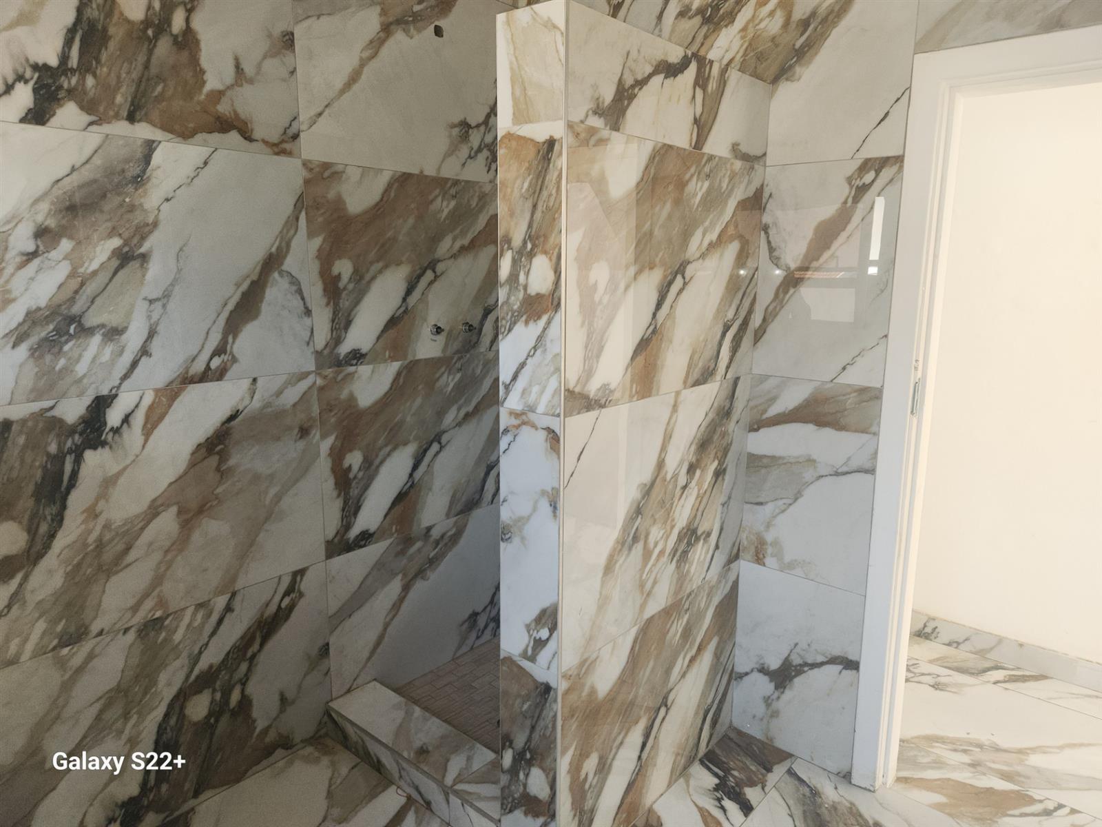 The entrance lobby on the left leads to the upstairs where the main bedroom and two other bedrooms, all neatly carpeted to be occupied. The full bathroom is laid in white and brown marble tiles walled.