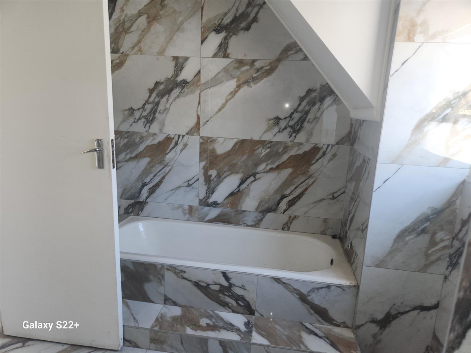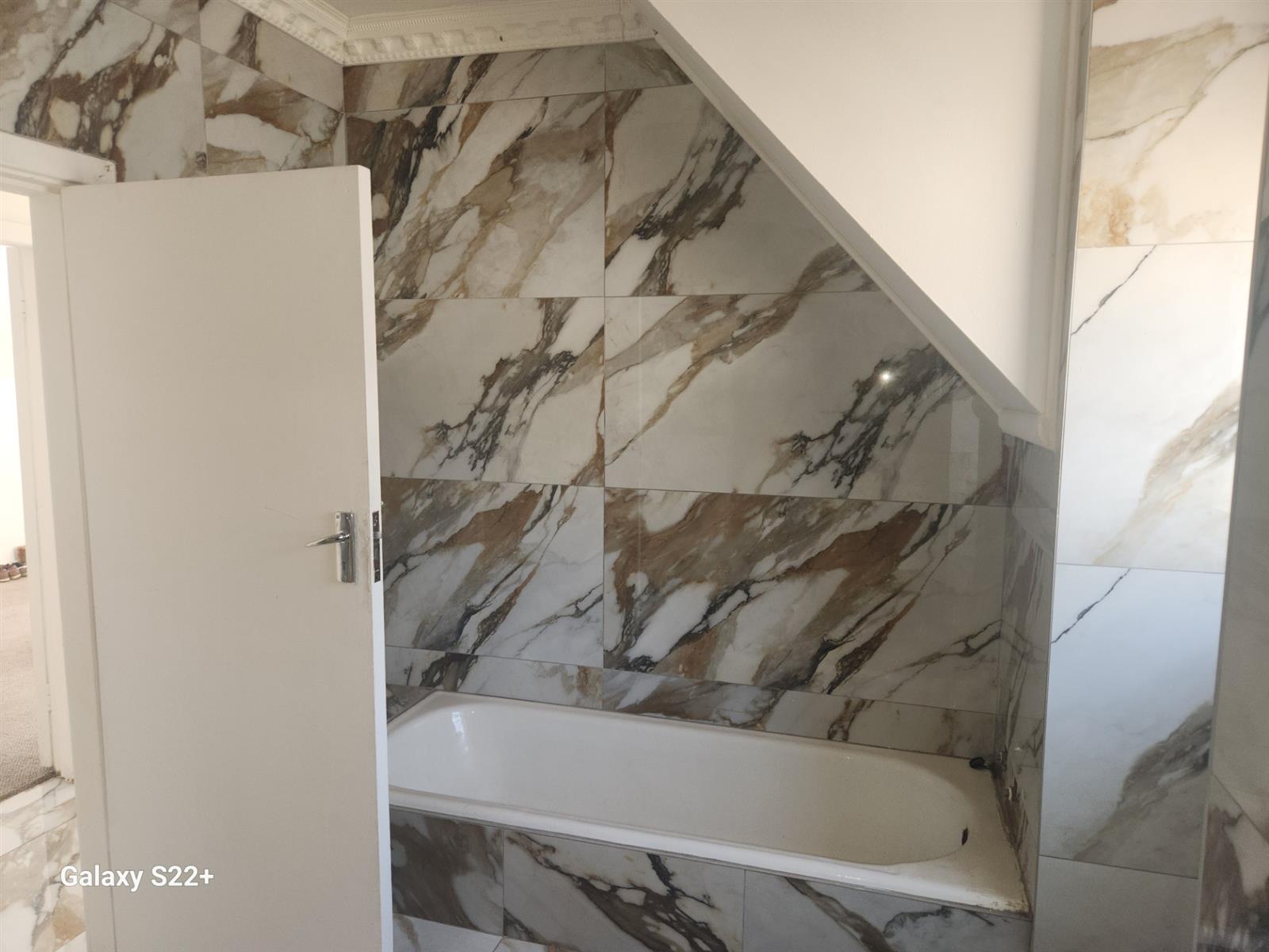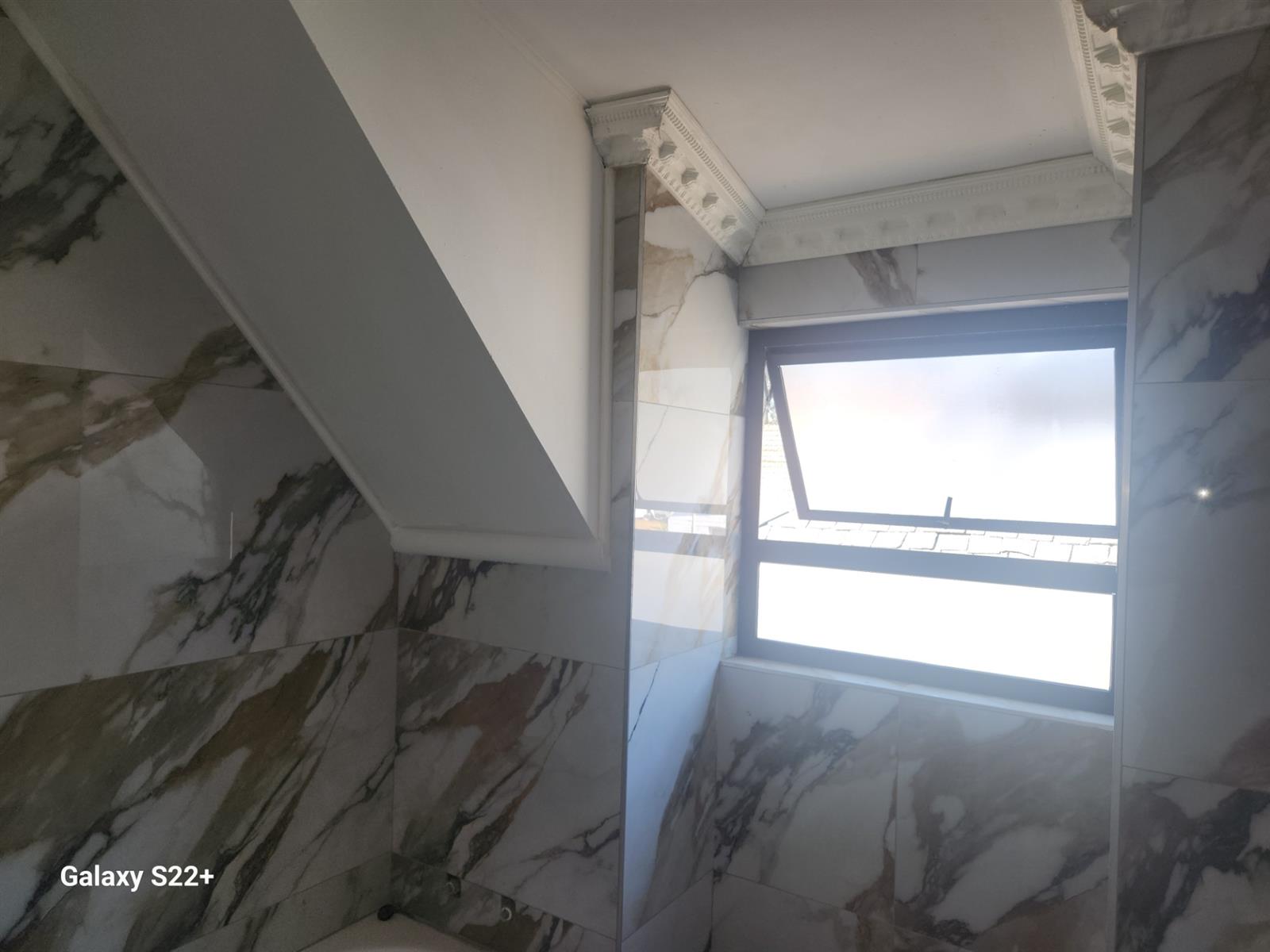The entrance lobby on the left leads to the upstairs where the main bedroom and two other bedrooms, all neatly carpeted to be occupied. The full bathroom is laid in white and brown marble tiles walled.