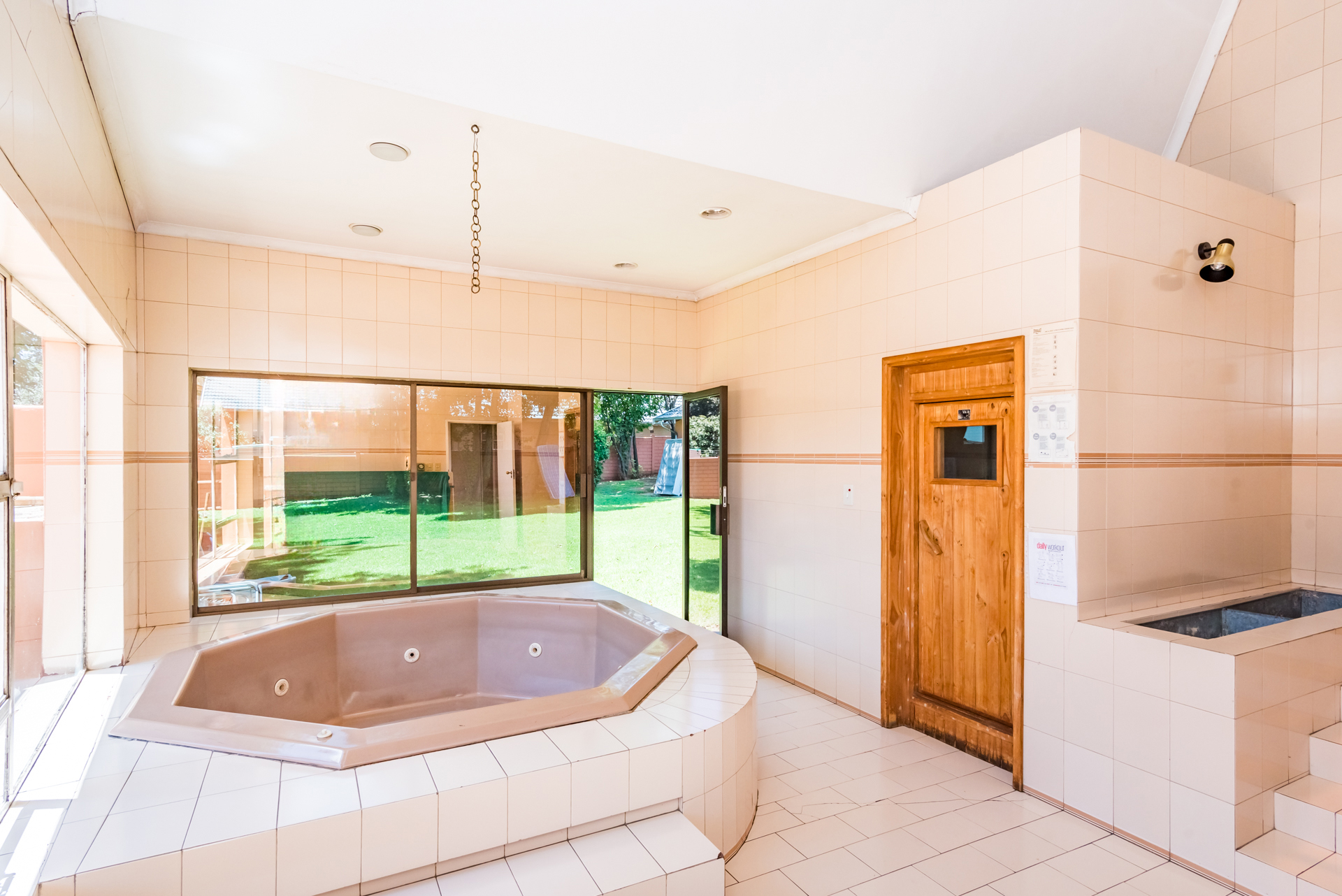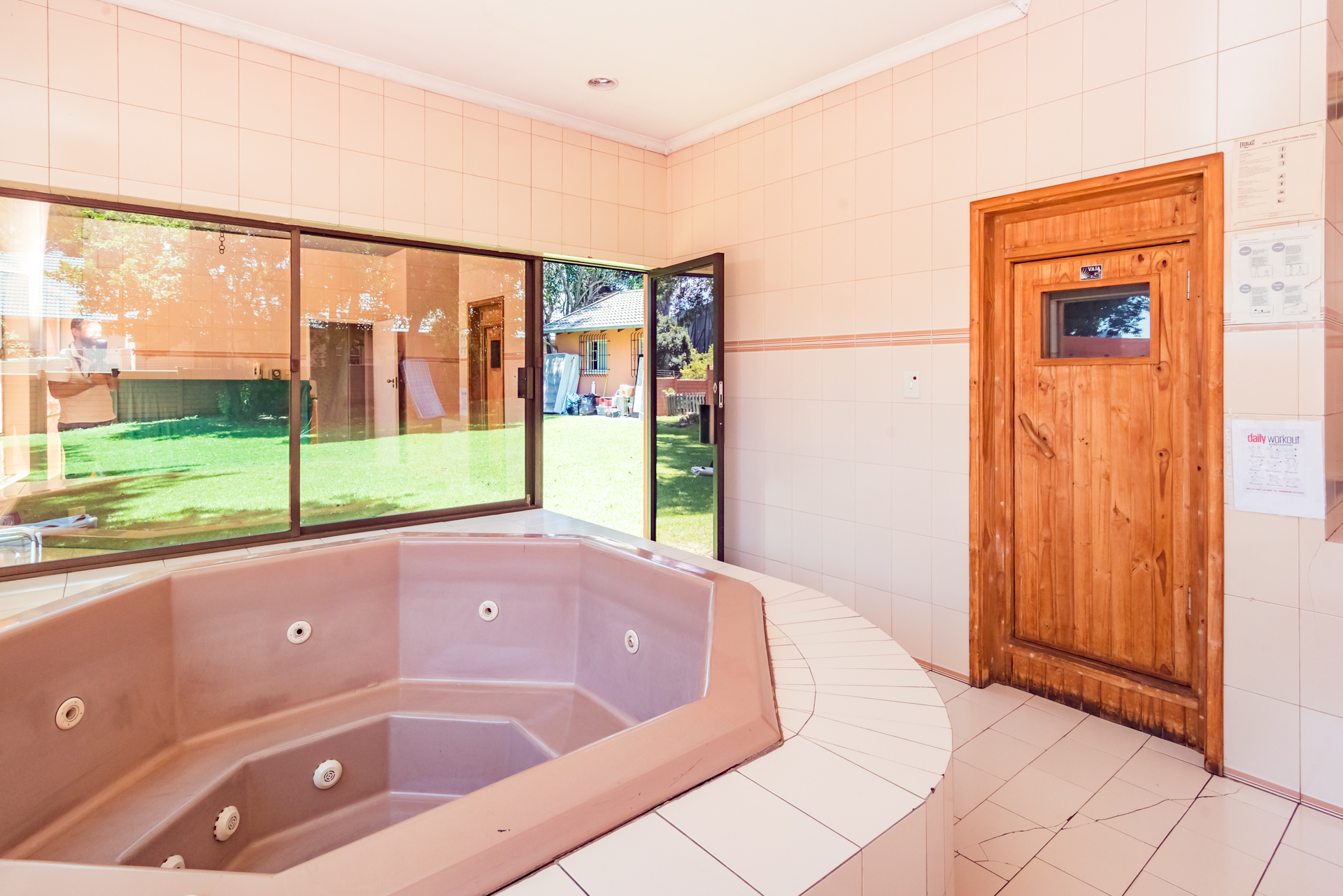Unwind in the Jacuzzi Room with a Sauna and Full Bathroom.