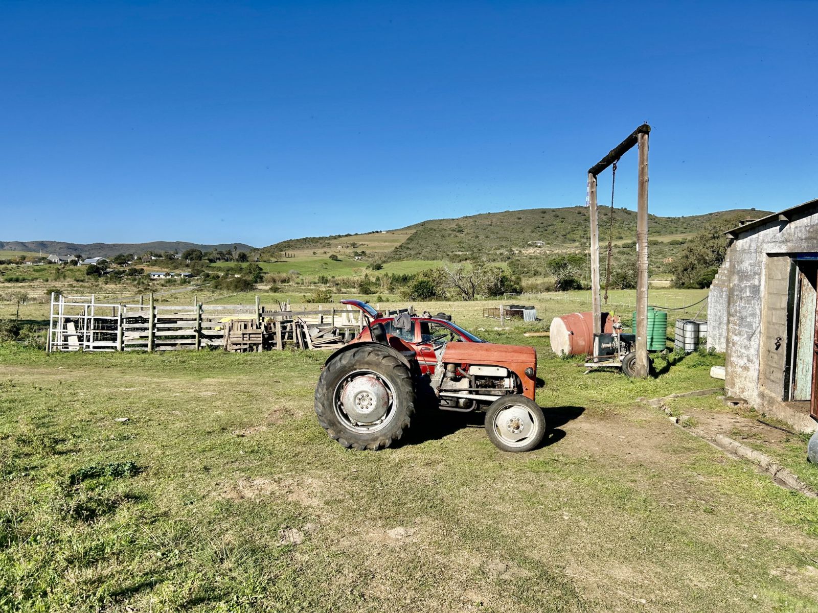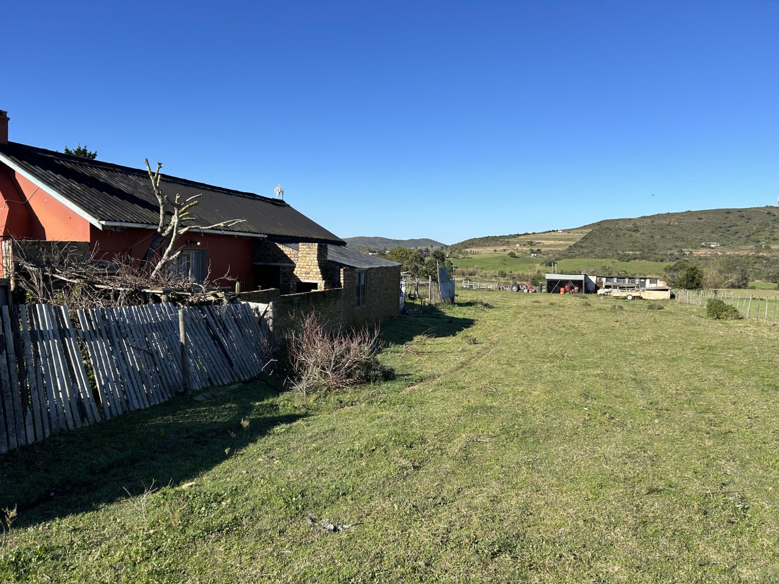 The property is equipped for small-scale farming, featuring a practical shed and pig pens that cater to agricultural ventures. The fencing is in reasonable condition, ensuring basic security and containment for livestock or pets.