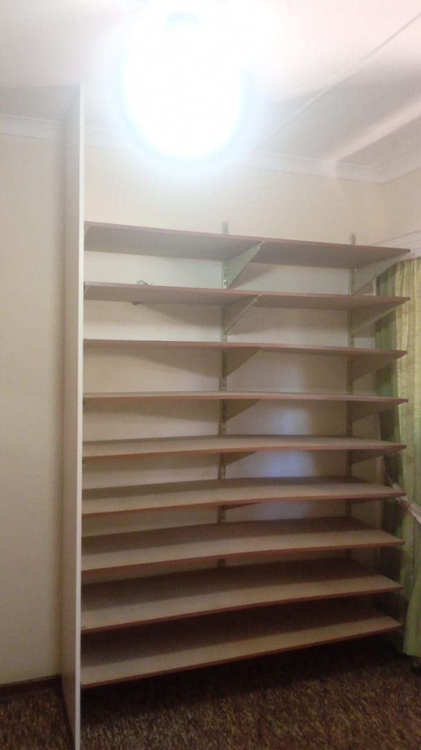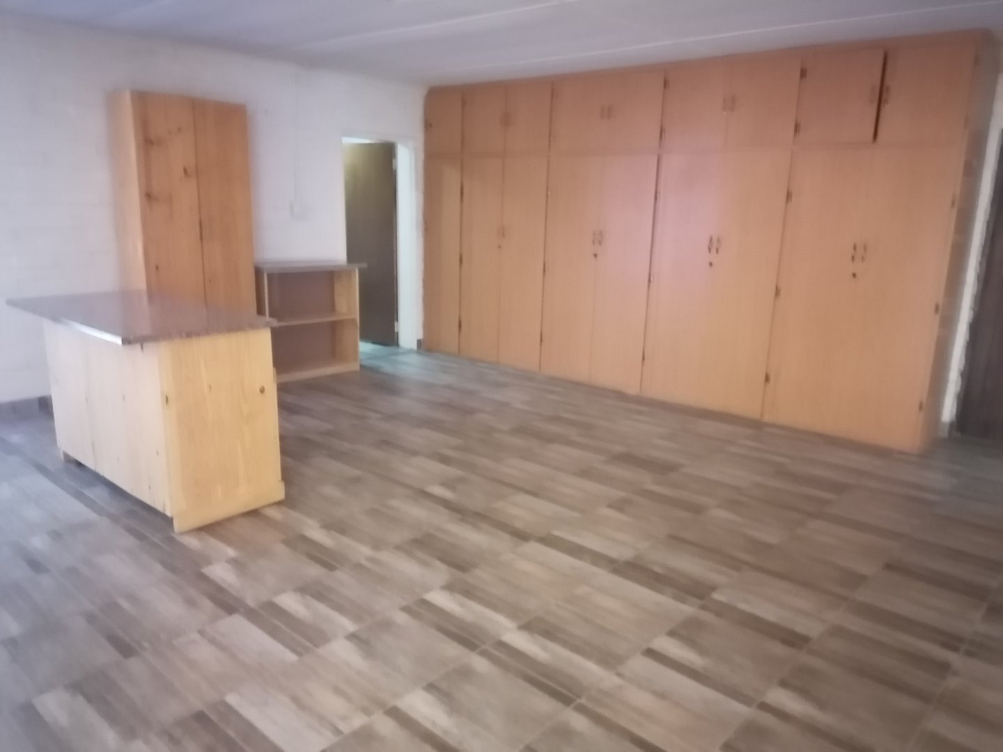 1 Huge Bachelor Flat with lots of built ins, a kitchenette, big bathroom and sliding door to garden.