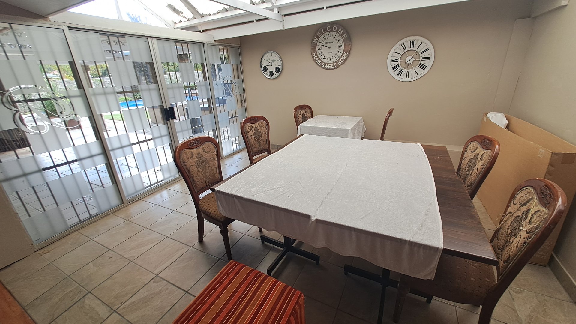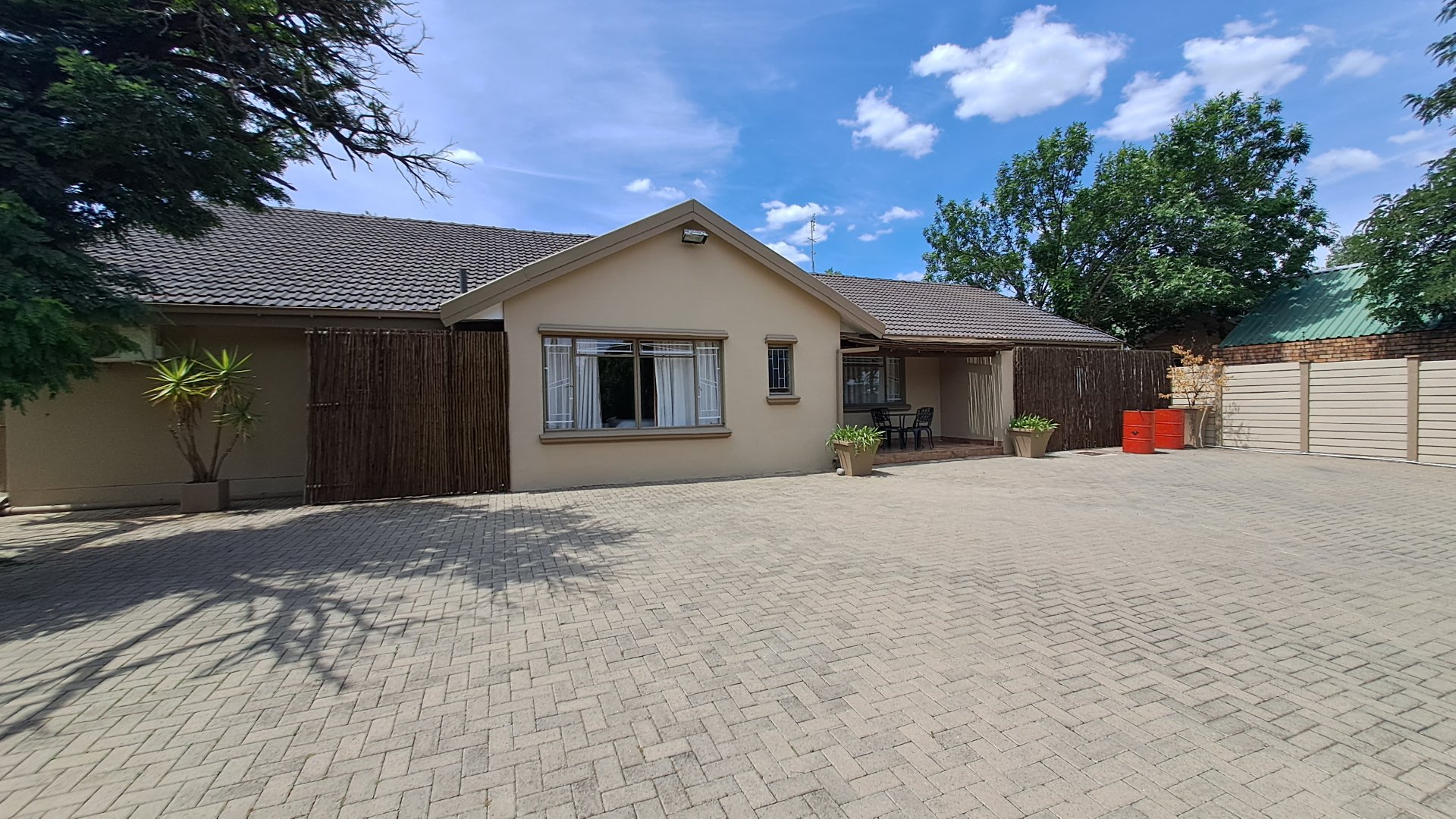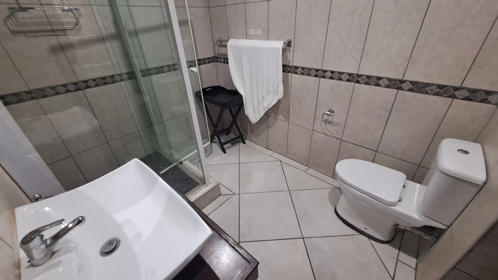 Previously a guesthouse and now used for staff accommodation, the property features a small foyer, five spacious rooms with en-suite bathrooms, three living/dining spaces, and a huge kitchen with ample built-in cupboards. The tiled floors, neat ceilings, and painted walls make this property well-maintained and ready for your new ownership.