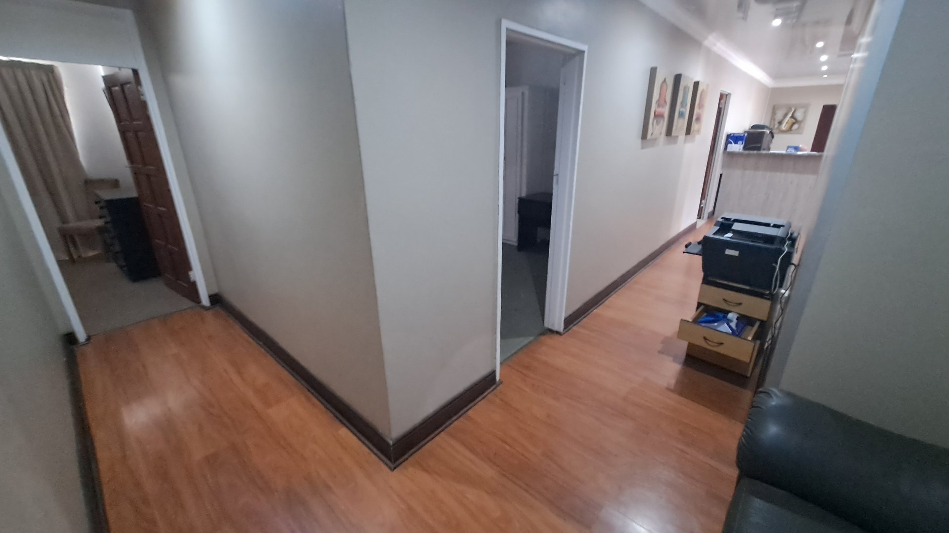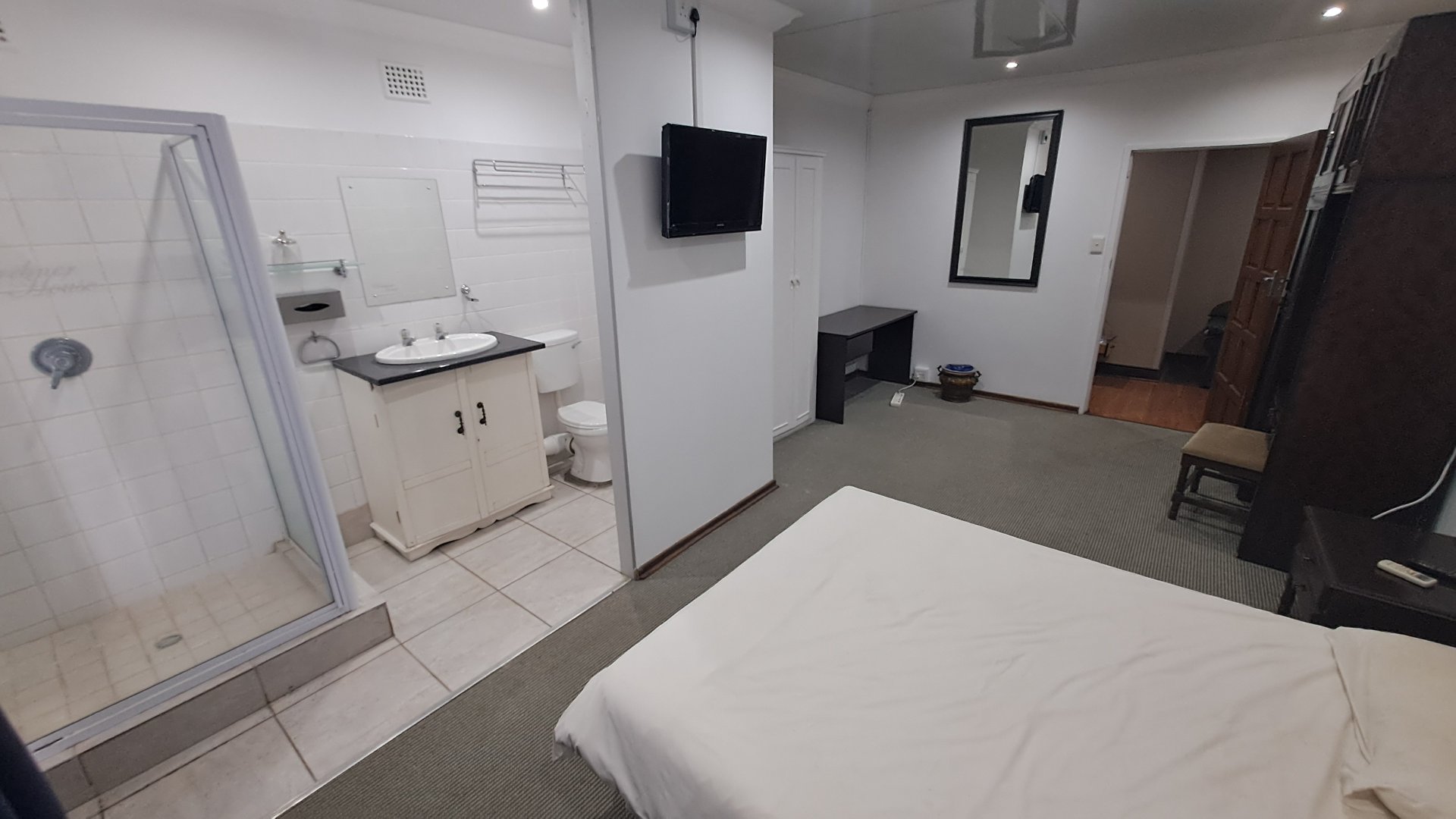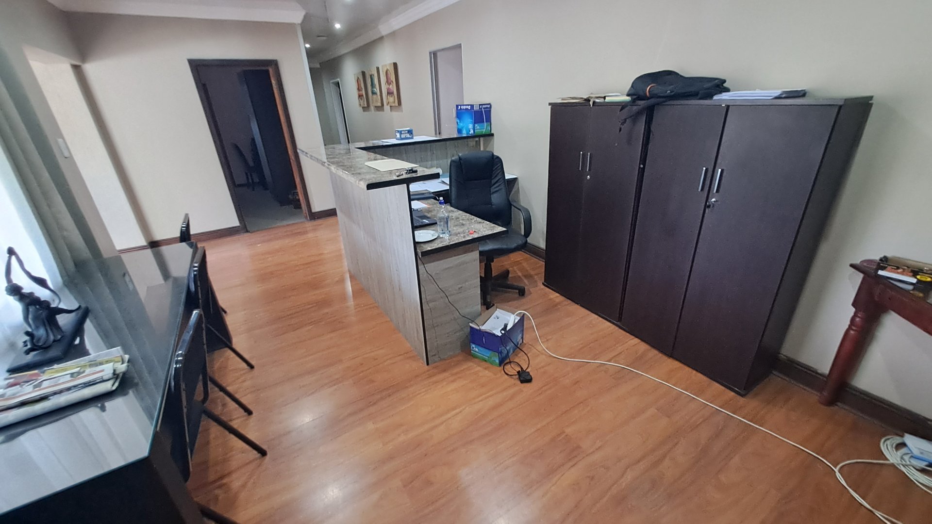 Previously a guesthouse and now used for staff accommodation, the property features a small foyer, five spacious rooms with en-suite bathrooms, three living/dining spaces, and a huge kitchen with ample built-in cupboards. The tiled floors, neat ceilings, and painted walls make this property well-maintained and ready for your new ownership.