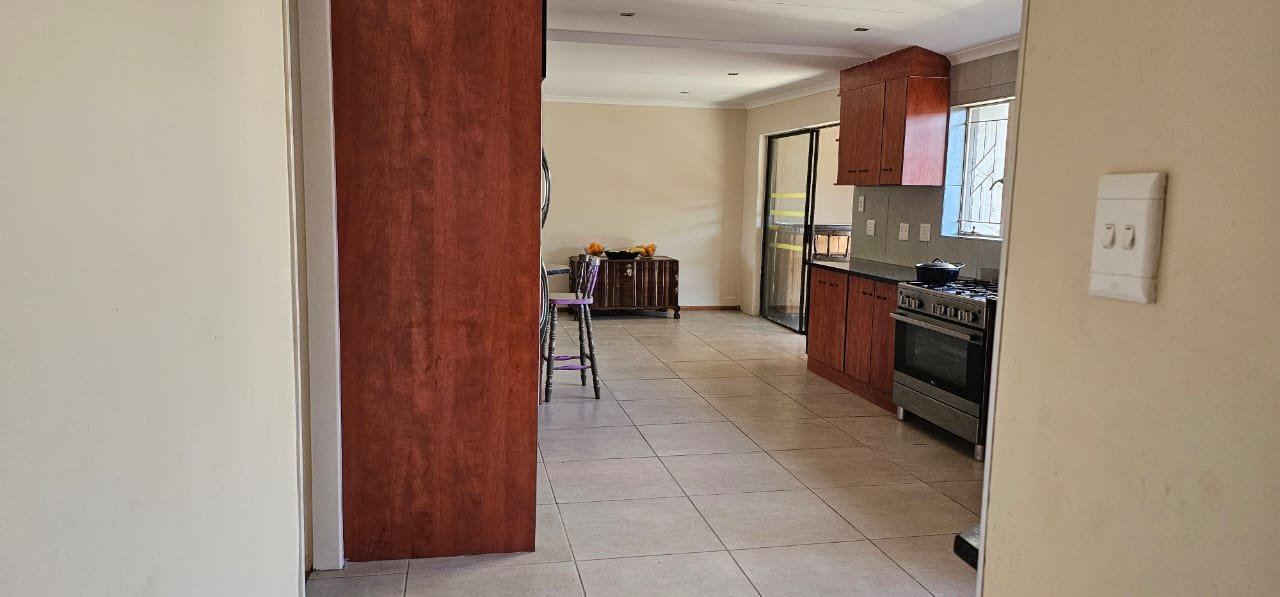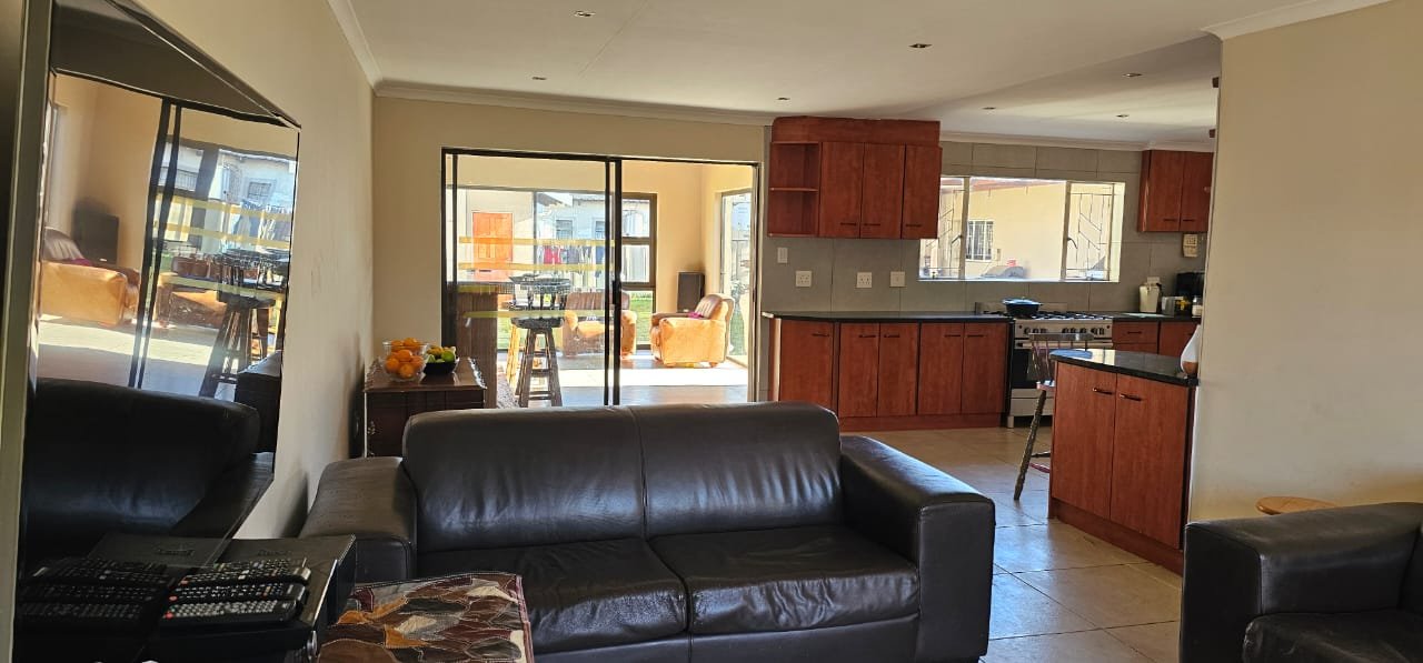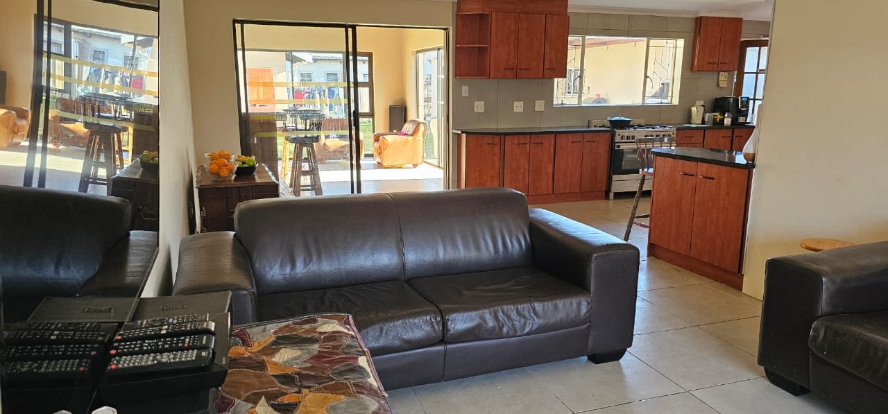Entertainment area with a built-in braai in the house with a sliding door to Garden.