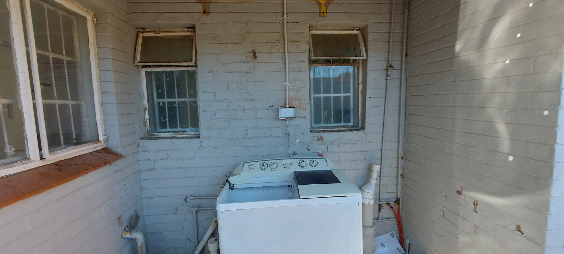 Laundry facilities, including a washing machine and washing lines, are conveniently available on-site.