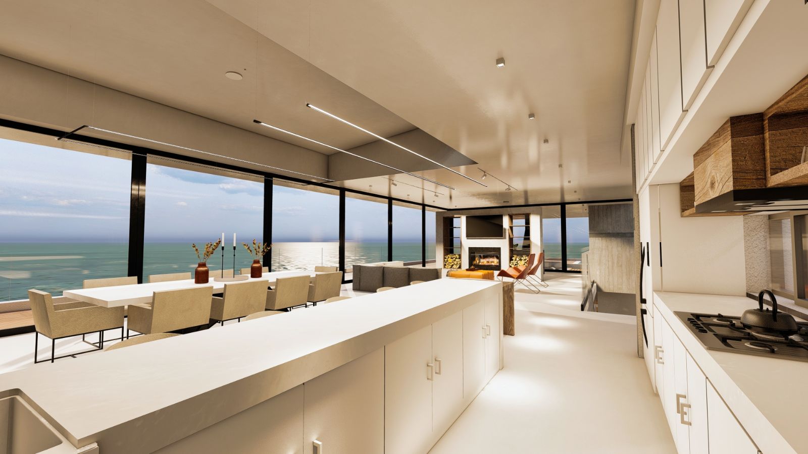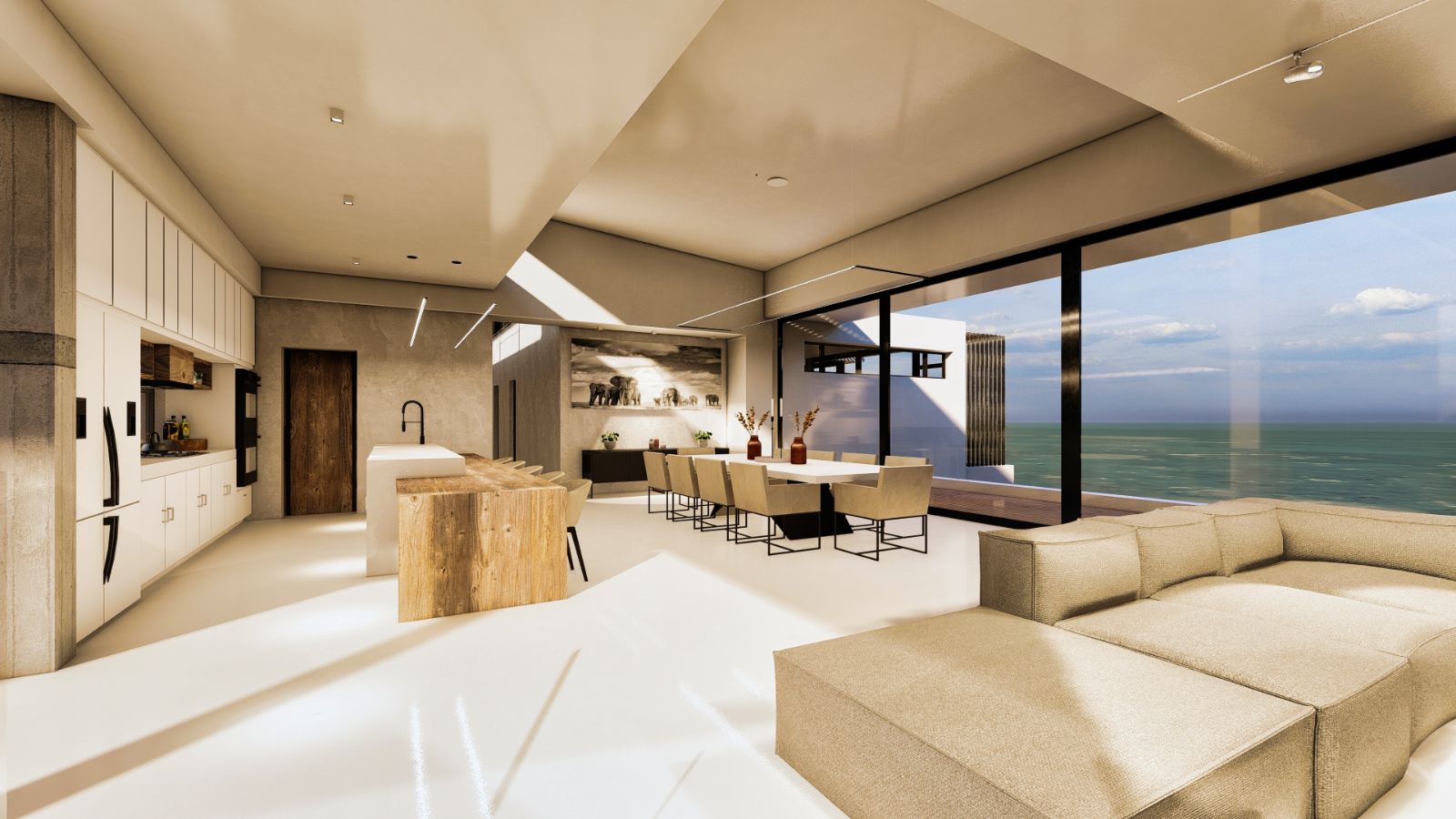 The estate also features a scenic deck, perfect for spending quality family time or watching whales and dolphins play in the waves below. Residents have access to a private beach, making this a truly unique and serene coastal living experience.