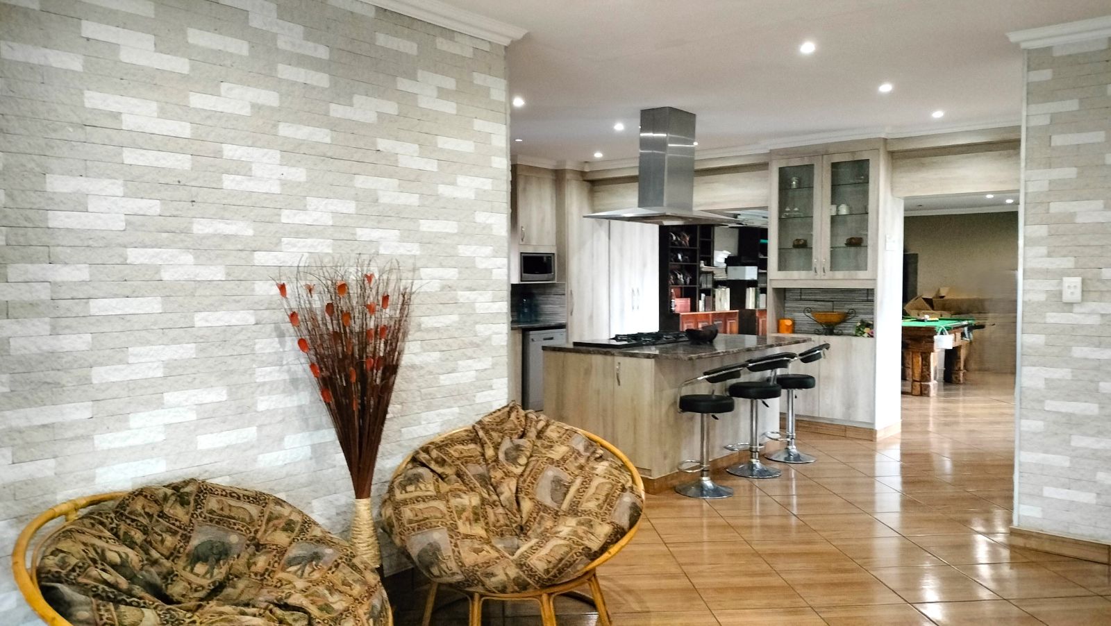 Step inside to discover a light-filled open-plan layout where the lounge, and sleek contemporary kitchen flow seamlessly together. The kitchen features modern finishes, ample workspace, and connects directly to an impressive entertainment area complete with a built-in bar and indoor braai — ideal for hosting family and friends all year round. Stylish stone cladding adds a striking visual feature to the living space, creating a warm and elegant ambiance. A guest toilet and a private study further enhance the practicality of the home.