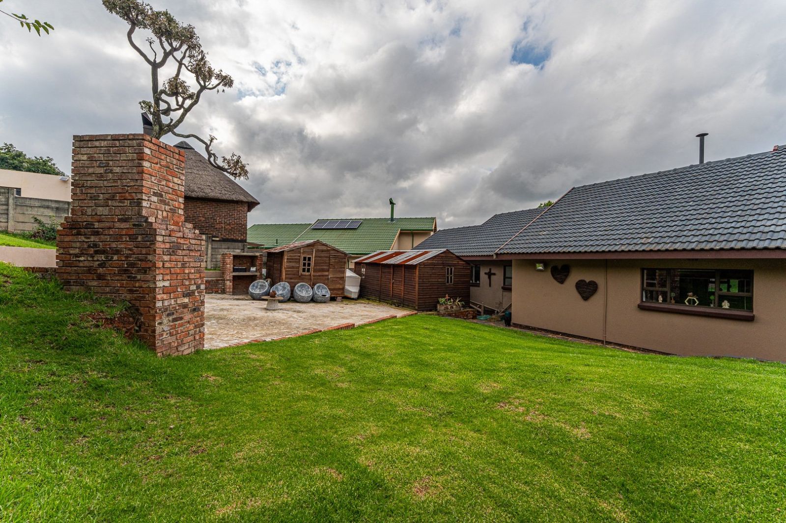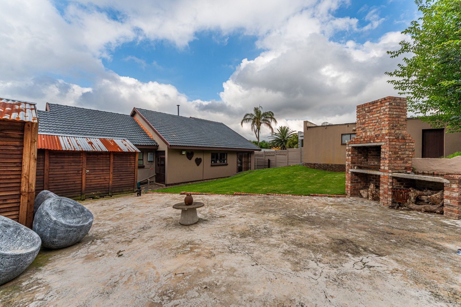The outdoor area is ideal for those who love to entertain or families with children. A dedicated braai area and boma create a warm, social atmosphere, while the spacious garden offers plenty of room for kids to play. Two Wendy houses provide additional storage or hobby space, and there is an outside room with an adjoining toilet, perfect for staff or extra accommodation. A welcoming patio completes the home and adds the perfect spot to unwind and enjoy the peaceful surroundings.