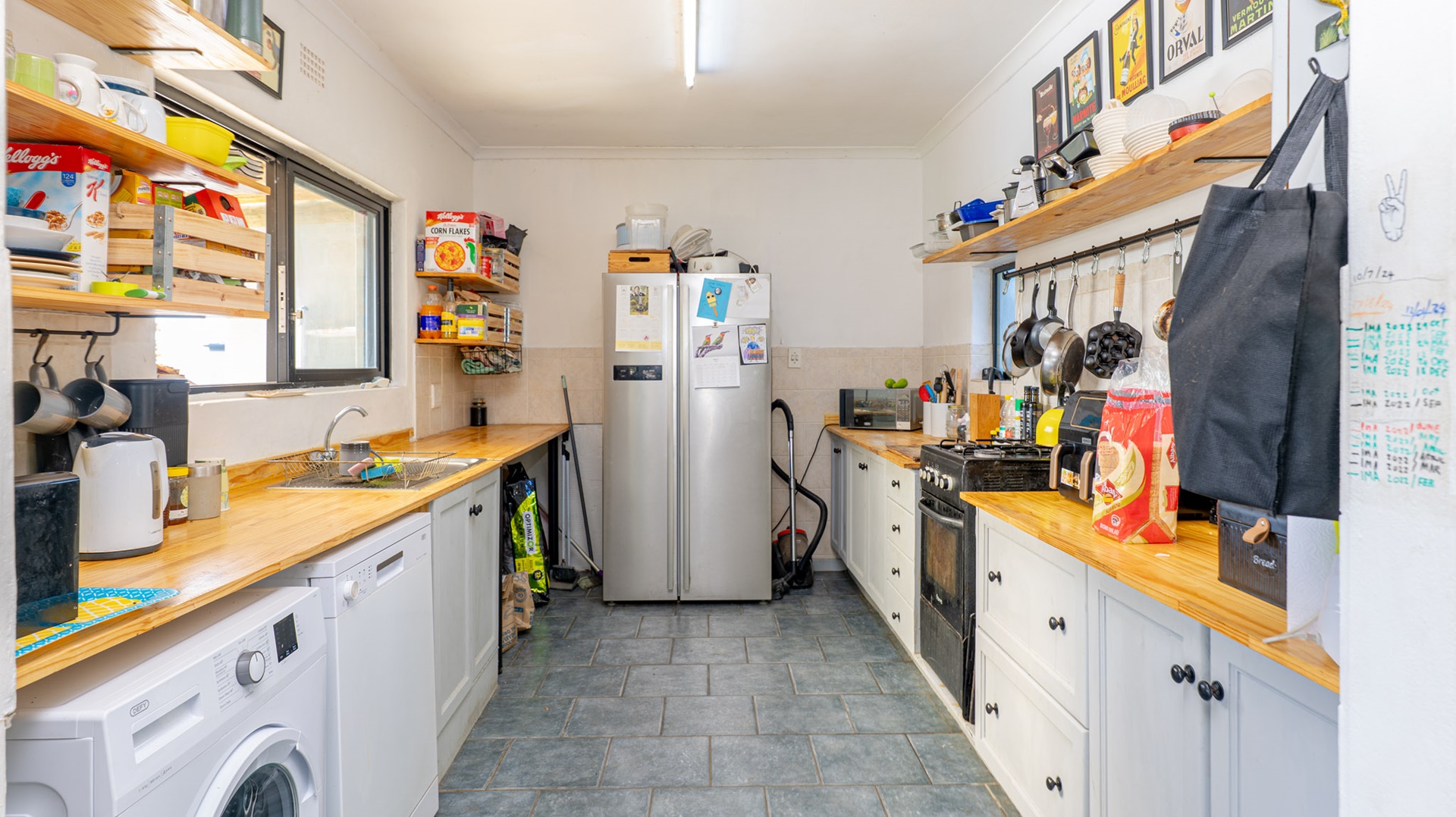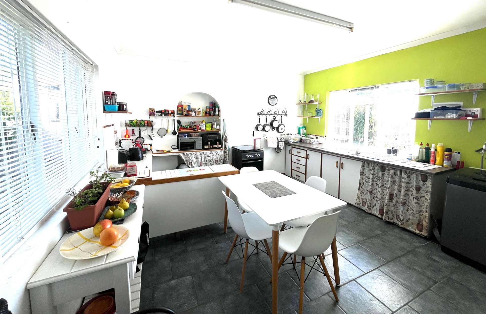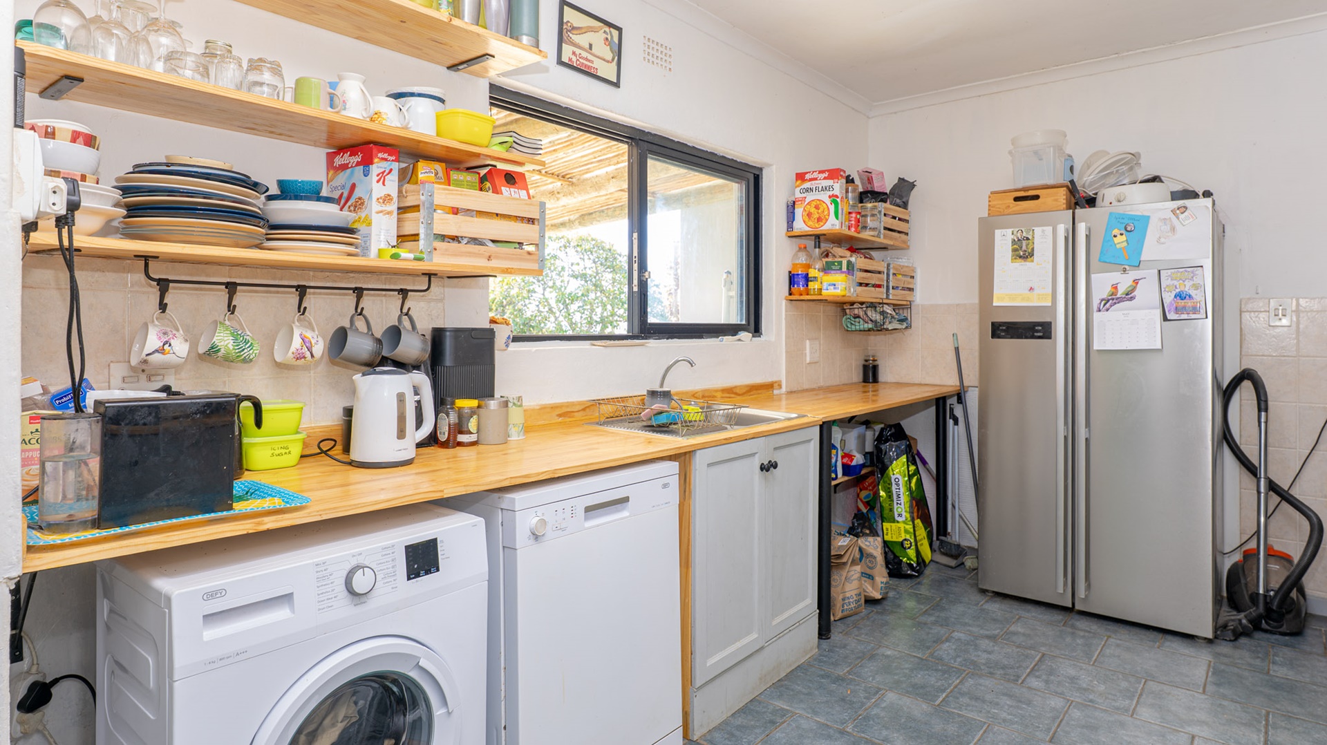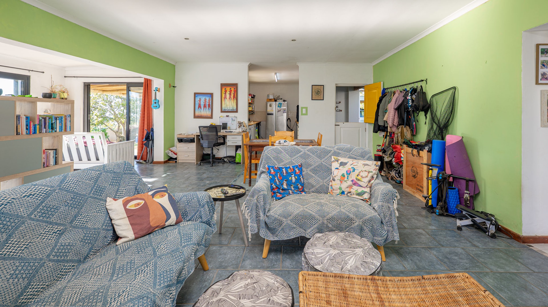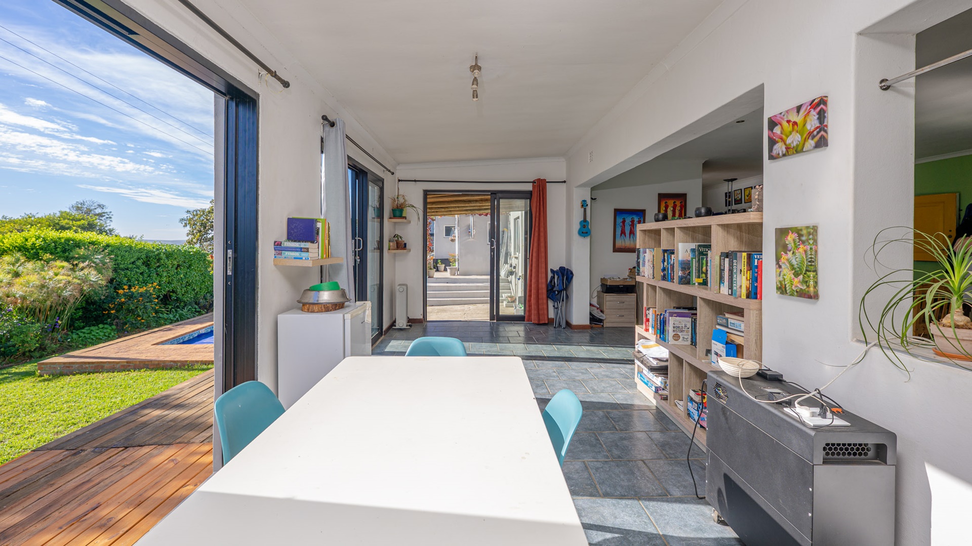 Step into a light-filled open-plan lounge, kitchen and dining area, ideal for moments of quiet relaxation and socialising. A central fireplace offers a comforting focal point, promising cozy winter nights. For those who love to entertain, the integrated indoor braai with Dover stove is a standout feature, perfect for creating memorable moments with friends and family.