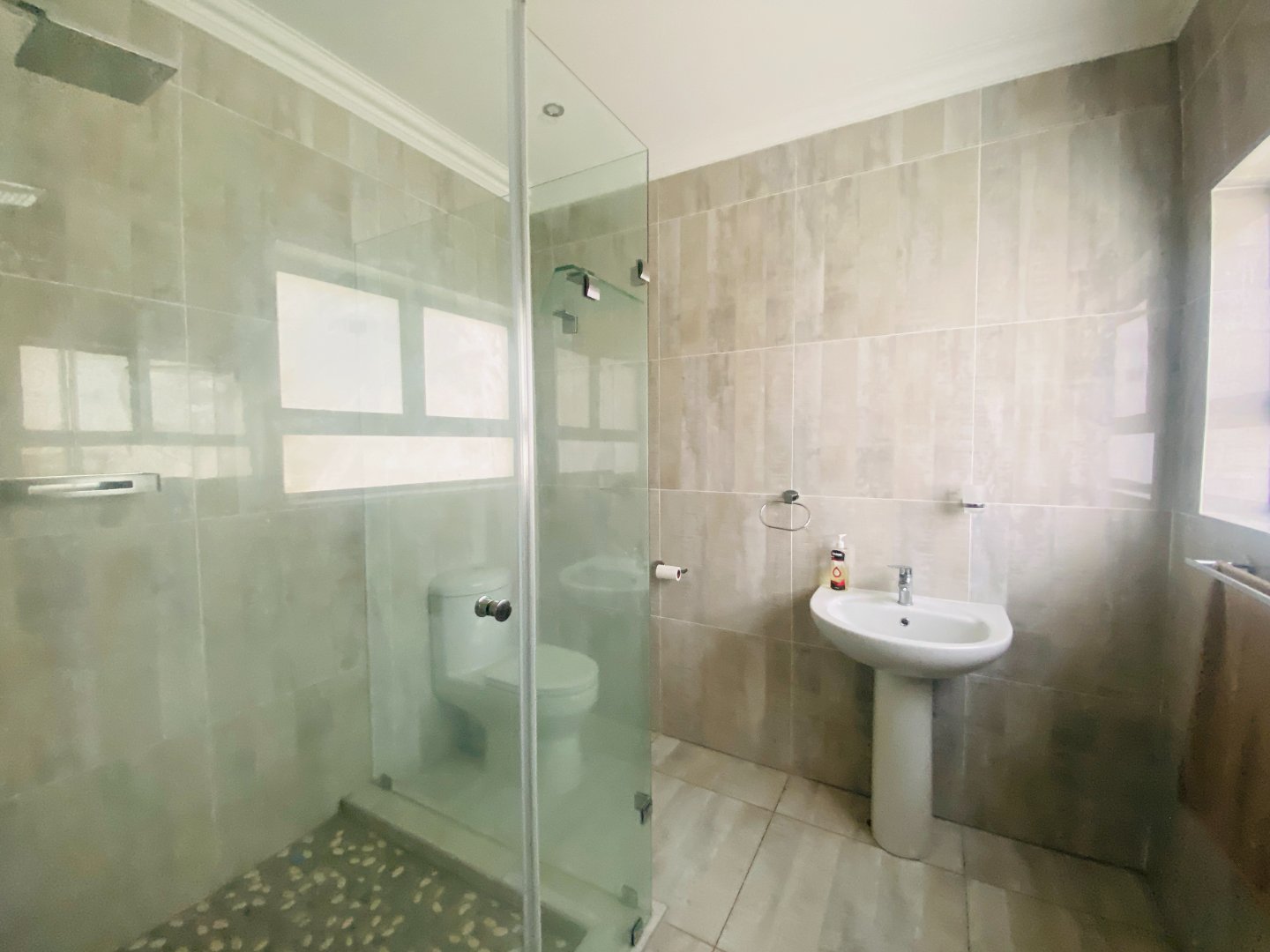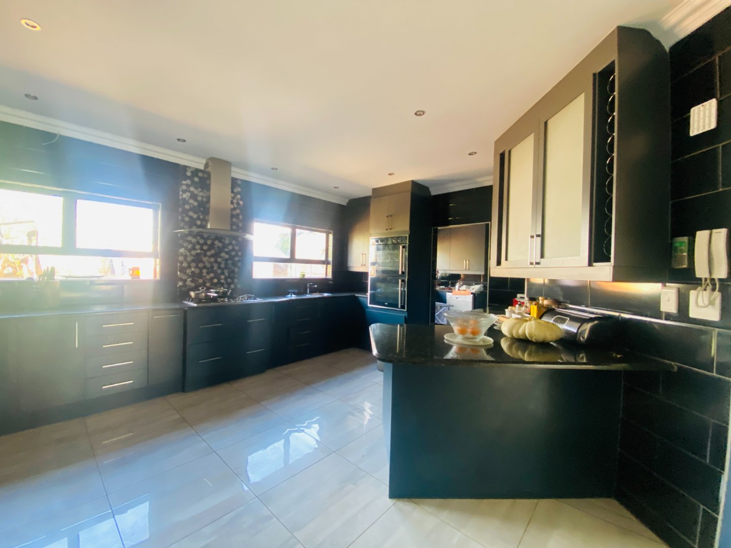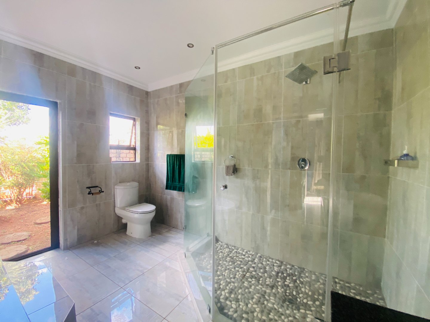 The main house features 5 spacious bedrooms, including 9 en-suite bathrooms (with 1 full bathroom and the remainder equipped with a shower, toilet, and basin). A bright and welcoming entrance hall leads into an elegant lounge and dining area, complete with a gas fireplace—ideal for entertaining guests year-round. The open-plan layout flows seamlessly into a large kitchen, fitted with built-in cupboards, a gas stove, an eye-level oven, a separate scullery, and a convenient power room.