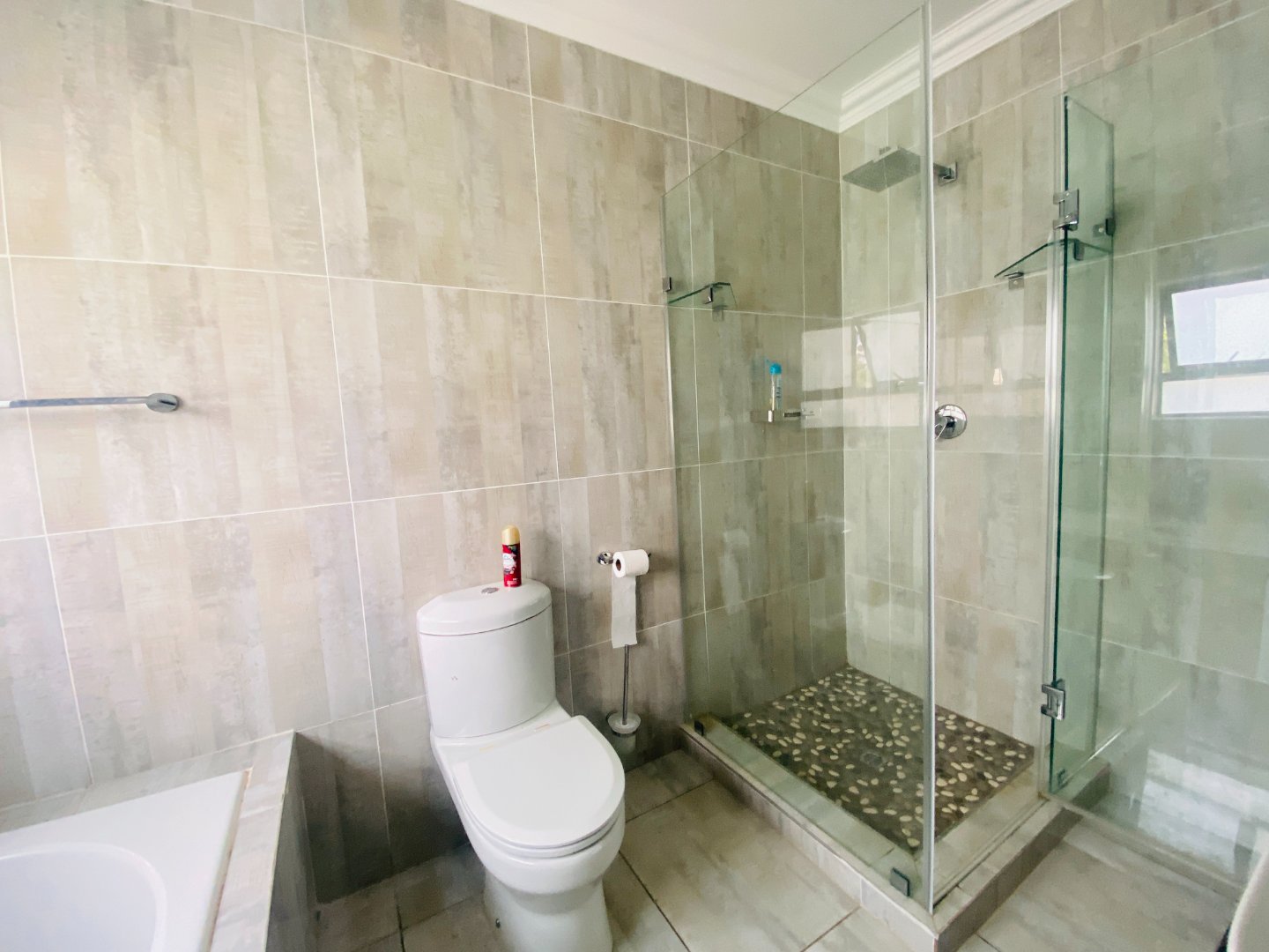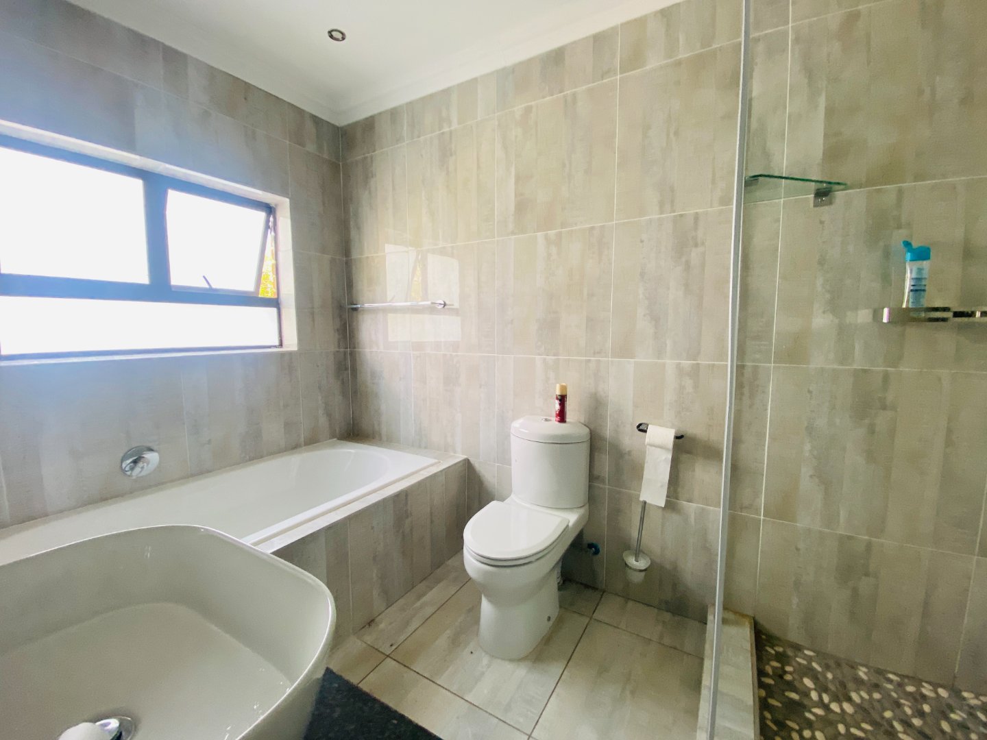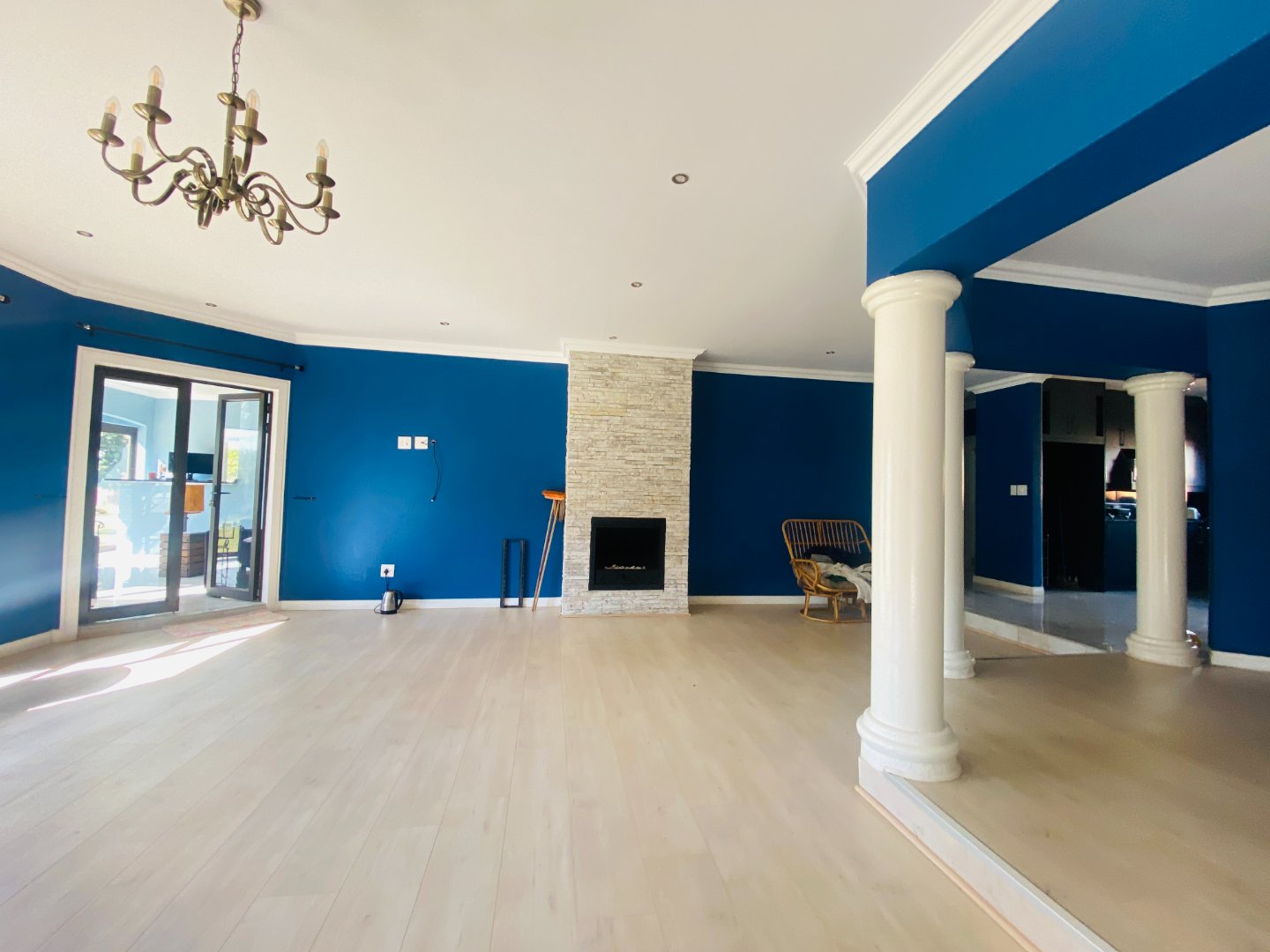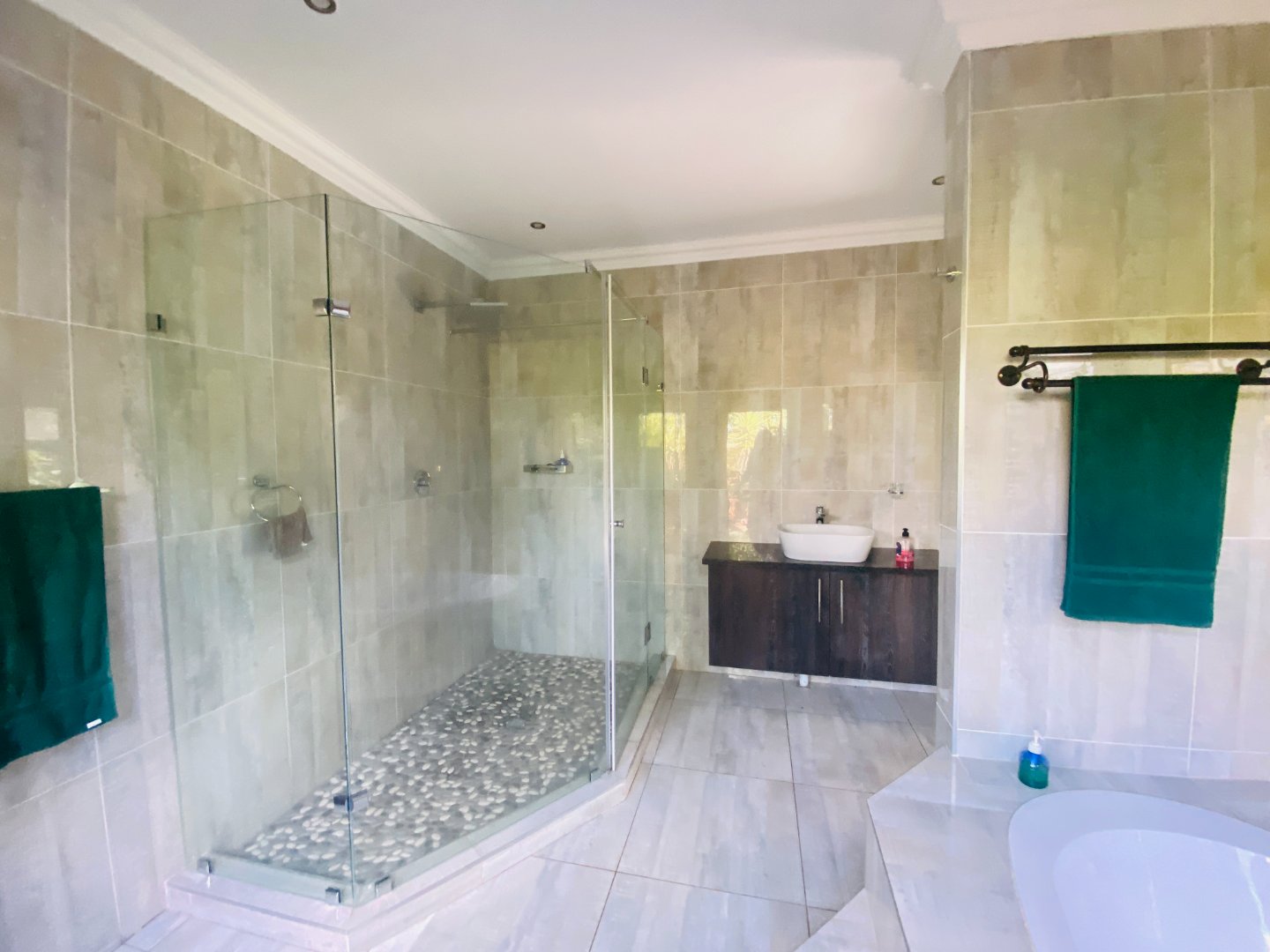 The main house features 5 spacious bedrooms, including 9 en-suite bathrooms (with 1 full bathroom and the remainder equipped with a shower, toilet, and basin). A bright and welcoming entrance hall leads into an elegant lounge and dining area, complete with a gas fireplace—ideal for entertaining guests year-round. The open-plan layout flows seamlessly into a large kitchen, fitted with built-in cupboards, a gas stove, an eye-level oven, a separate scullery, and a convenient power room.