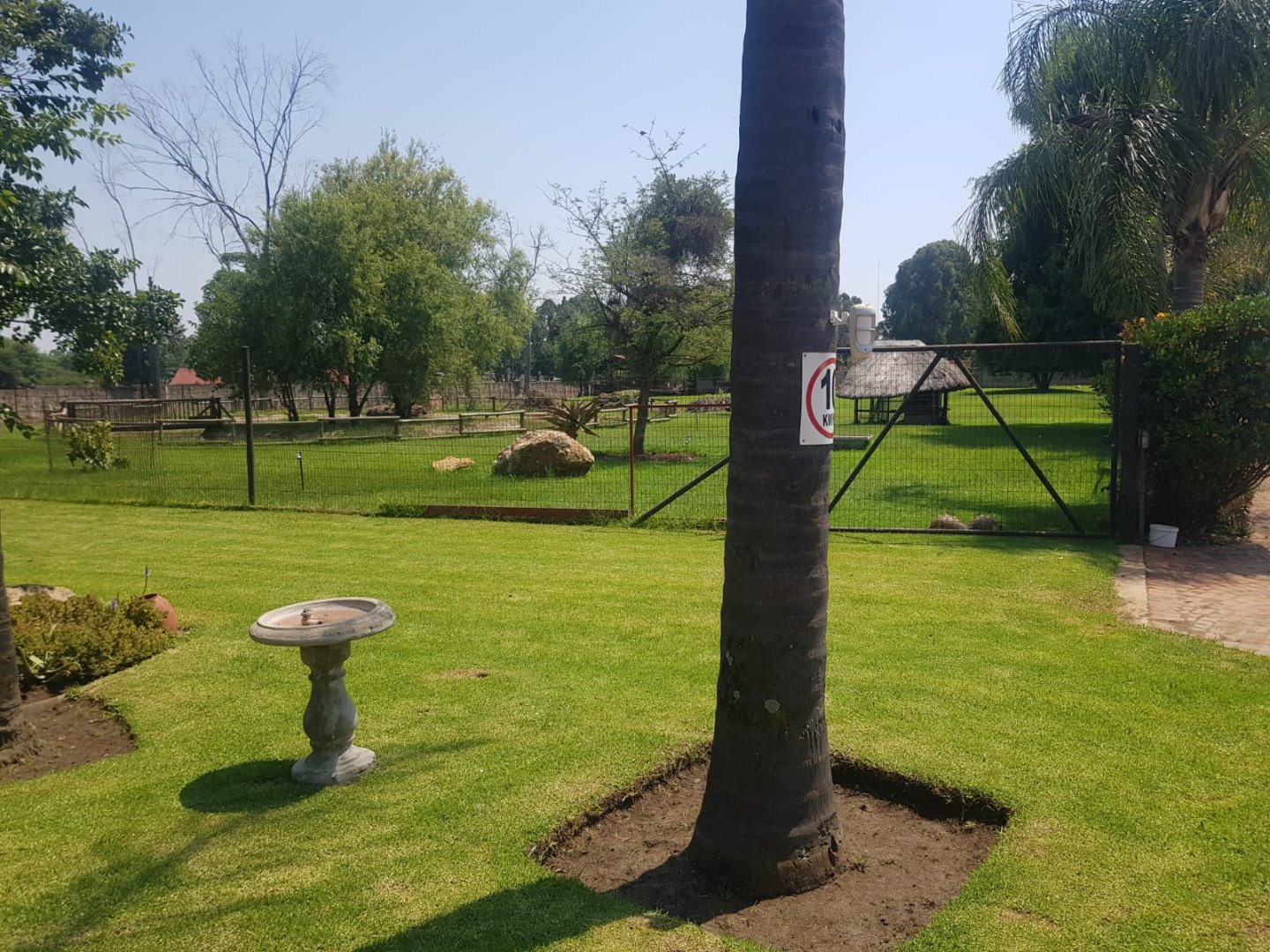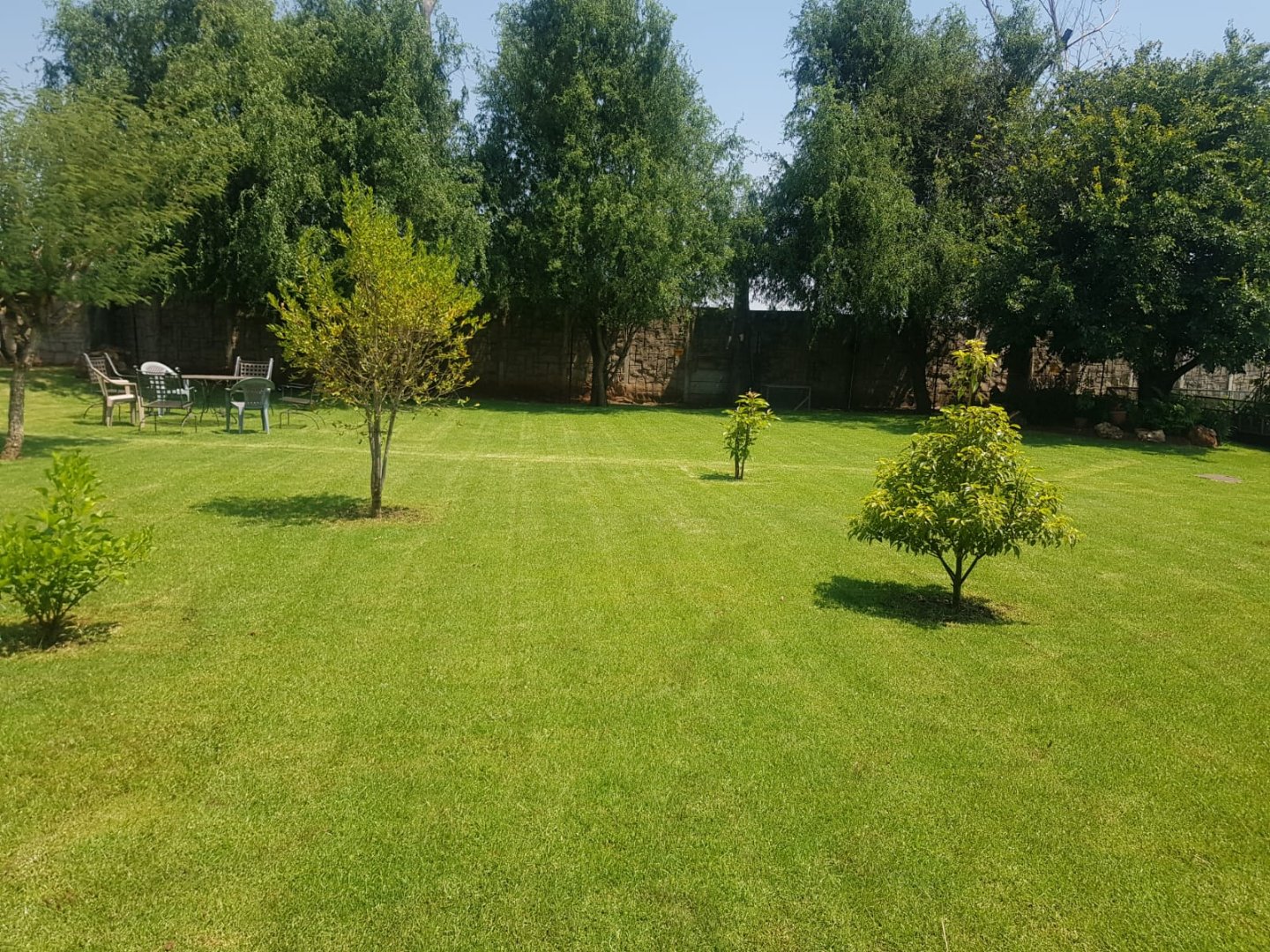 Manicured irrigated garden, bird aviary, and fenced section for small livestock or pets