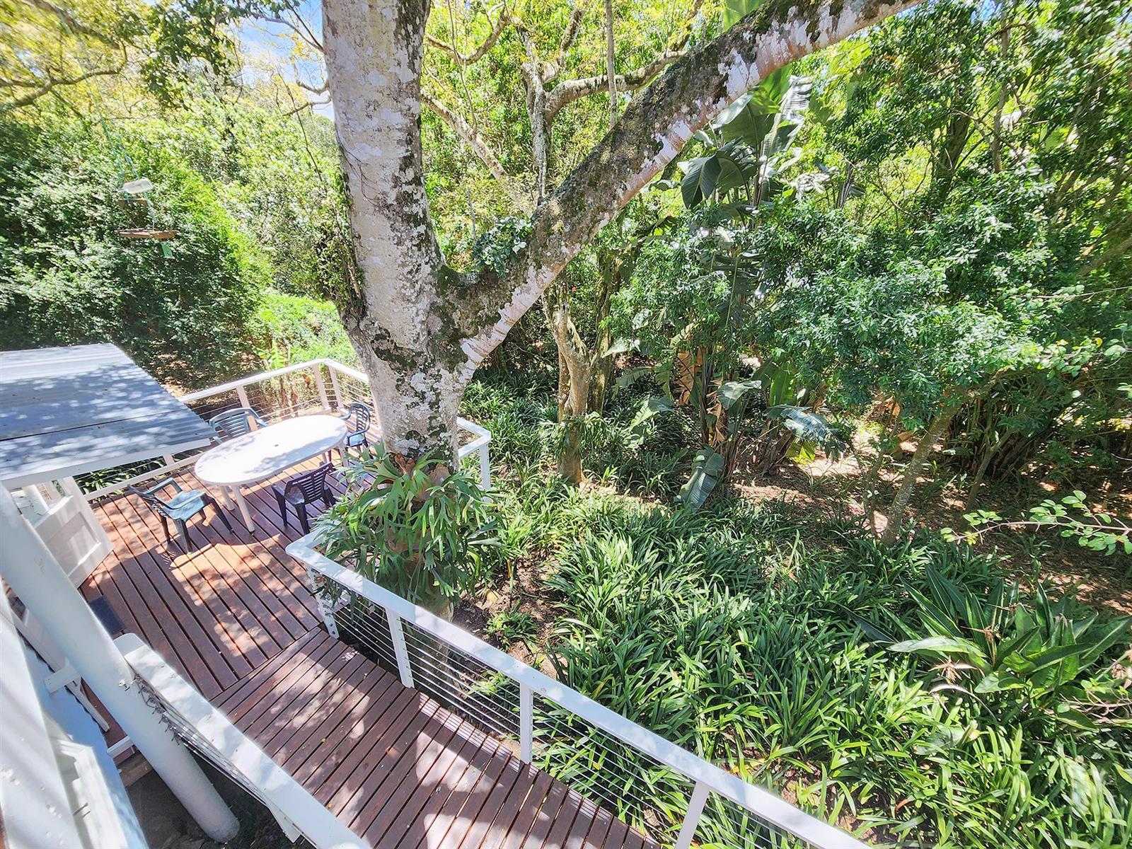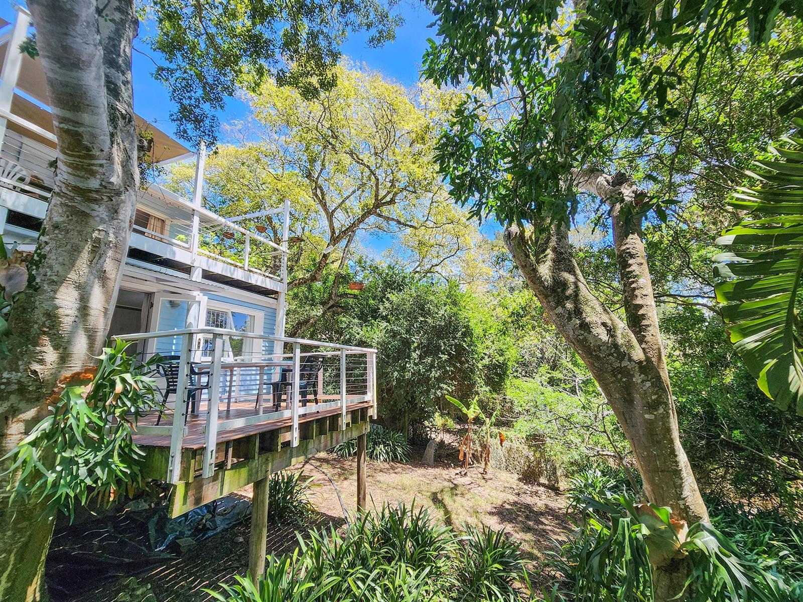 Exceptional natural setting – Nestled between huge trees with a lush garden, amazing birdlife, roaming bushbuck, offering rare tranquillity and privacy.