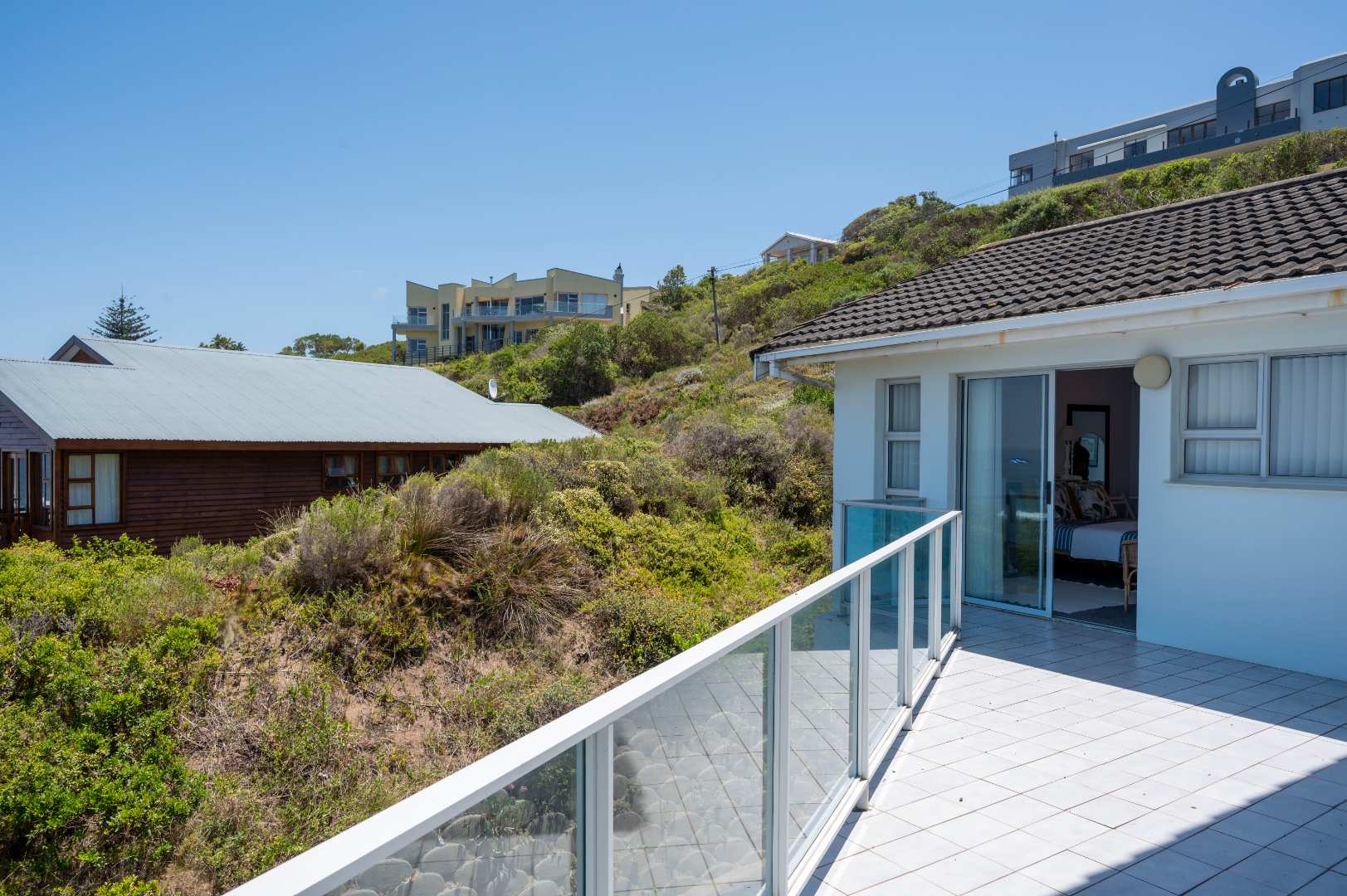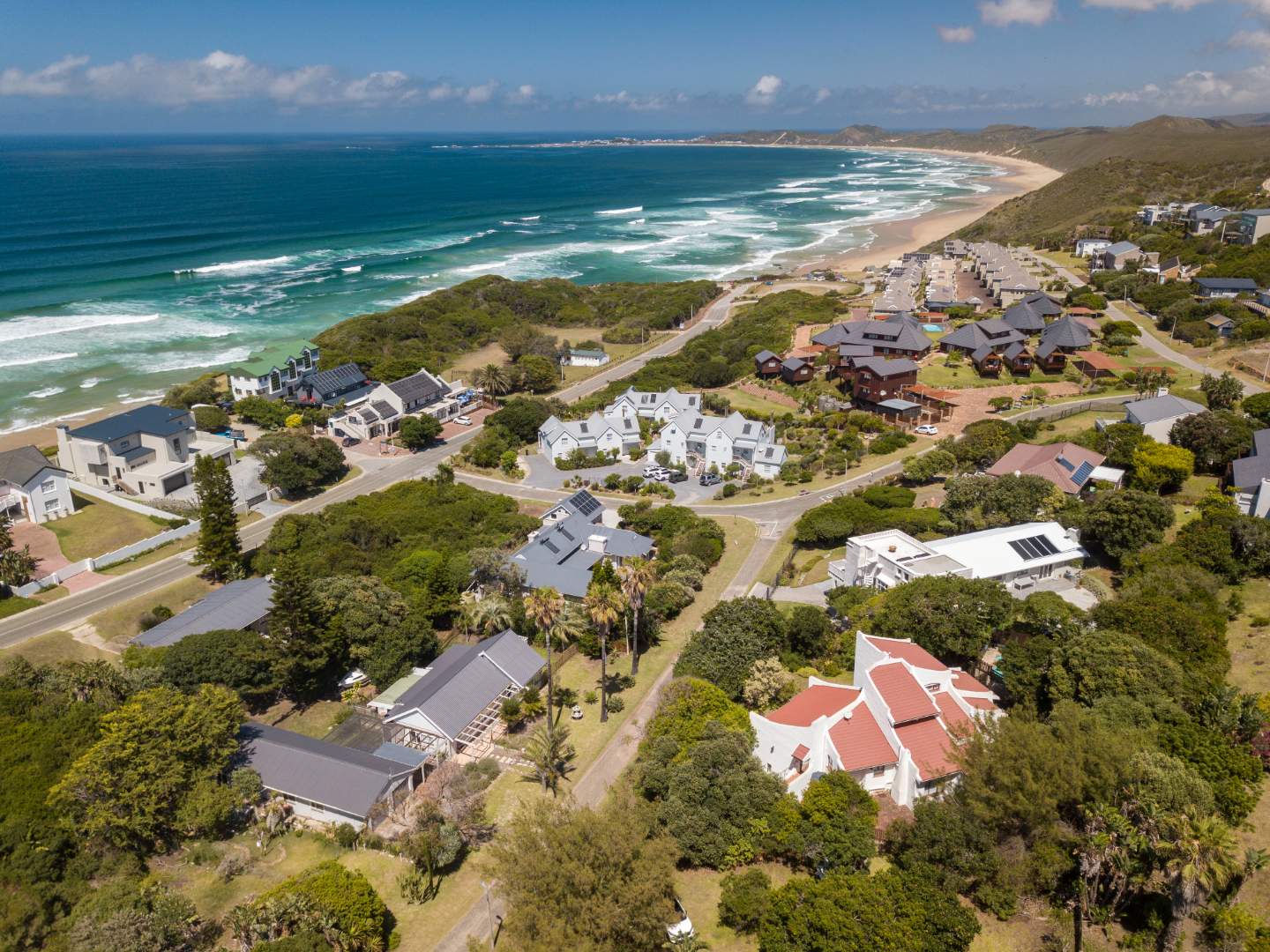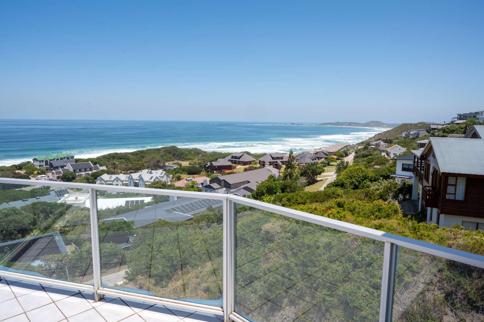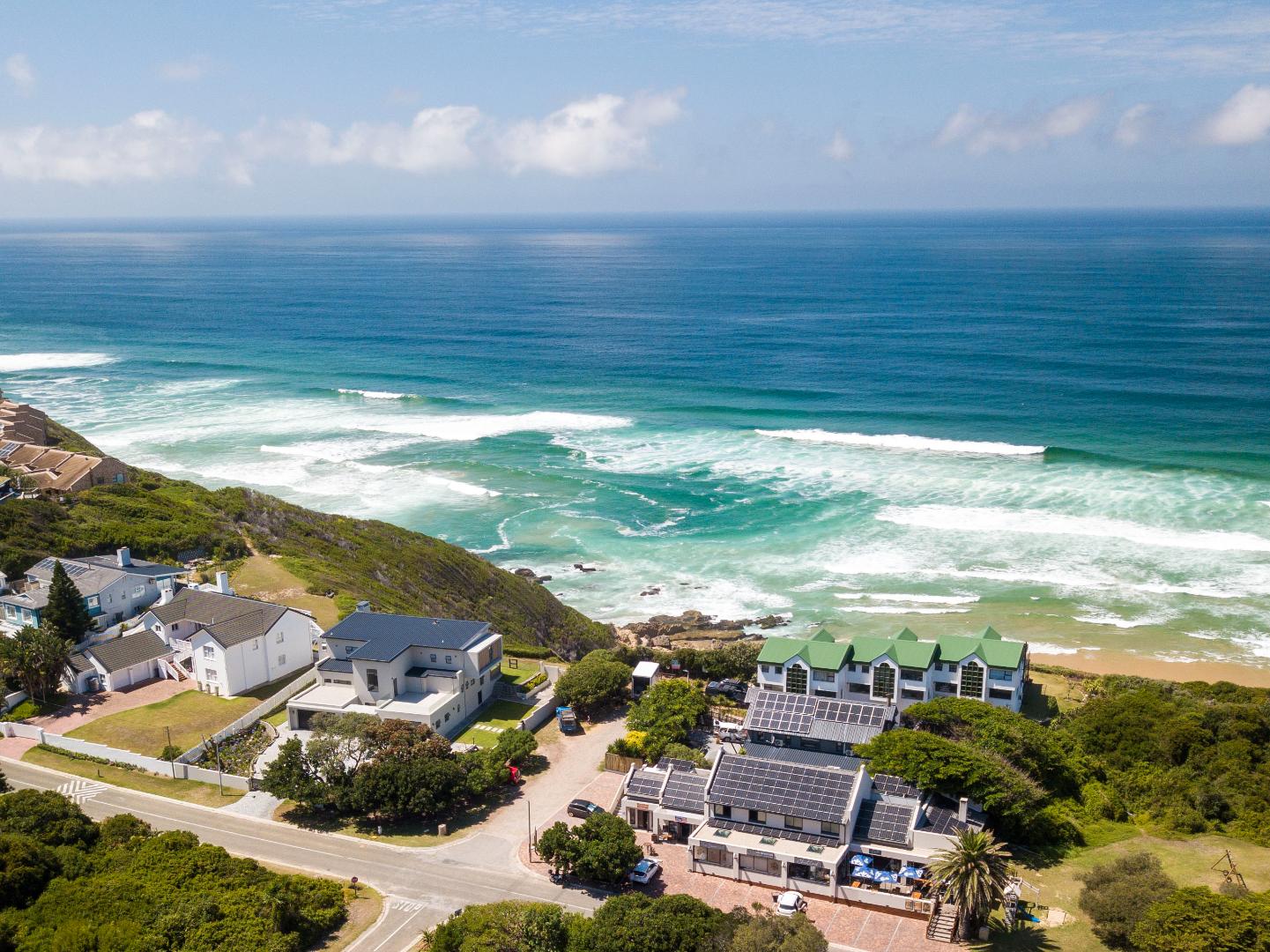 Two Spacious open-plan lounges and dining areas opens onto expansive north facing wooden decks perfectly suited for entertaining and well protected from prevailing southern winds. Spacious kitchens leading to a separate enclosed braai room with stacking doors overlooking the Indian ocean where whales are regularly spotted between May and November each year. The main bedroom are is en-suite, lots of cupboard space with a separate toilet and a private balcony.