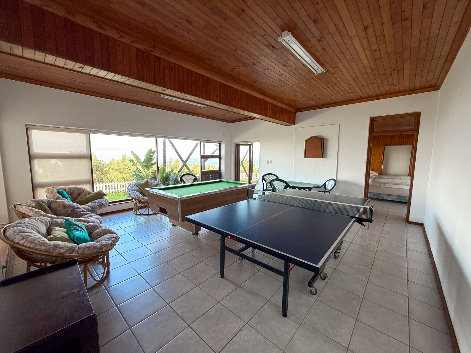 Downstairs is a large one-bedroom flatlet with its own entrance. It has a lounge (currently used as a games room with a pool table and table tennis), a kitchenette, a bathroom, and a separate toilet. It would be perfect for guests, teenagers, or as a rental for extra income.