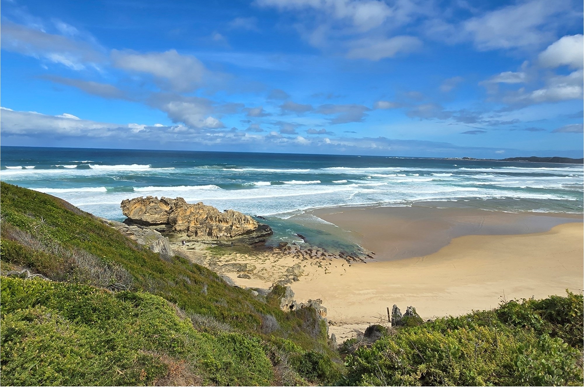 Framed by a rich tapestry of indigenous fynbos and dune shrubbery, this unique setting invites peaceful living immersed in nature. Elevated vantage points reveal sweeping, uninterrupted views across the bay, where whales and dolphins can often be seen dancing in the surf—nature’s theatre, right on your doorstep.
