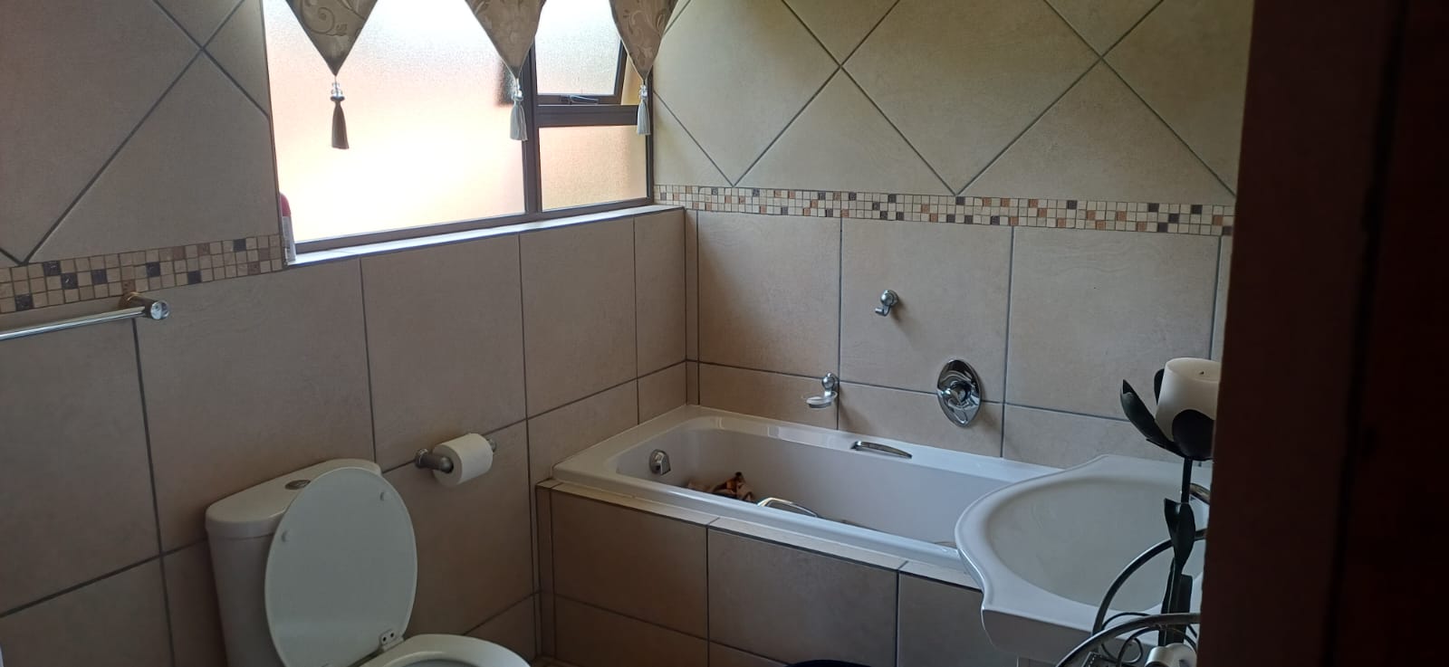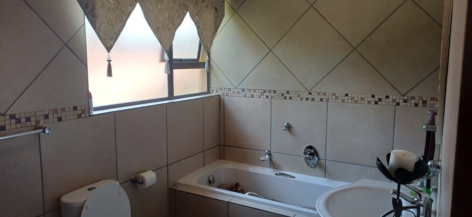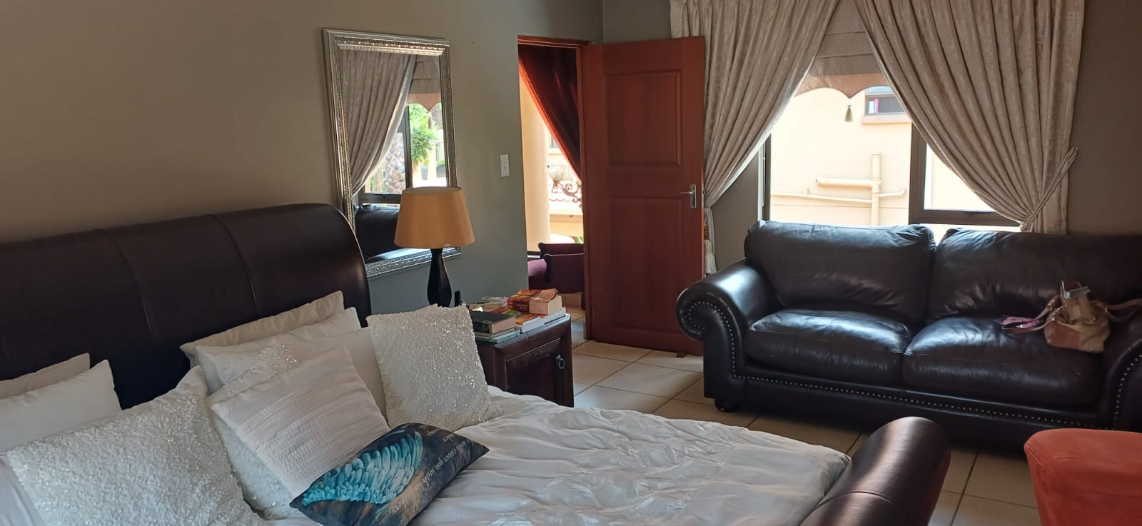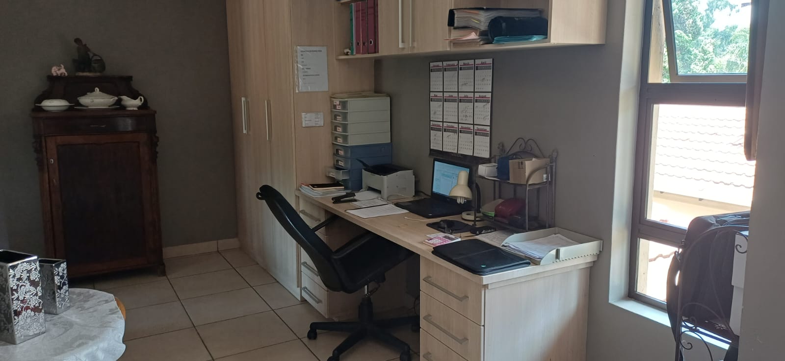 All three bedrooms are tiled, ensuring easy maintenance, modern appeal, and durability. Each room includes built-in cupboards, providing more than enough storage space for clothing, personal belongings, and linens.