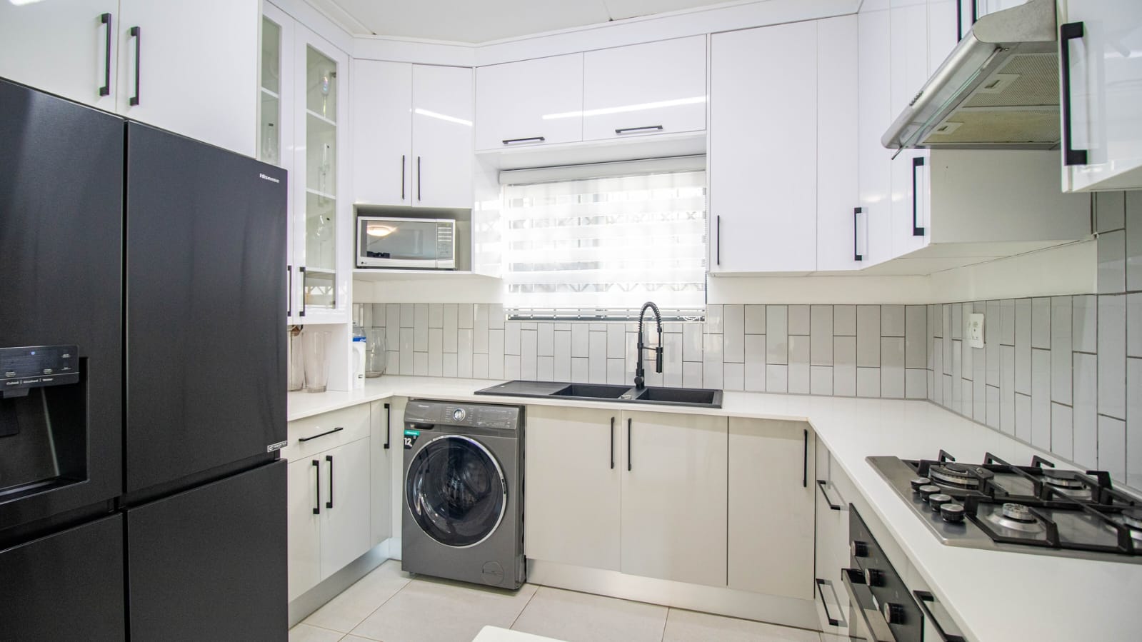 - Newly renovated kitchen with breakfast counter, gas stove hob, and under-counter oven