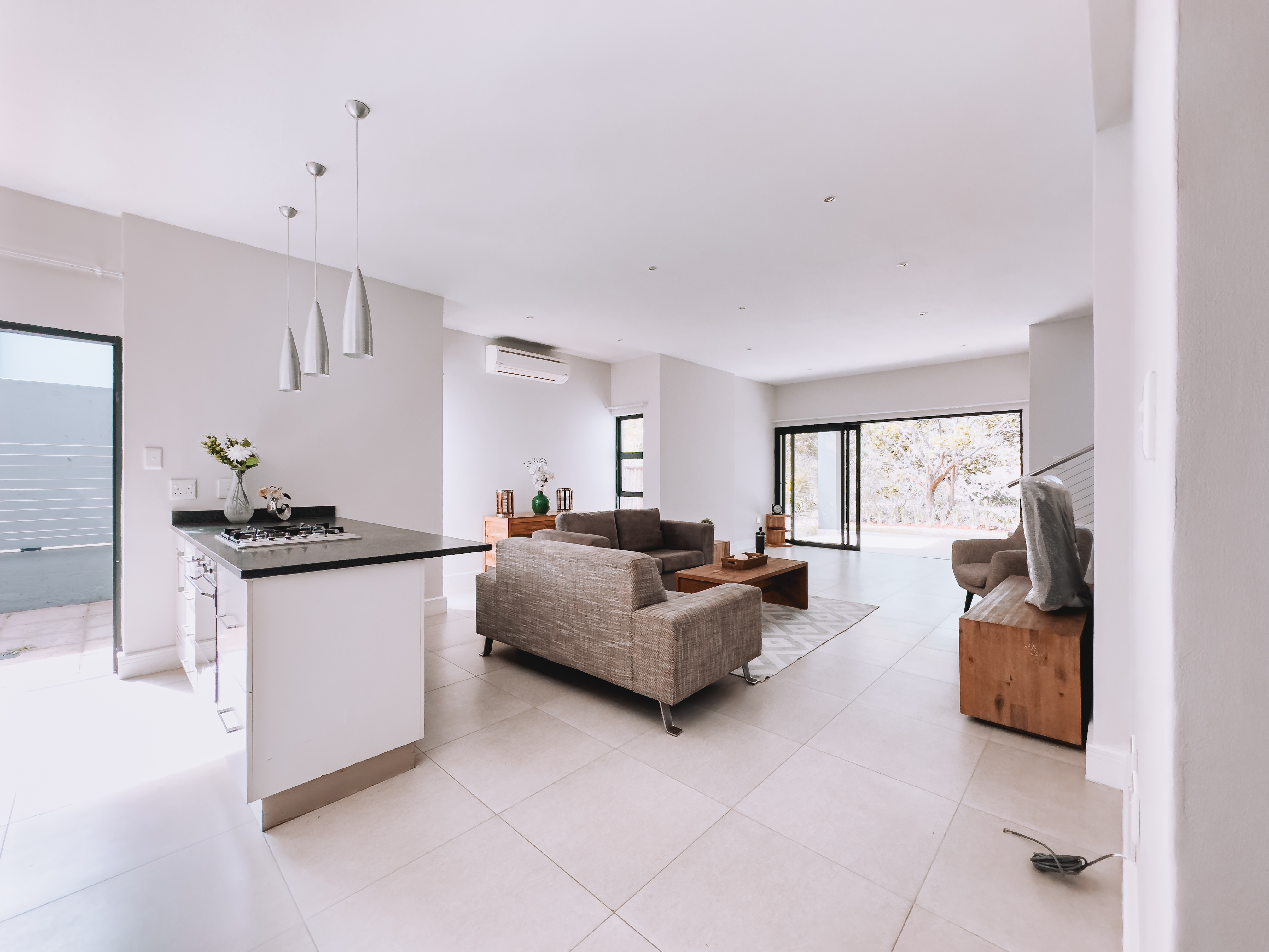 Nestled in the tranquil Weaver Land enclave of Brettenwood Eco Estate, this beautifully designed 3-bedroom home offers the perfect blend of luxury, comfort, and estate living. The open-plan living area flows effortlessly onto a covered patio overlooking lush landscaped gardens — ideal for relaxed outdoor entertaining. A sleek, contemporary kitchen with stone countertops, quality fitted appliances, and ample cabinetry anchors the heart of the home.