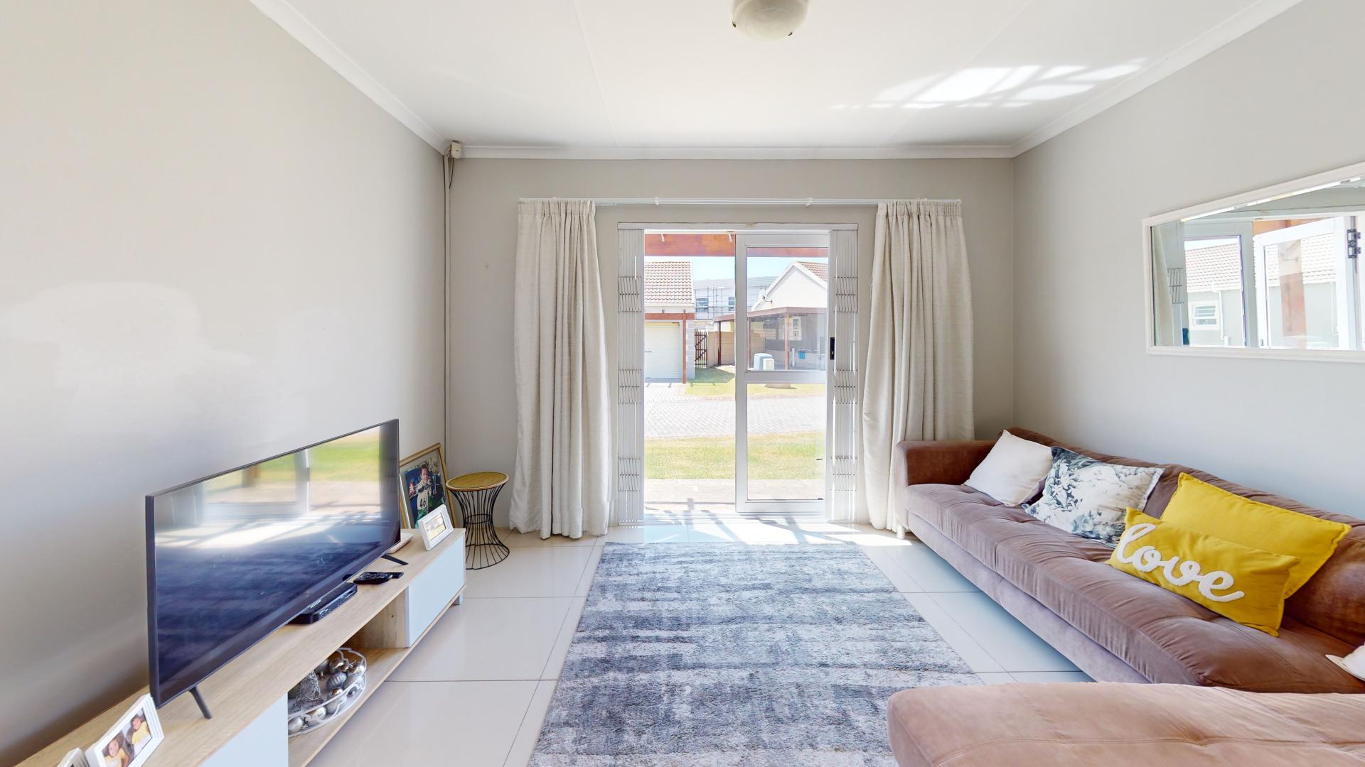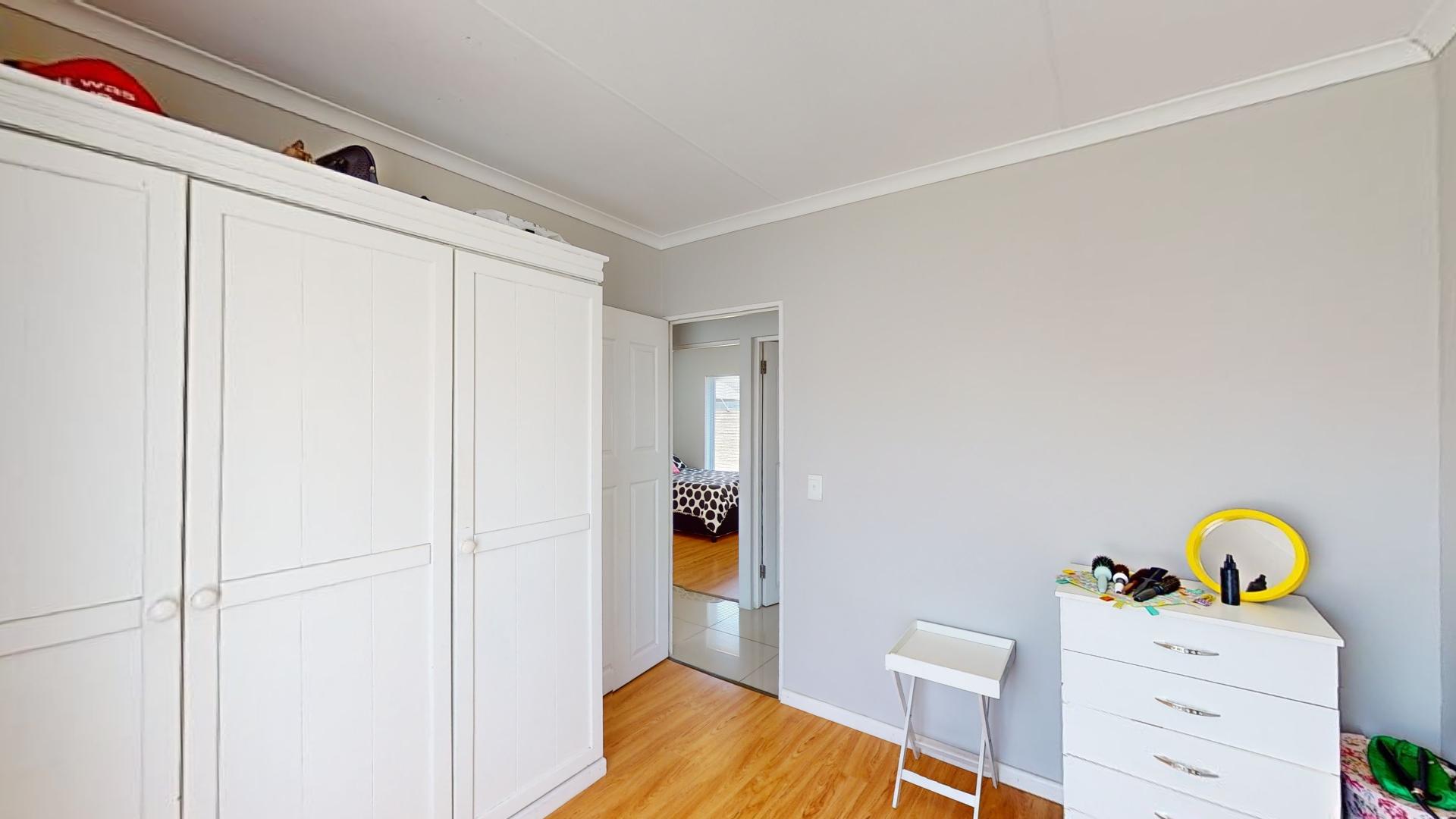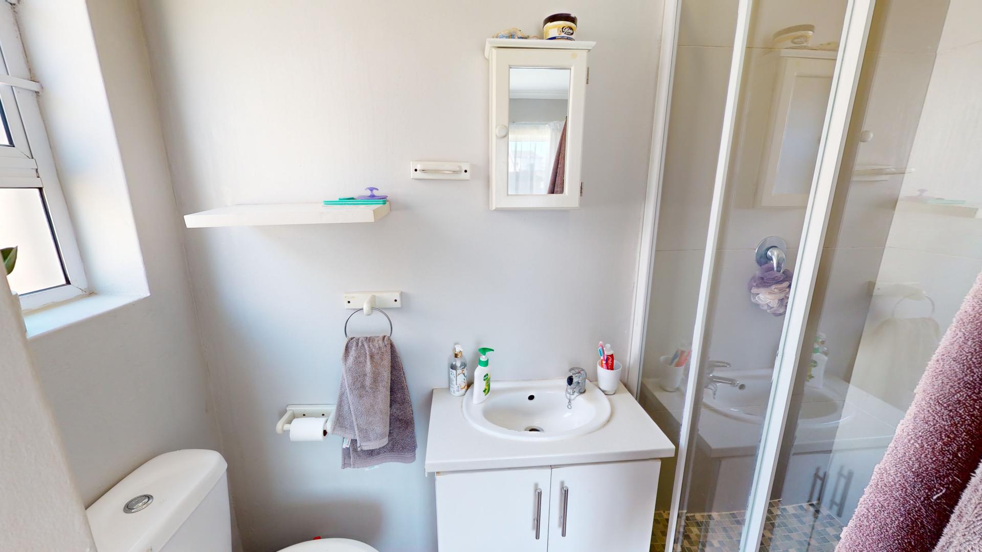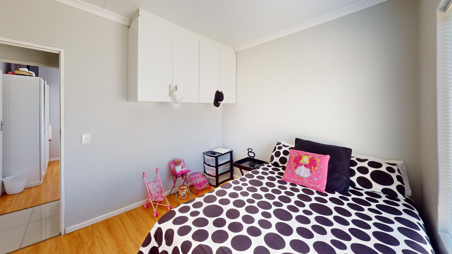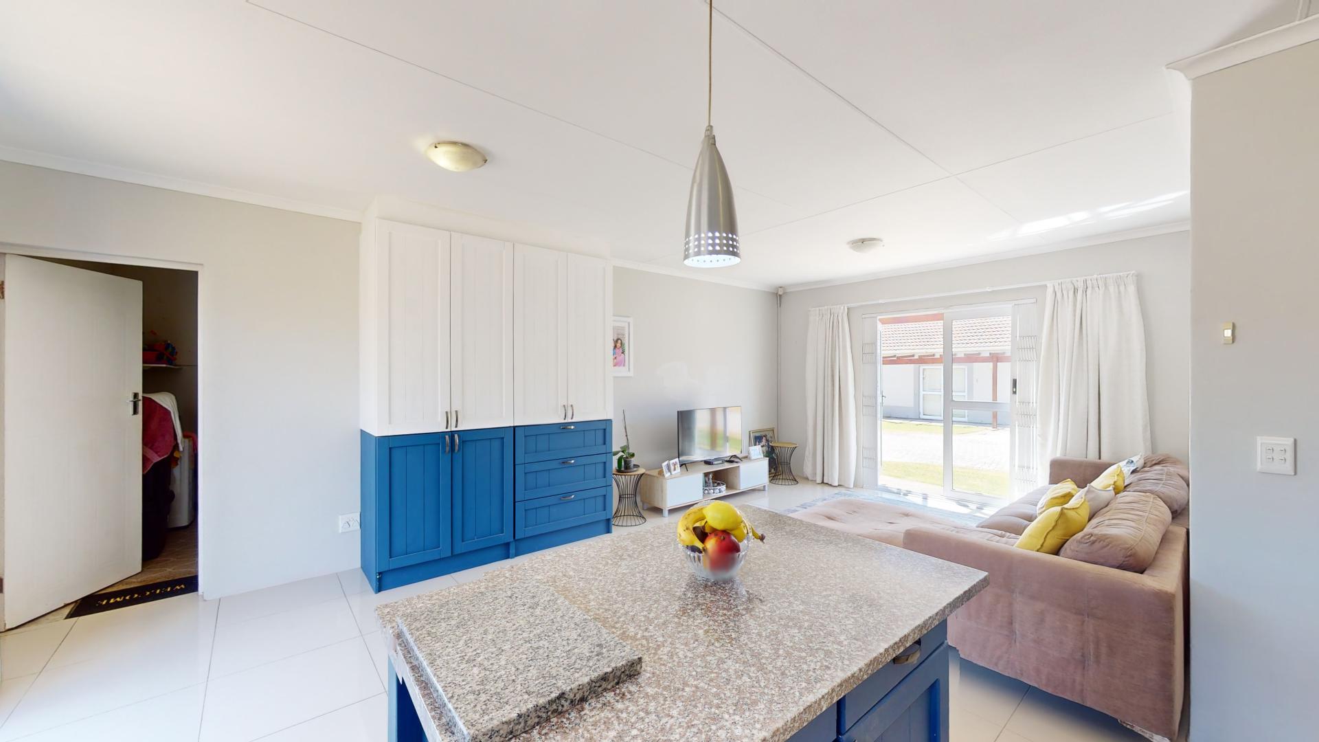 The spacious lounge is open plan to dining area and kitchen. The kitchen is fitted with modern cupboards, granite tops, electric oven, hob and extractor. The unit is fitted with aluminum windows throughout, as well as tiled floors. The aluminum sliding doors from lounge and dining area, allow for an easy flow from the entrance to the enclosed, pet friendly back garden.