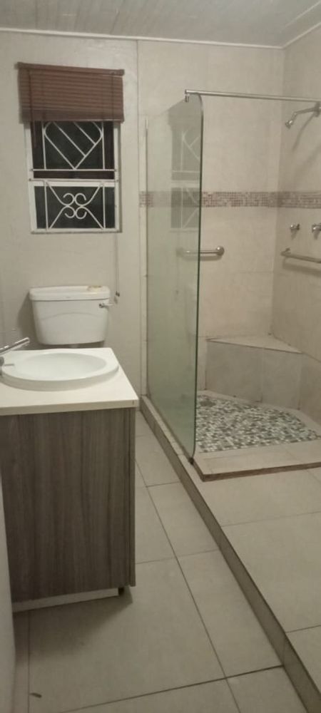 Bachelor Pad: A large bedroom with a modern en-suite featuring a walk-in shower, hand basin, and toilet, fitted with aircon to provide comfort all year round, perfectly suited for a tenant or extended family member