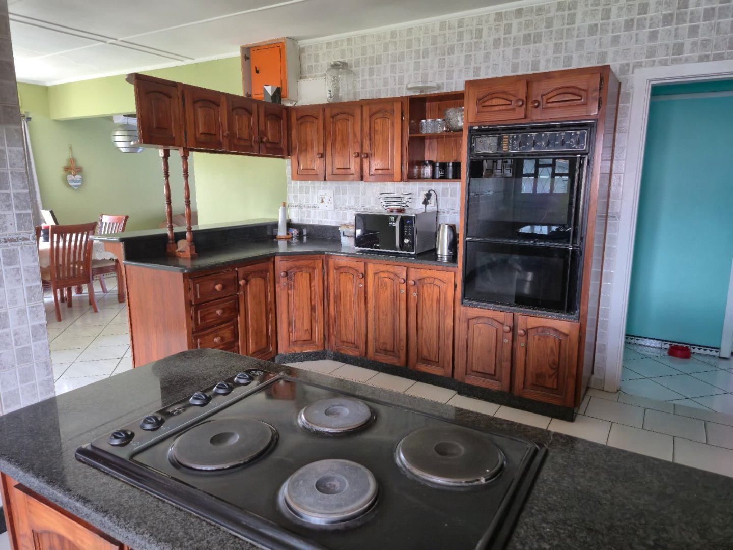 Step into a spacious open-plan *lounge and dining area, beautifully lit with **downlights* and a *statement chandelier* that adds elegance to the space. The *modern kitchen* features *oak-finished built-in cupboards*, a fitted stove, and ample counter space – ideal for family meals or entertaining guests.