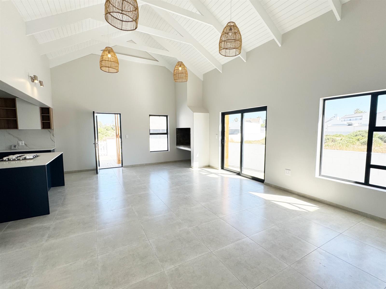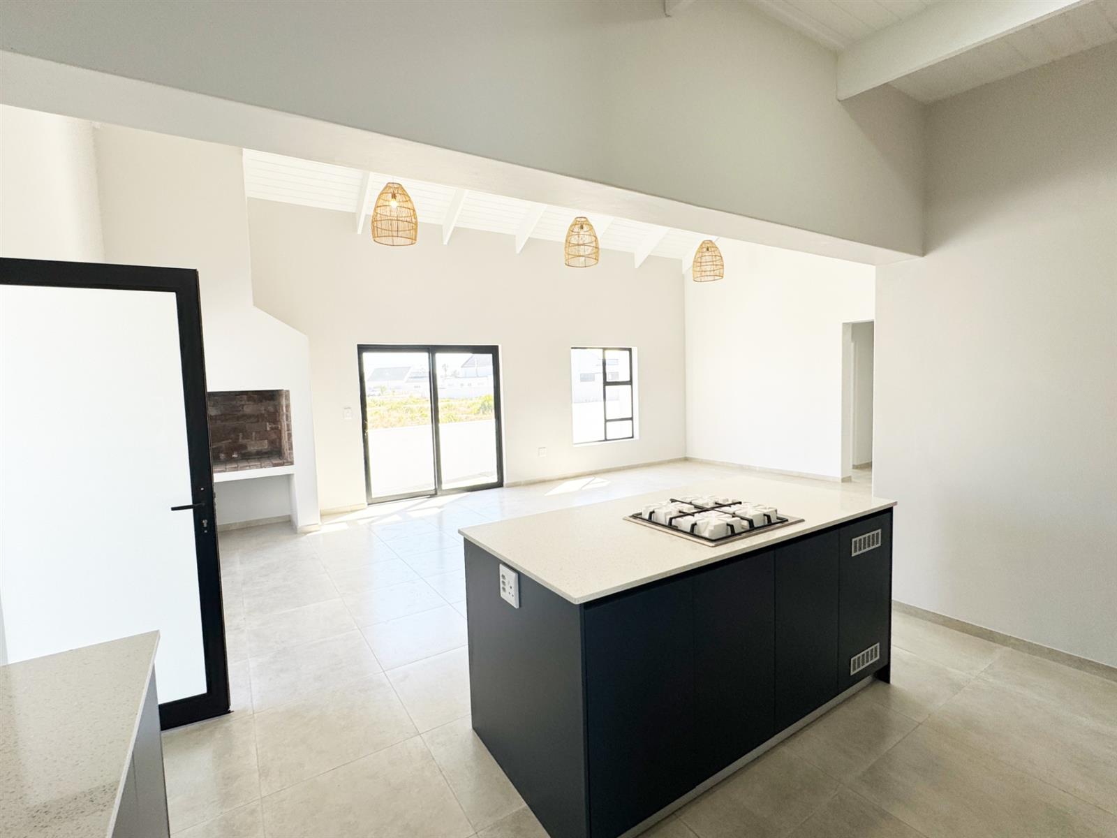 Step inside to discover a light-filled open-plan kitchen, dining, and living area that flows seamlessly into an indoor braai space — perfect for entertaining or enjoying peaceful evenings with family.